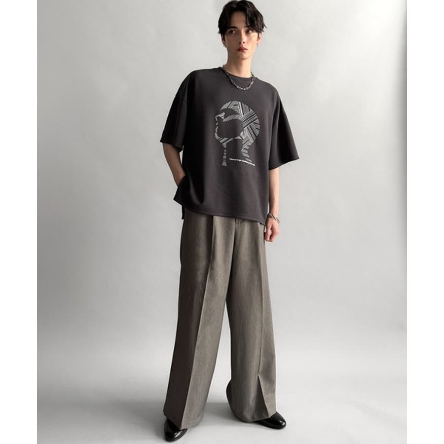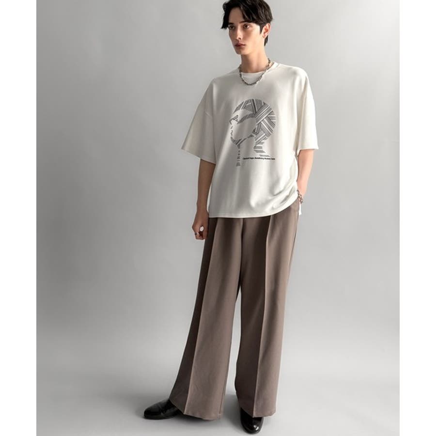 ストレートなラインを持つボトムスと組み合わせることで、Tシャツのオーバーサイズ感が引き立ち、余裕のあるスタイリングに。