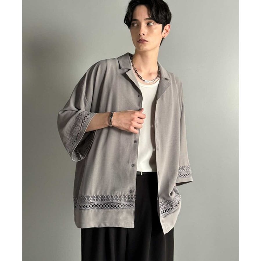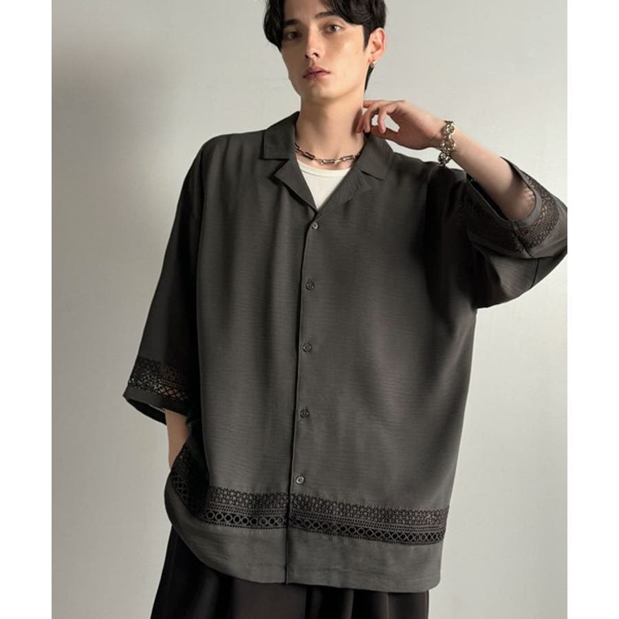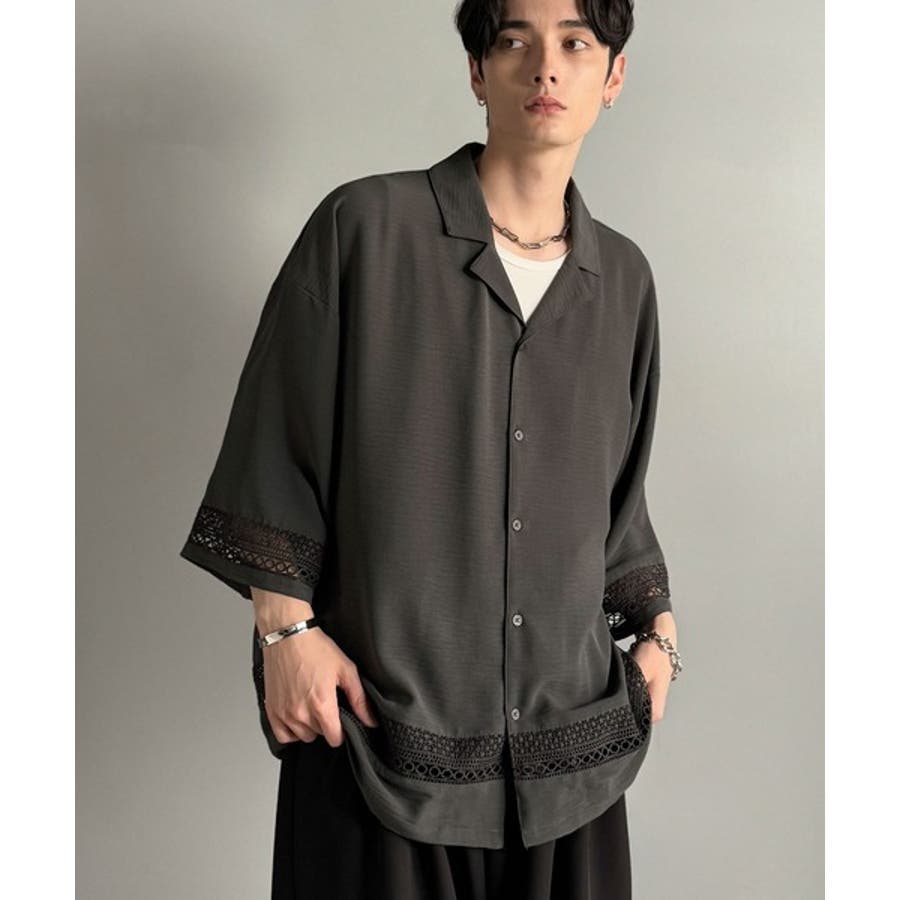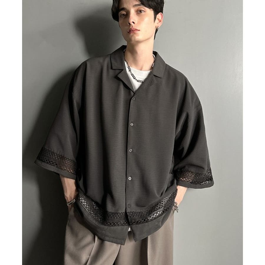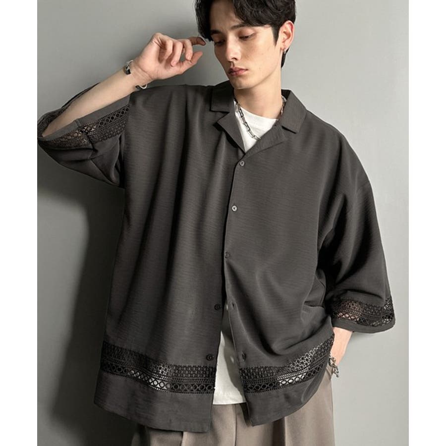 「レースが語る、大人の余裕。」レース切り替えオープンカラーシャツ Lace Pa…