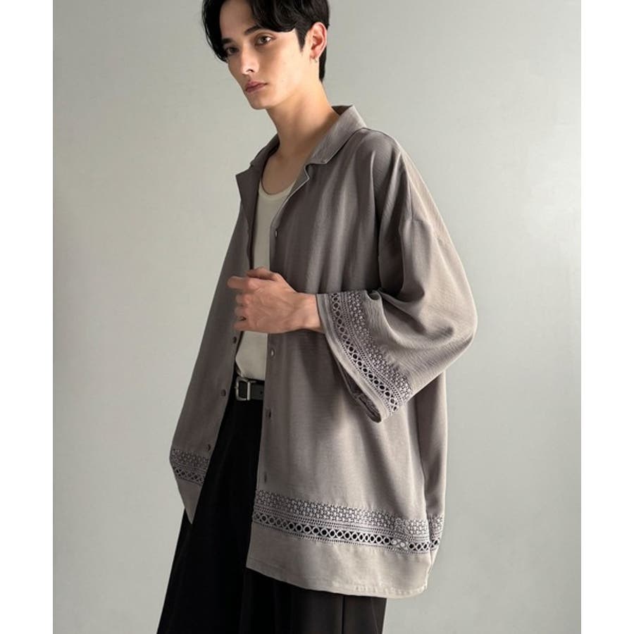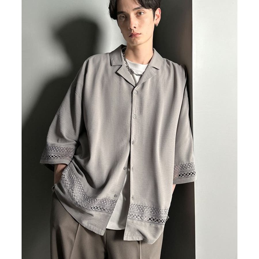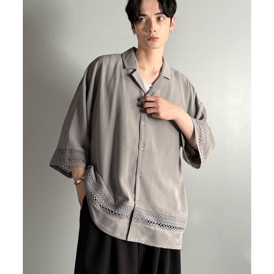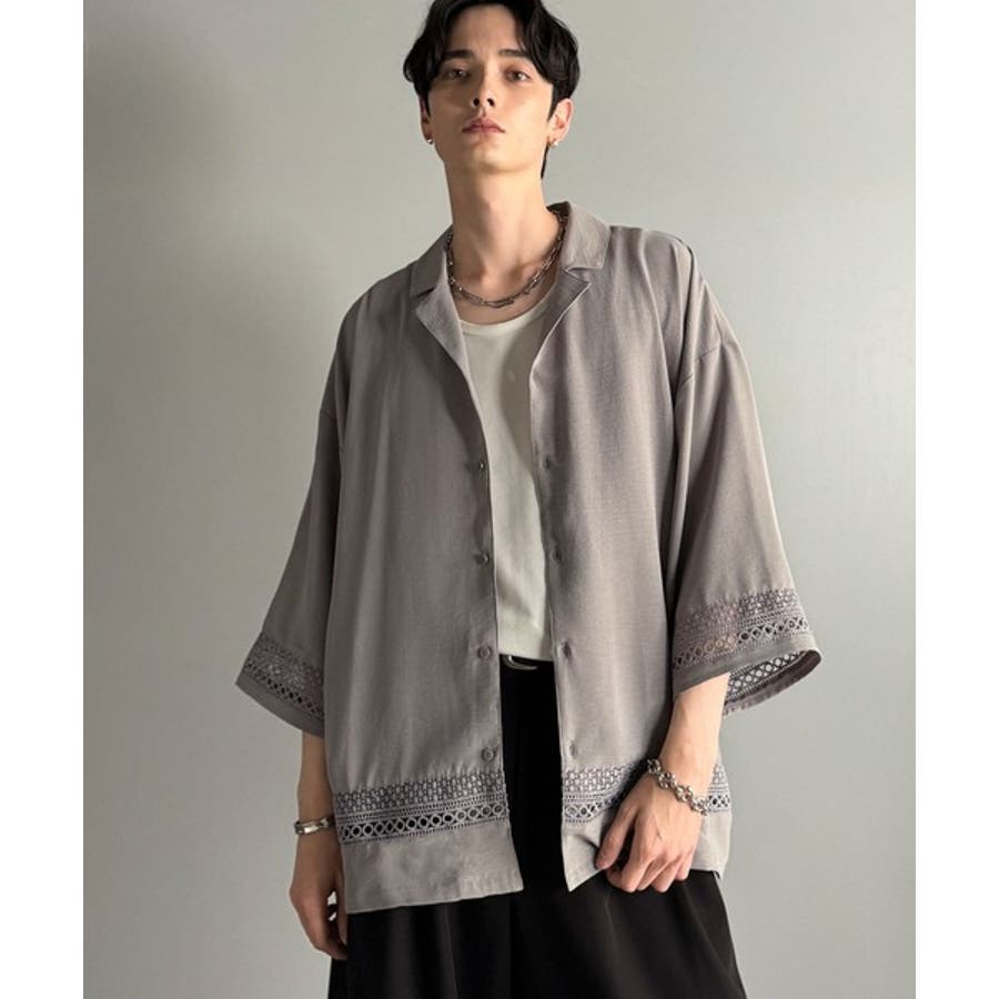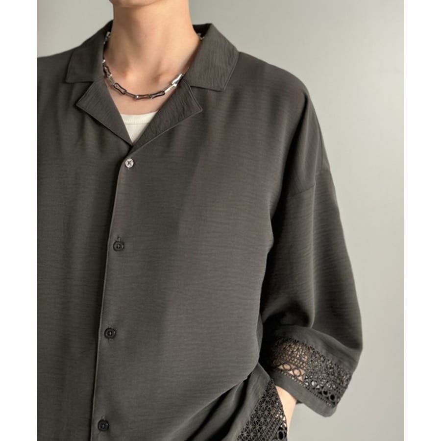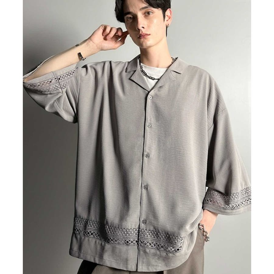 「レースが語る、大人の余裕。」レース切り替えオープンカラーシャツ Lace Pa…