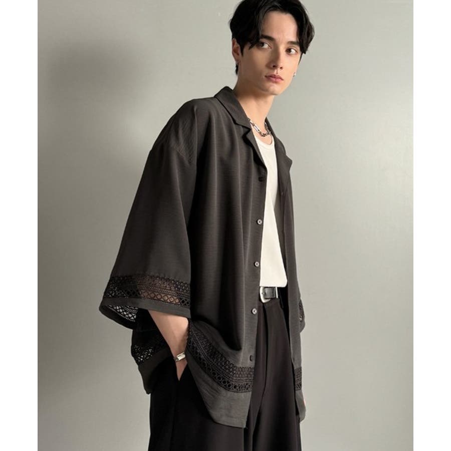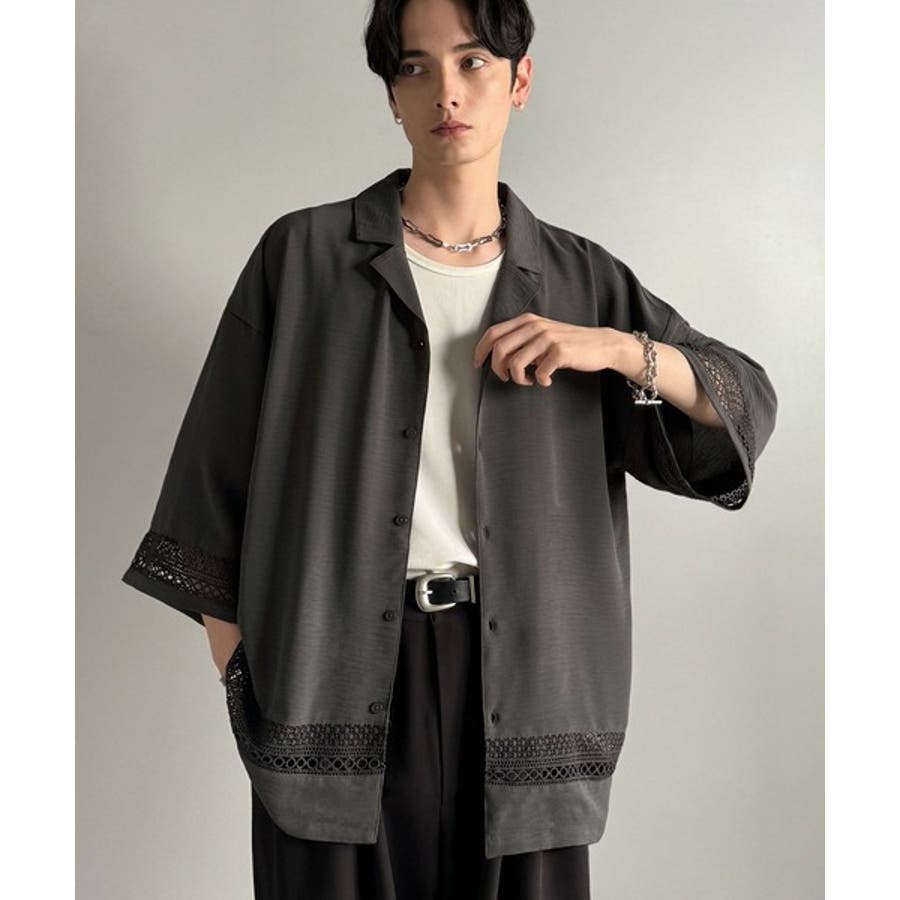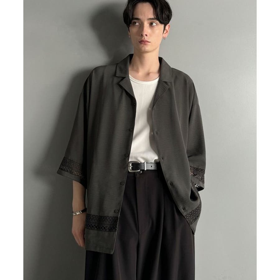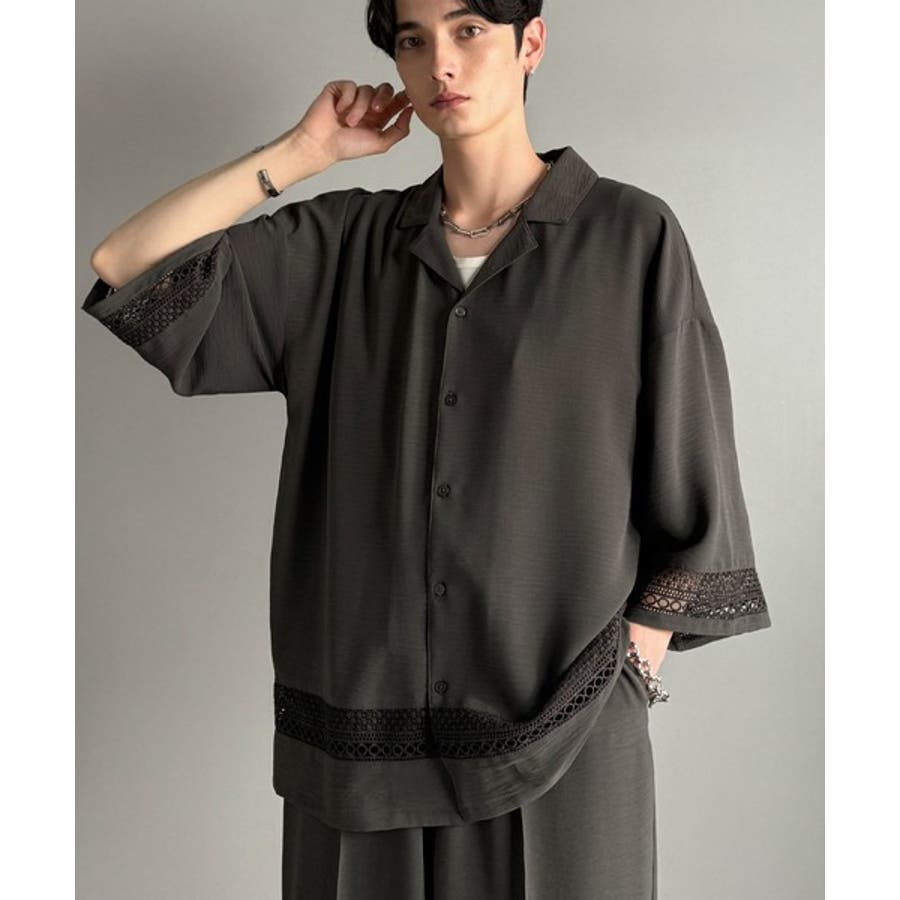 「大人のモード感と快適な着心地。Lace Panel Open Collar Shirt」