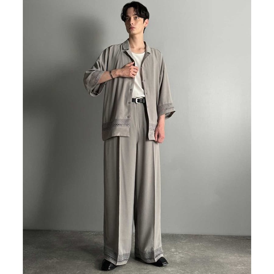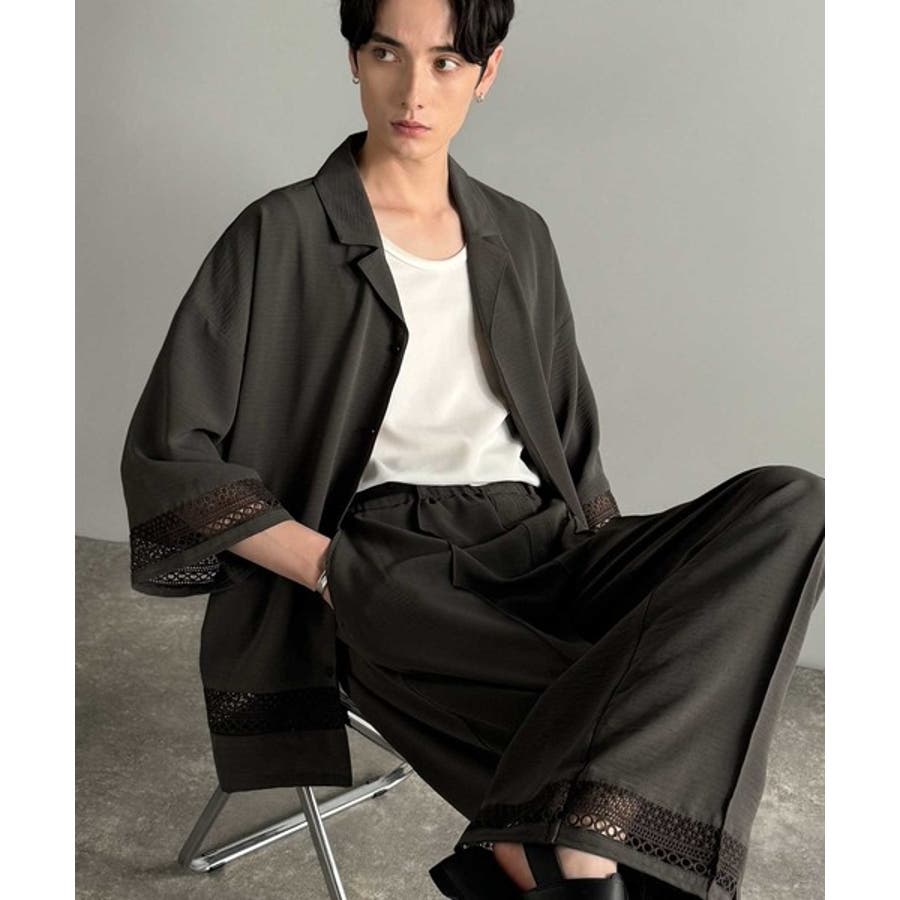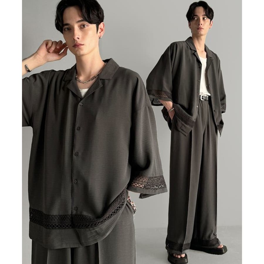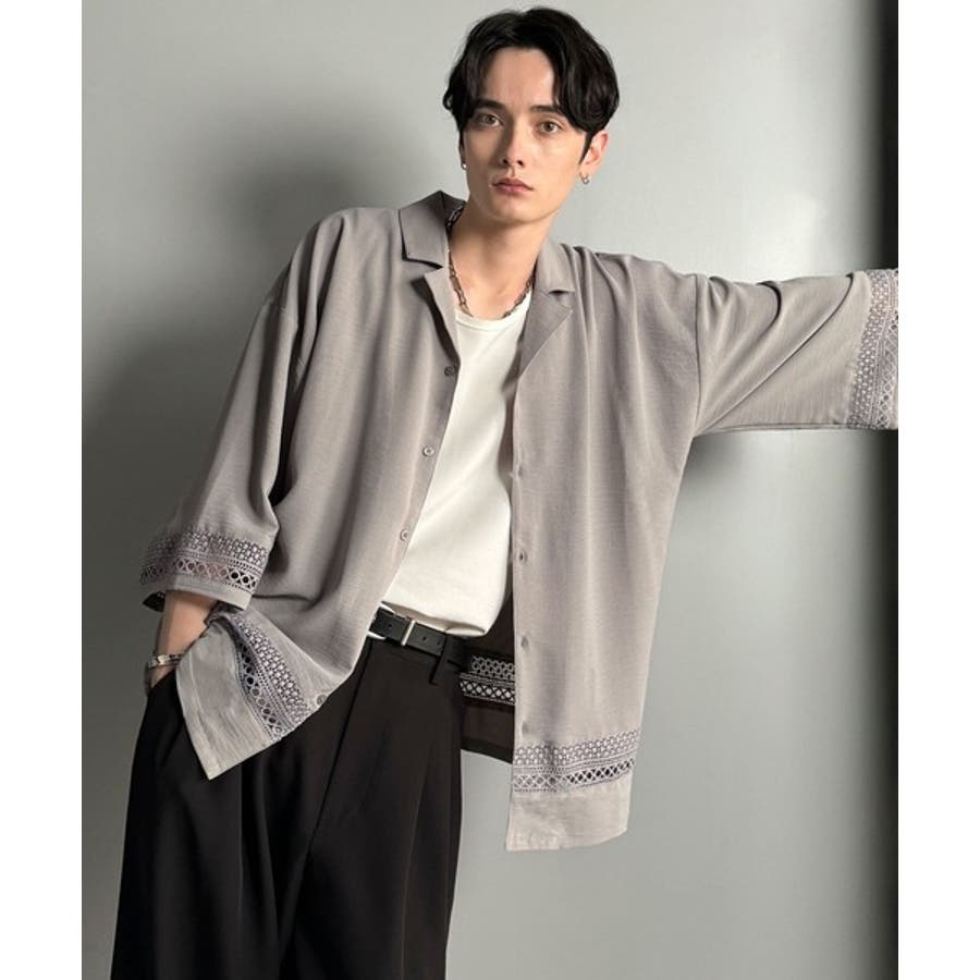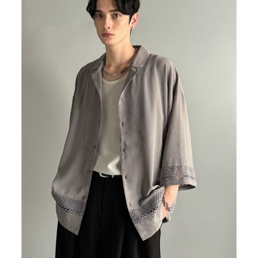 「大人のモード感と快適な着心地。Lace Panel Open Collar Shirt」