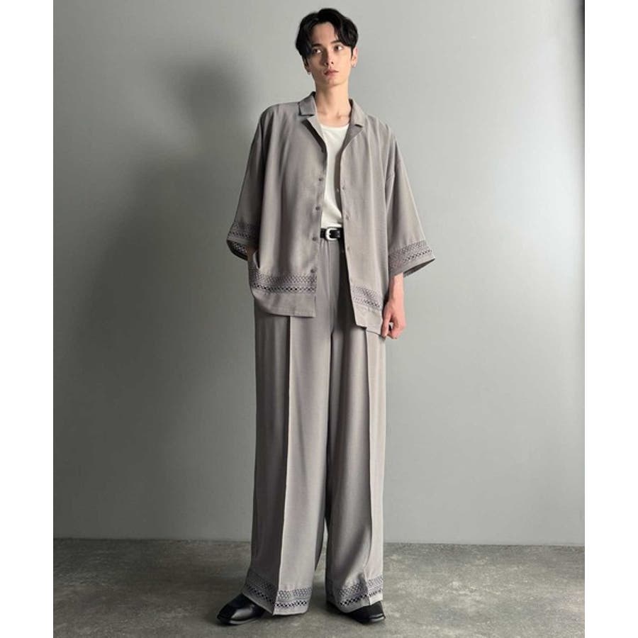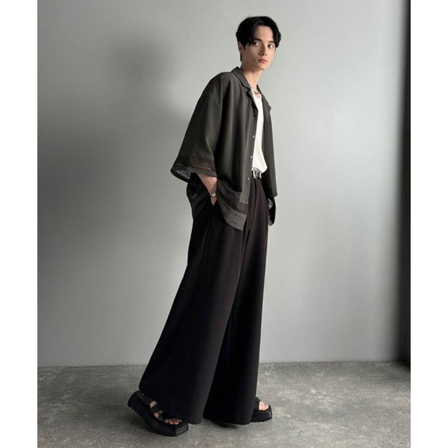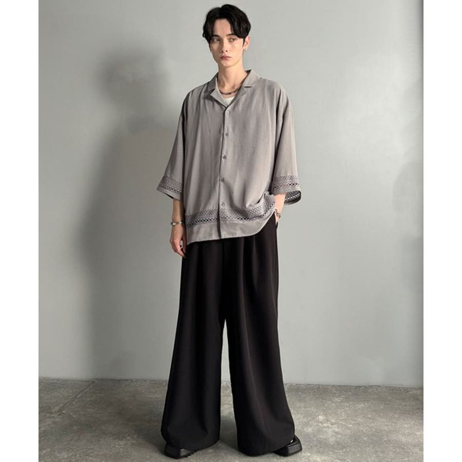 モード感漂うオープンカラーシャツ。