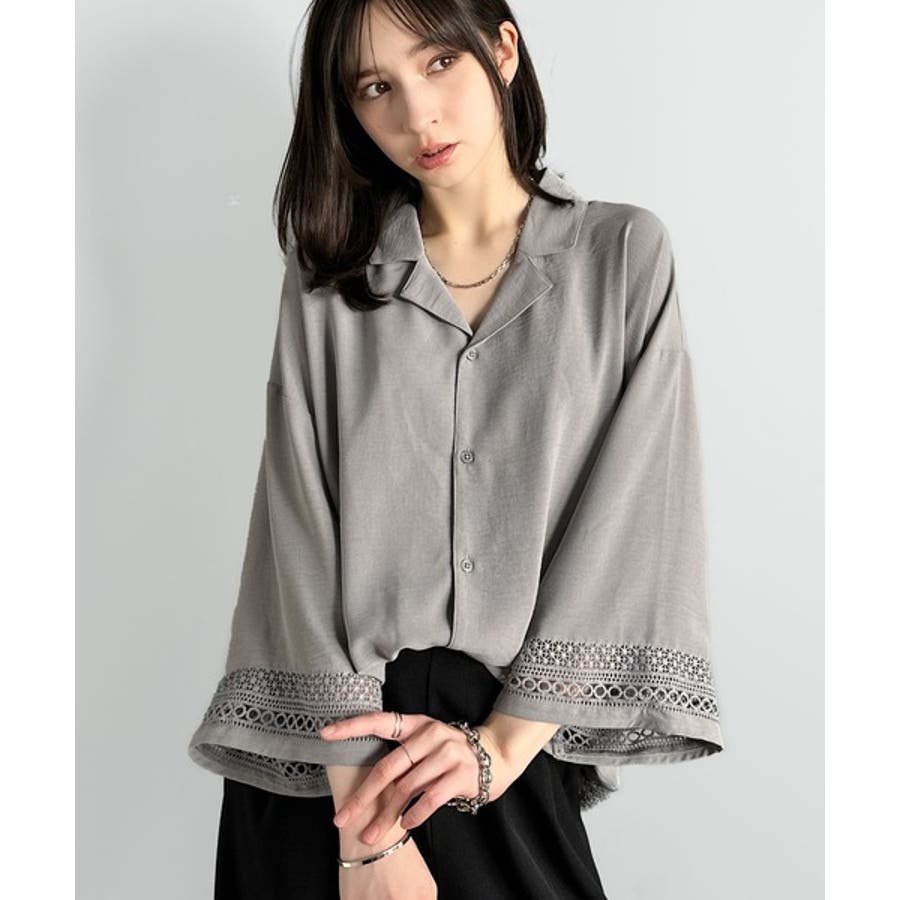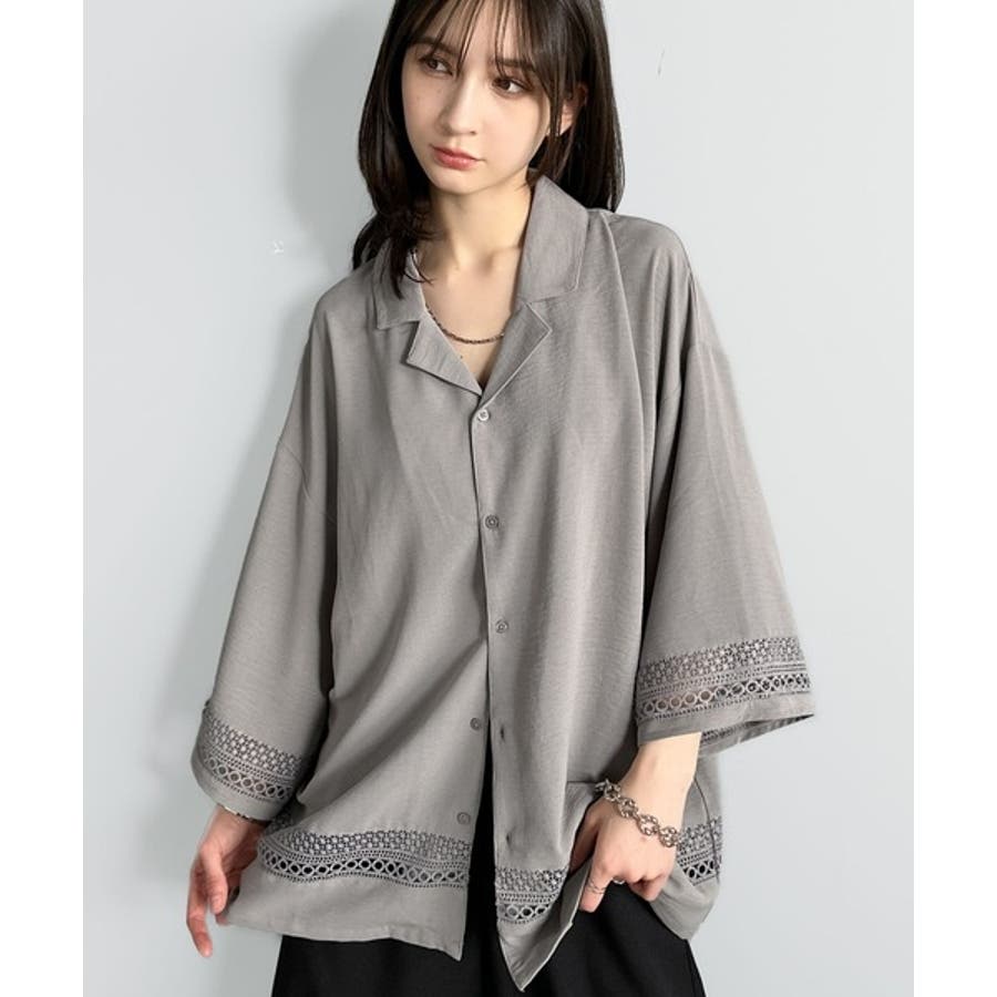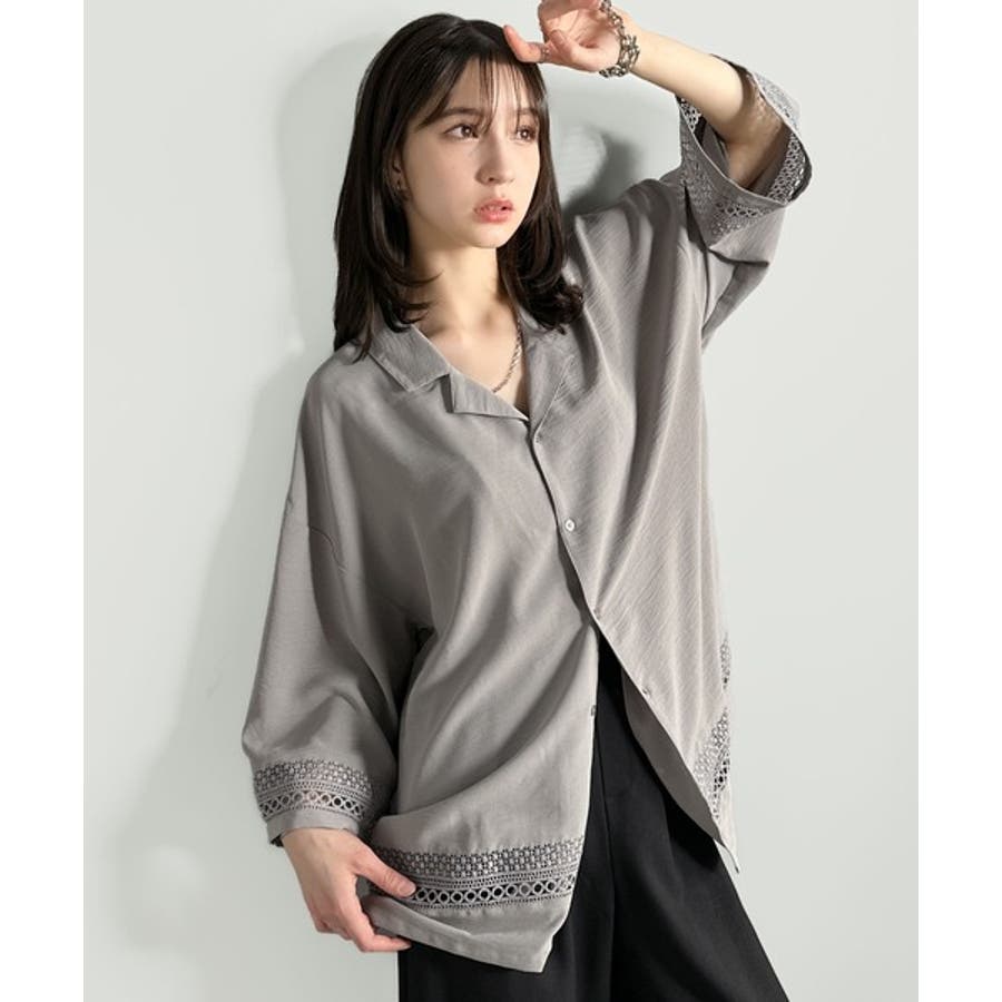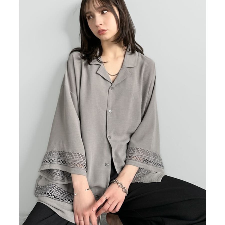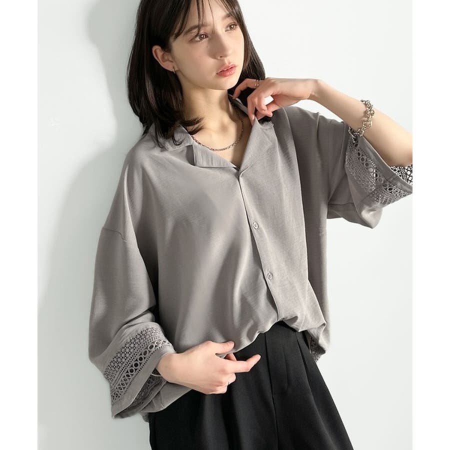 レース切り替えオープンカラーシャツ」