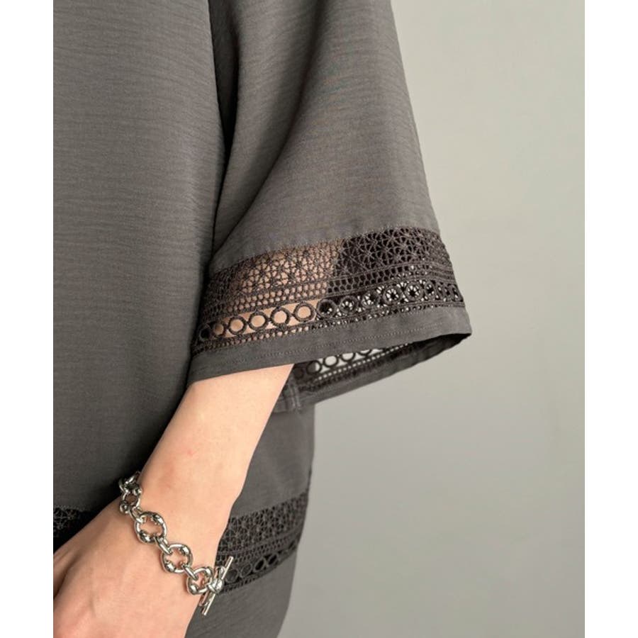 袖口と裾のレース配色のモード感で、この1枚でサマになるアイテムです。