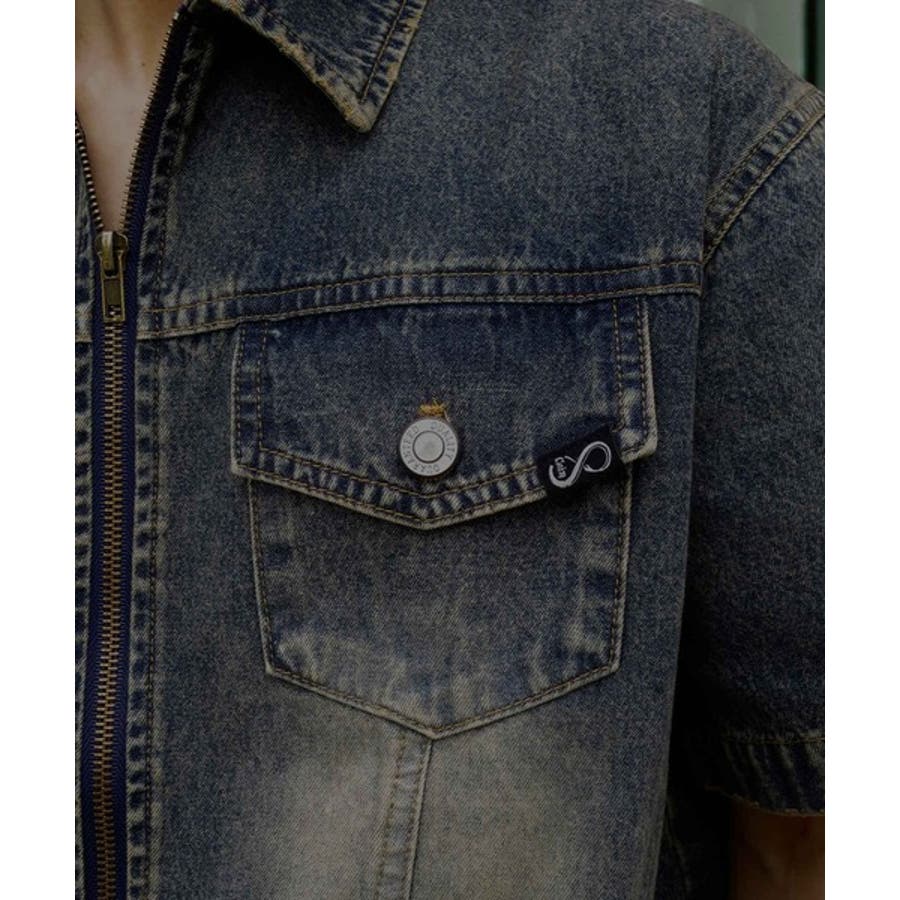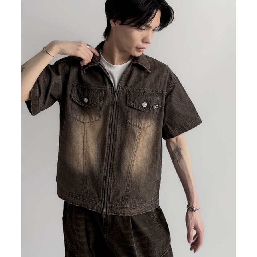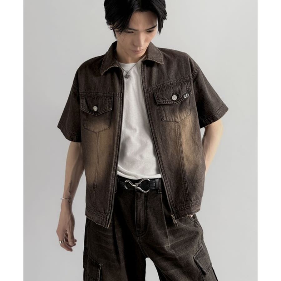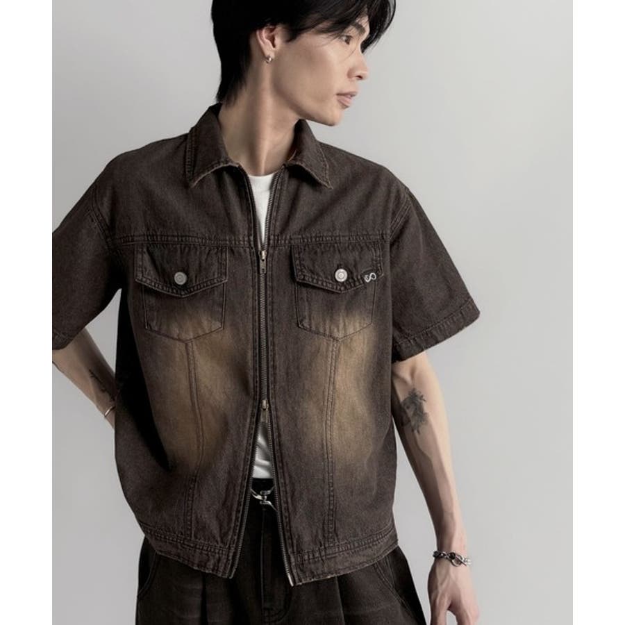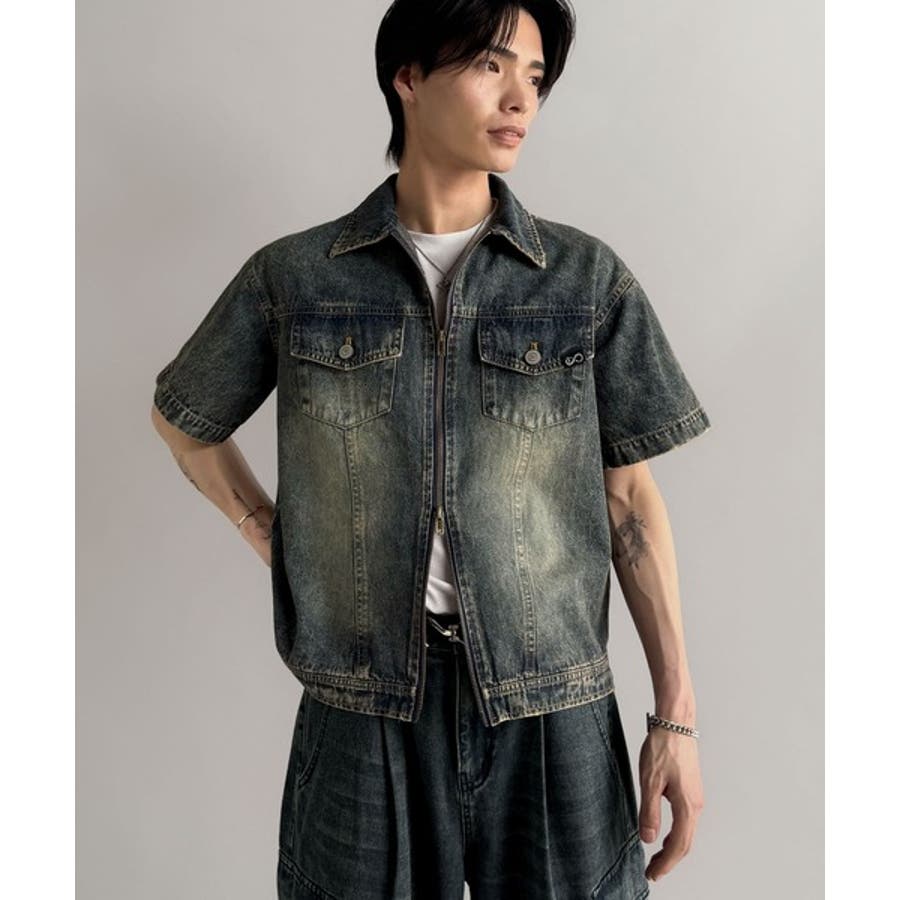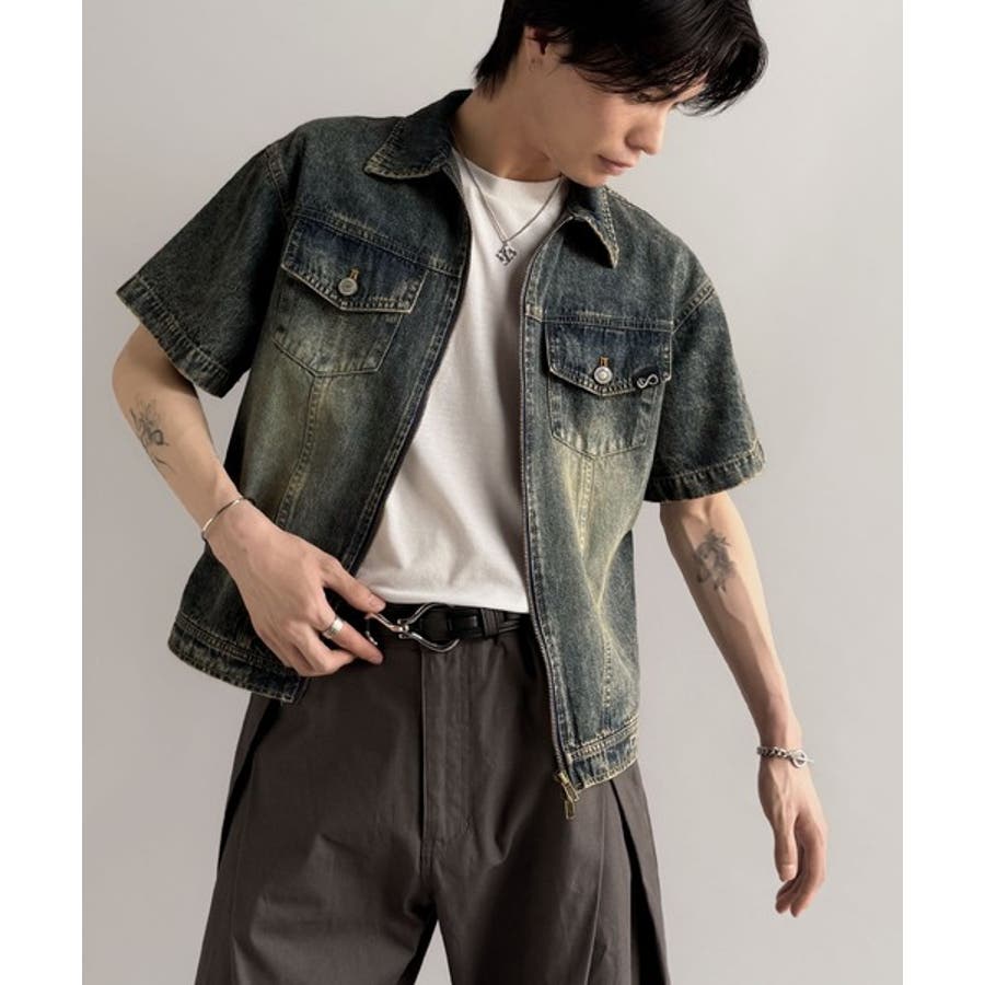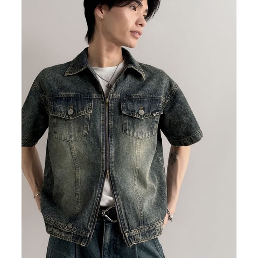 ヴィンテージウォッシュダブルジップショートデニムシャツ」