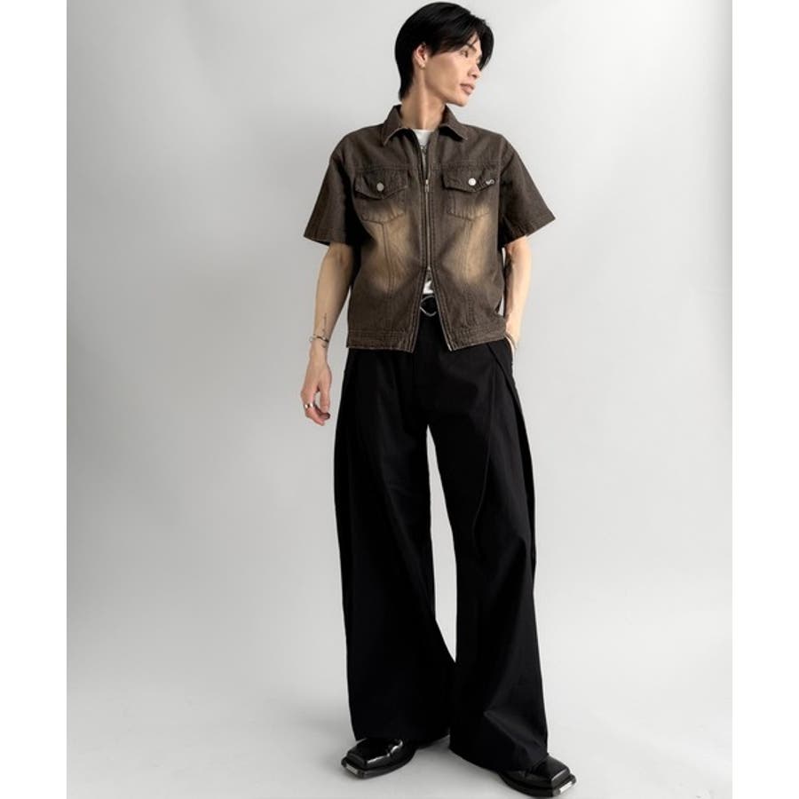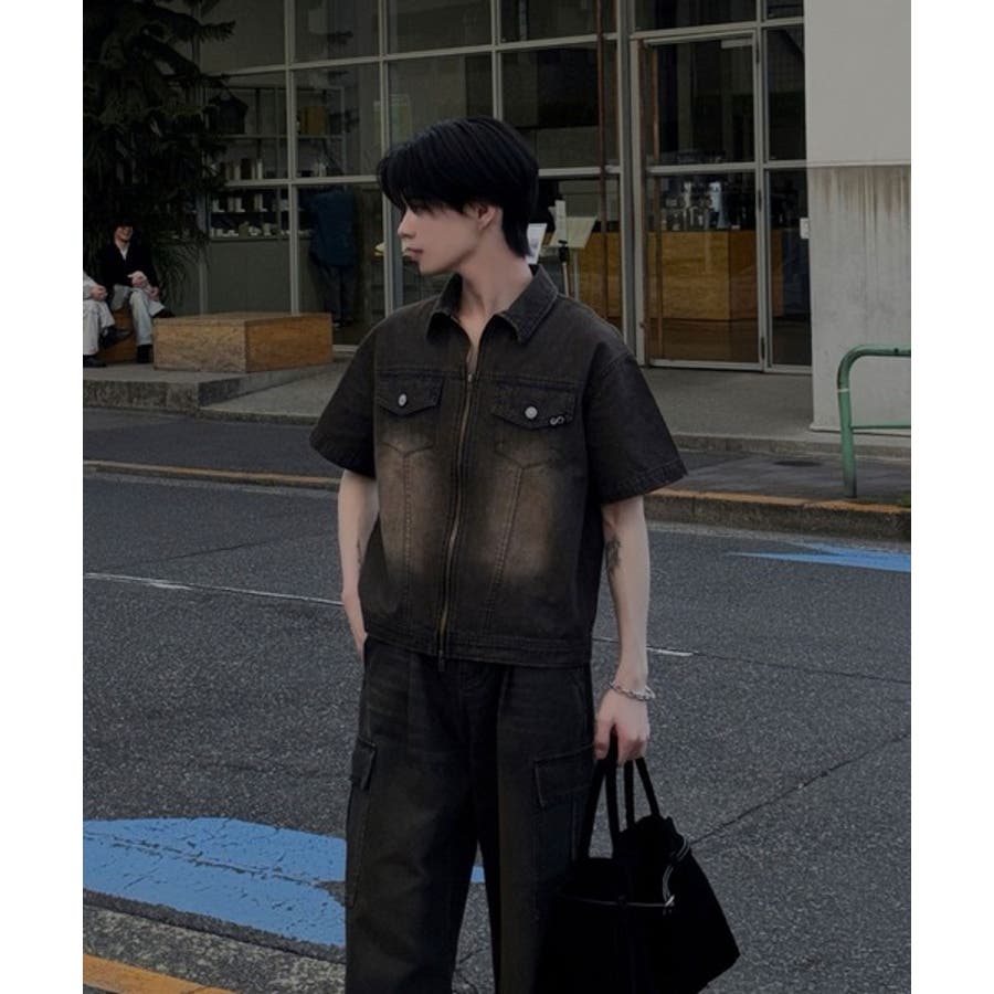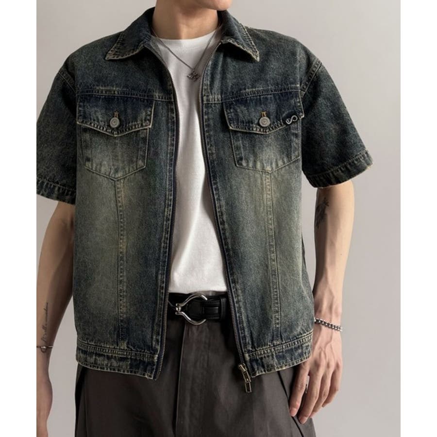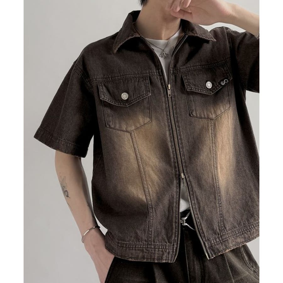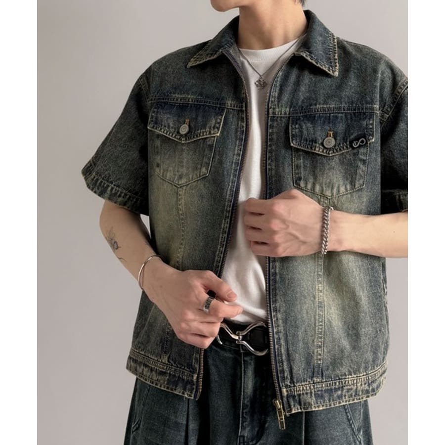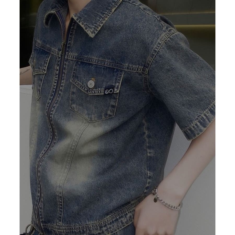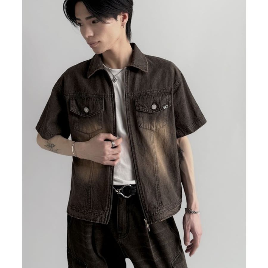 ヴィンテージウォッシュダブルジップショートデニムシャツ」