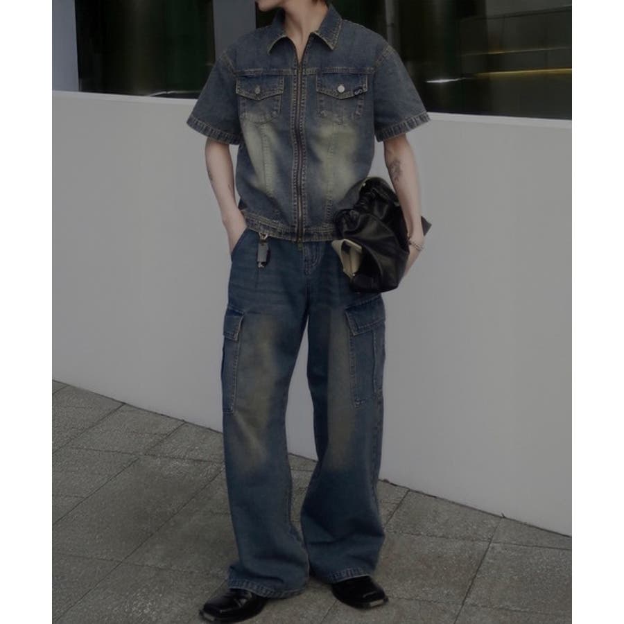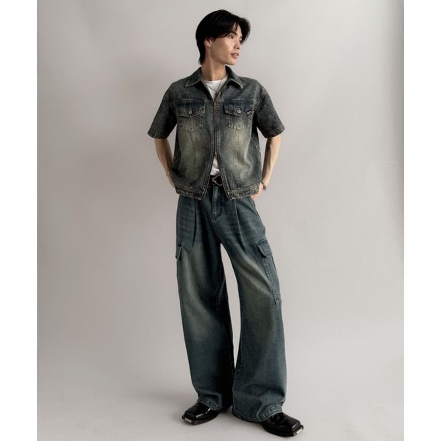 ・ヴィンテージウォッシュカーゴポケットデニム(品番:co1010017)とセットアップ風
