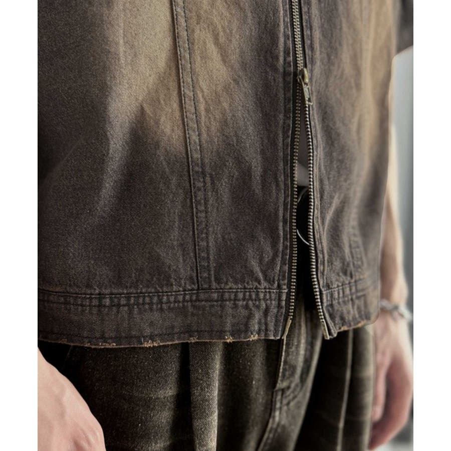 「Vintage-Wash Double Zip Short Denim Shirt/