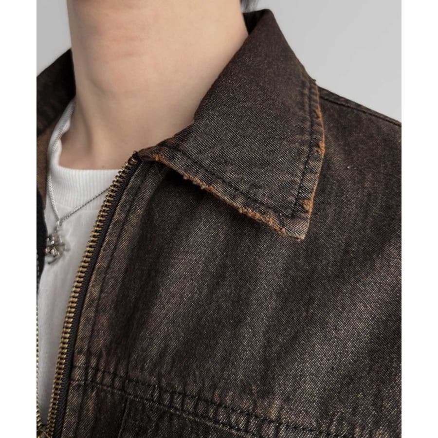 ヴィンテージ加工が施されたダブルジップショートデニムシャツ。