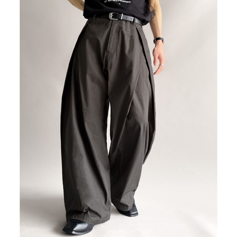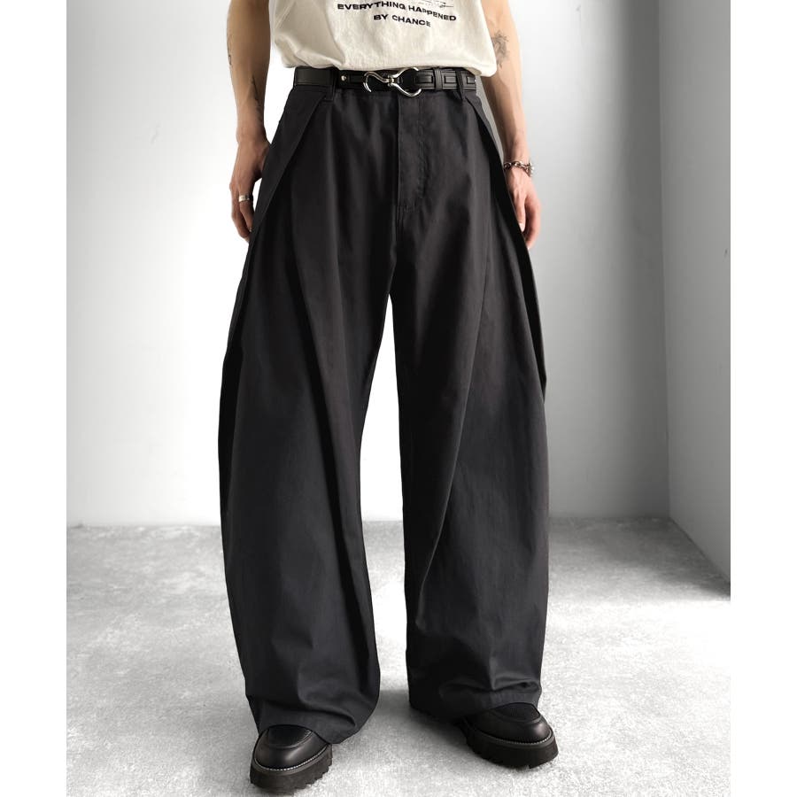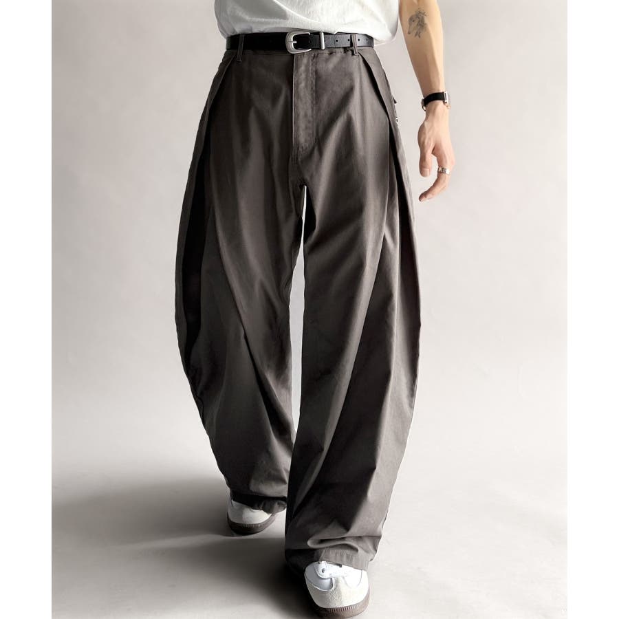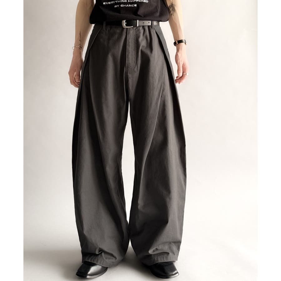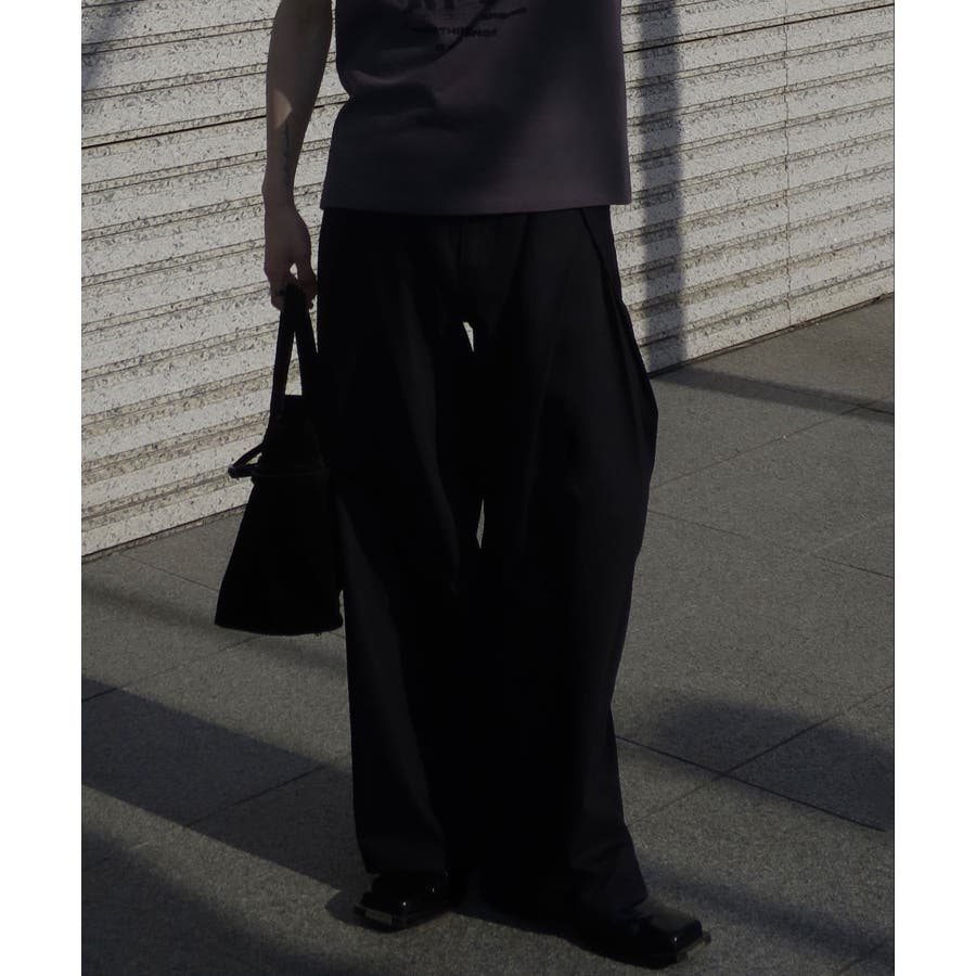 ダブルで施された深めのタックによる美しい立体感のあるワイドスラックスが、