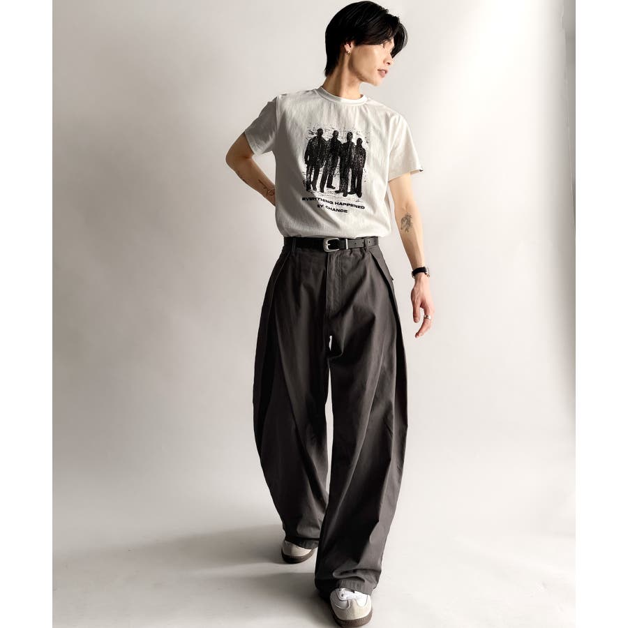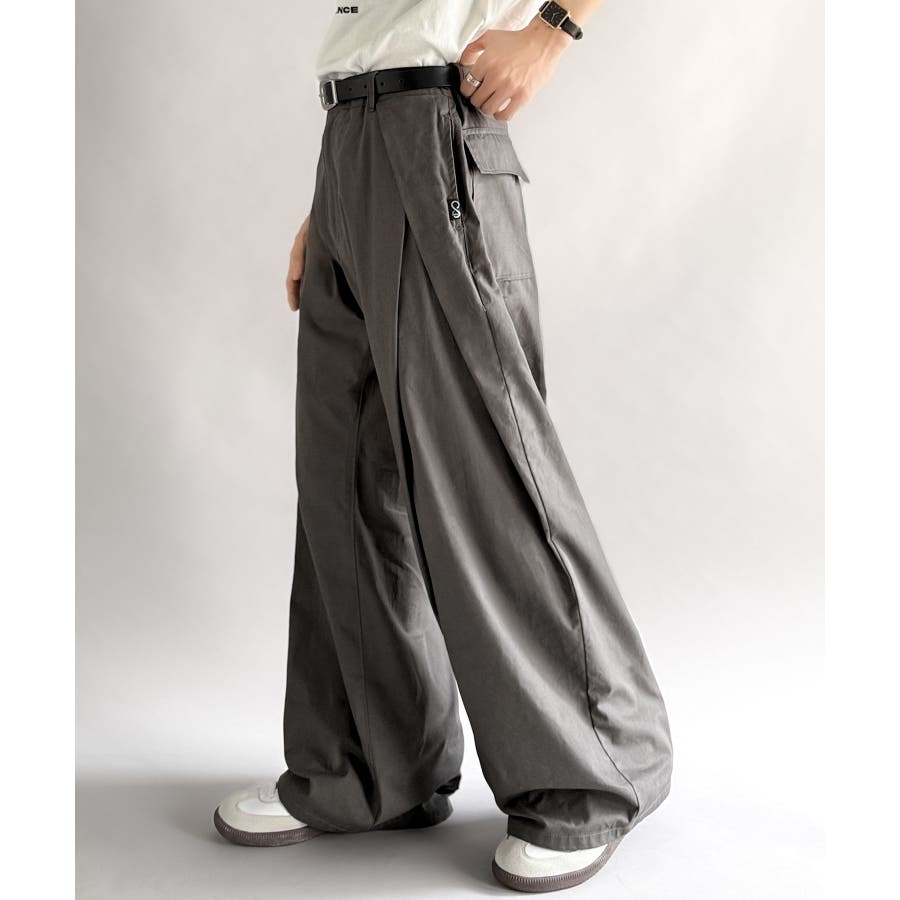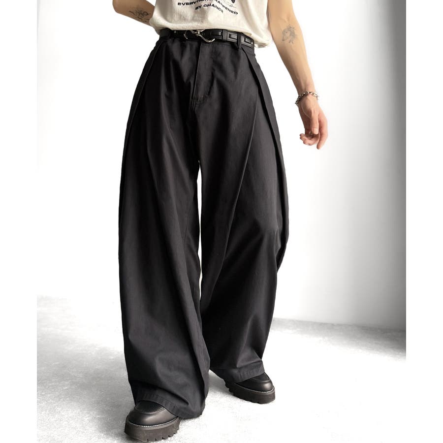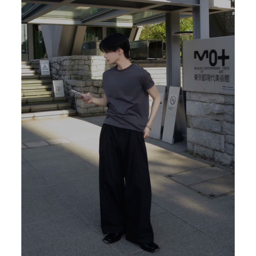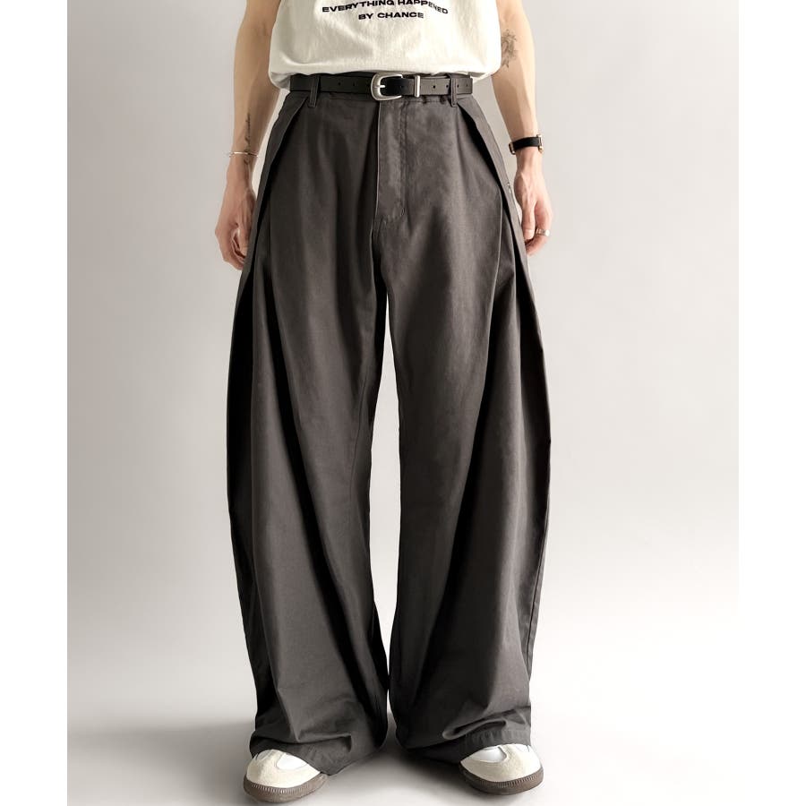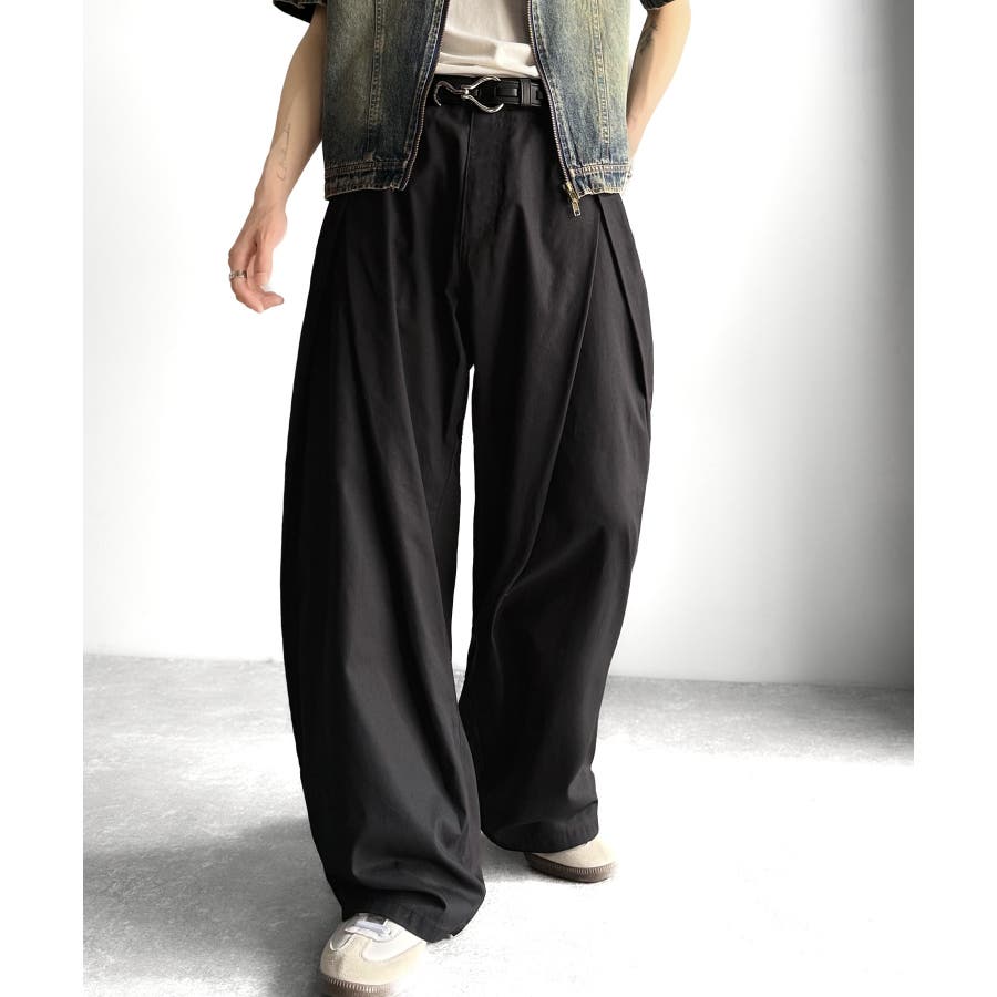ダブルで施された深めのタックによる美しい立体感のあるワイドスラックスが、