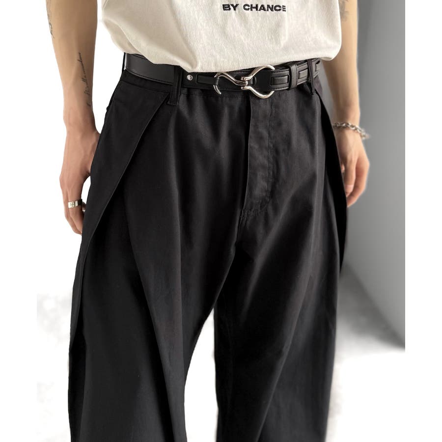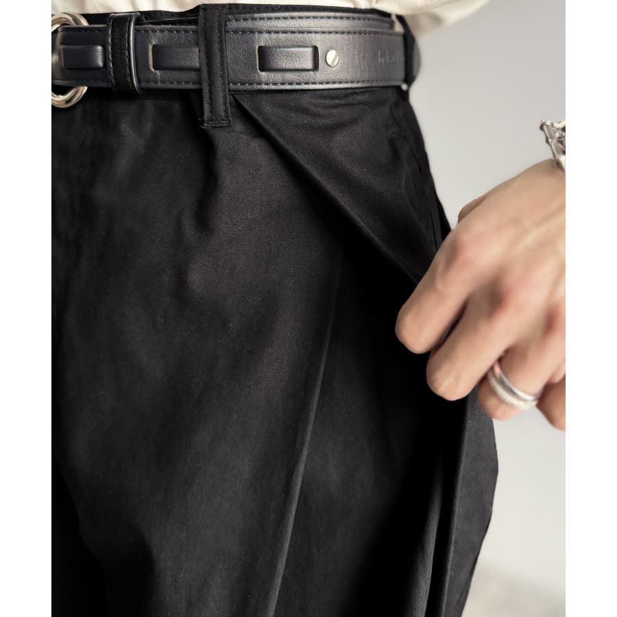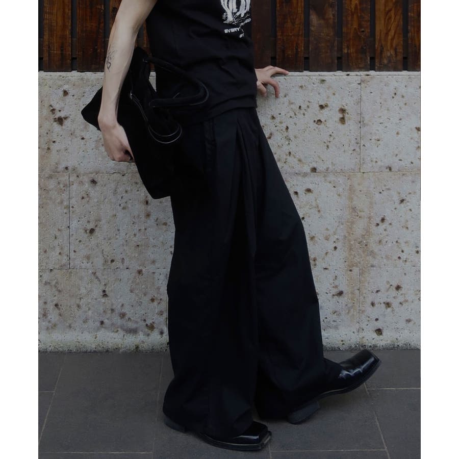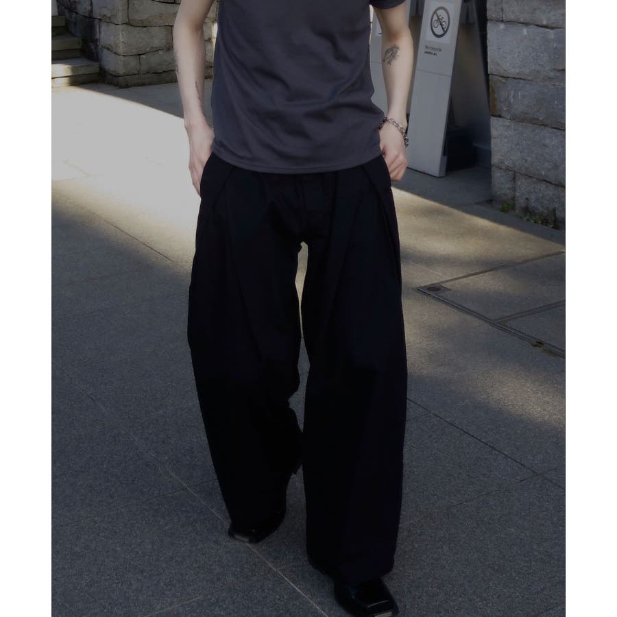 ダブルタックデザインバックポケットワイドスラックス」