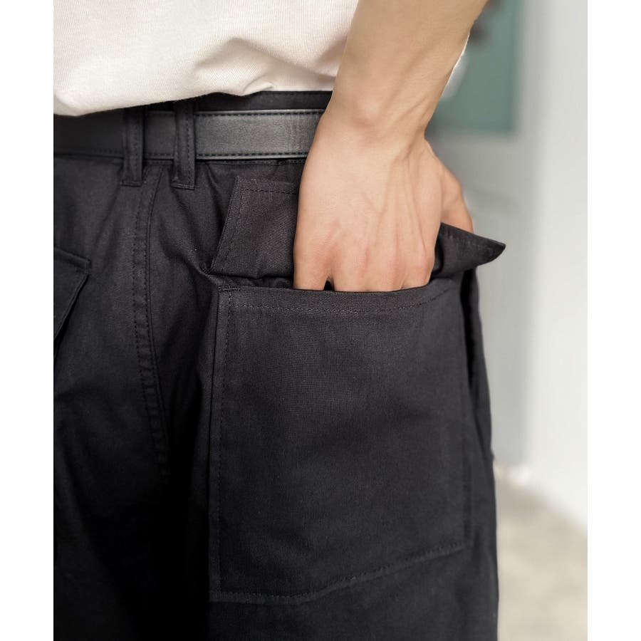 「トレンド最前線。」綿100%ダブルタックデザインバックポケットワイドスラックス…