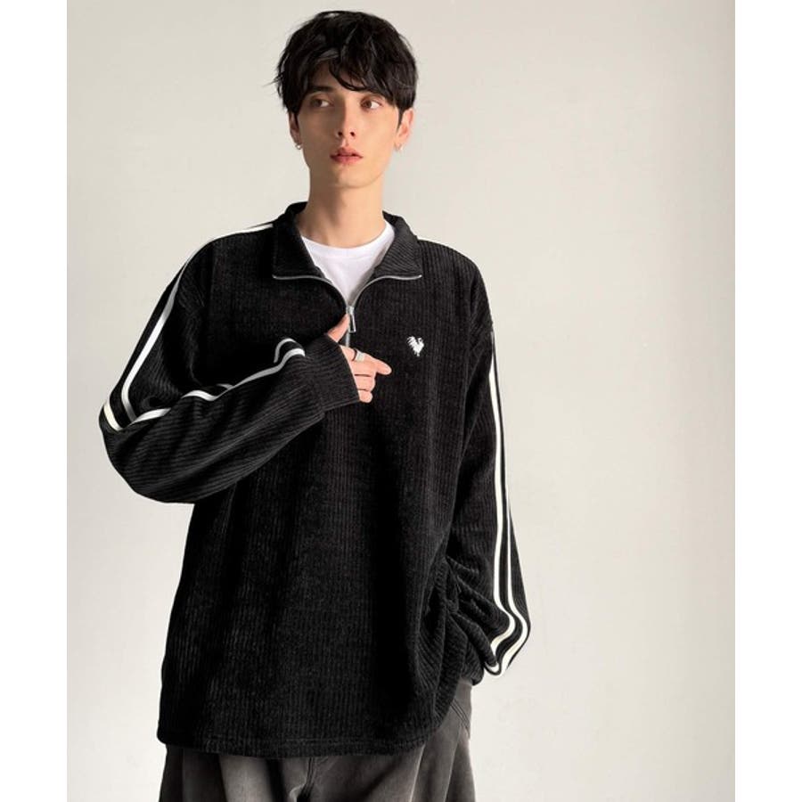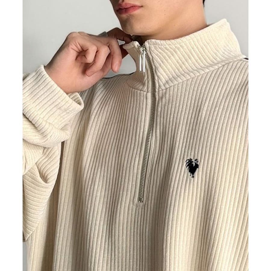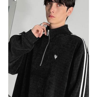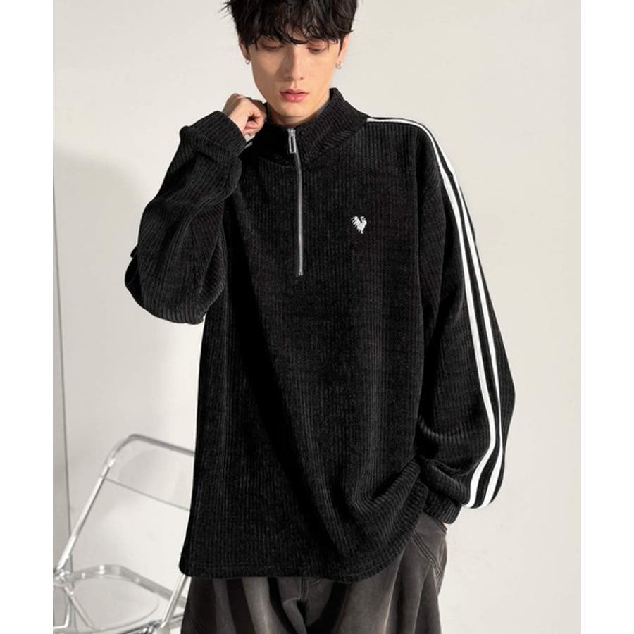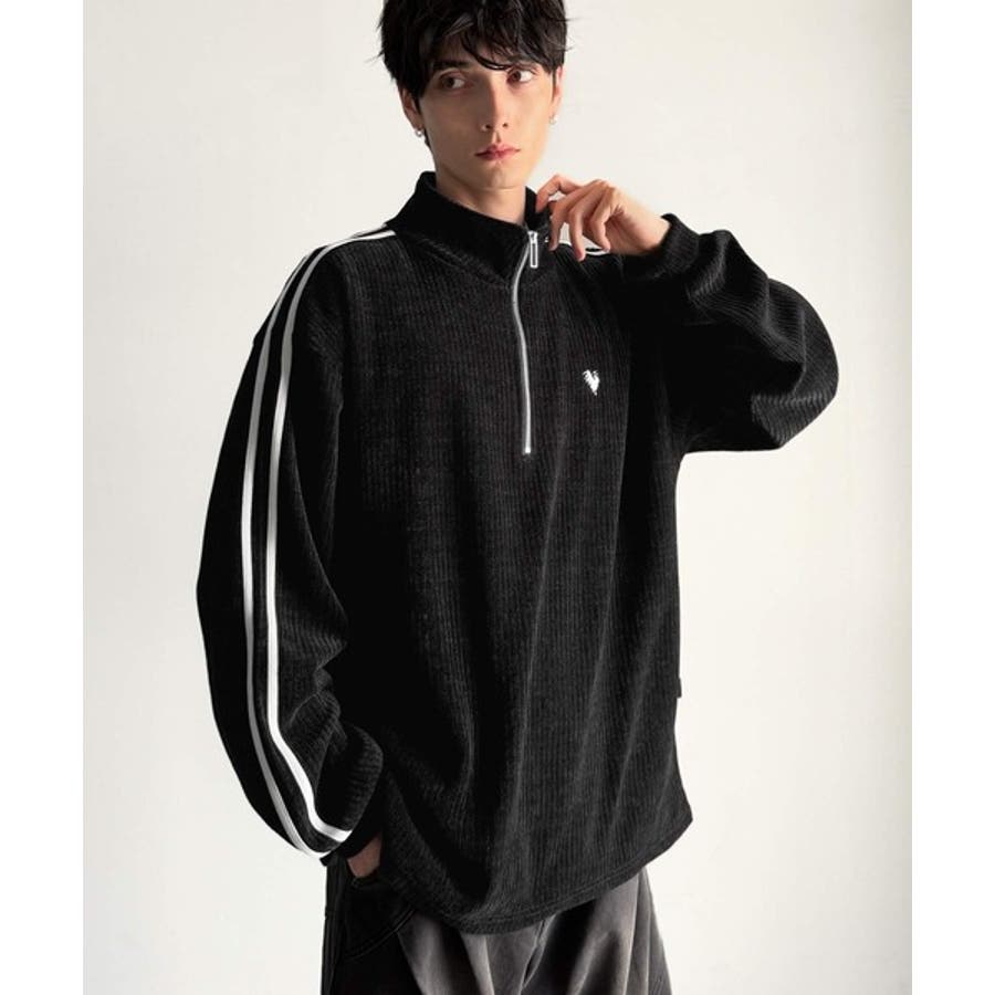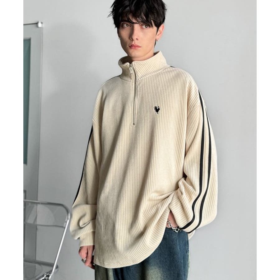コーデュロイ素材Wラインハーフジップトレーナー」
