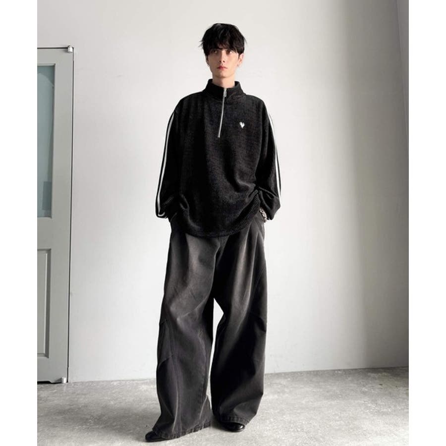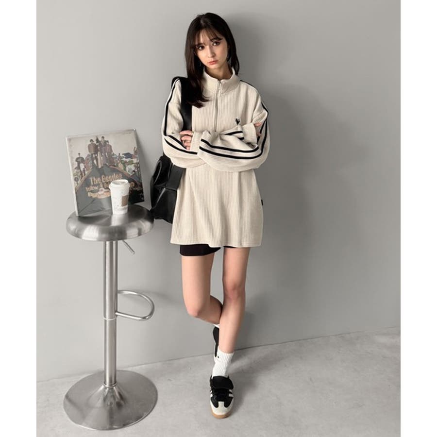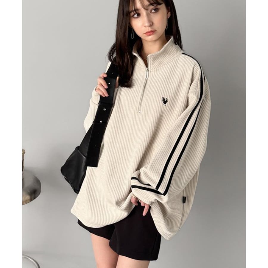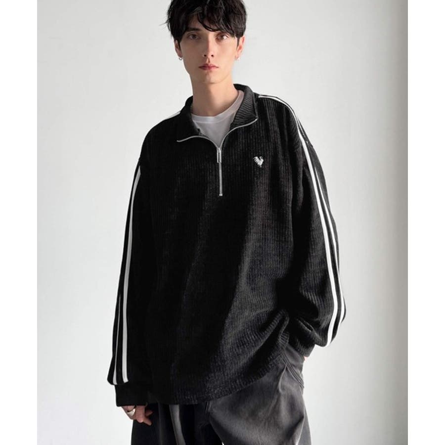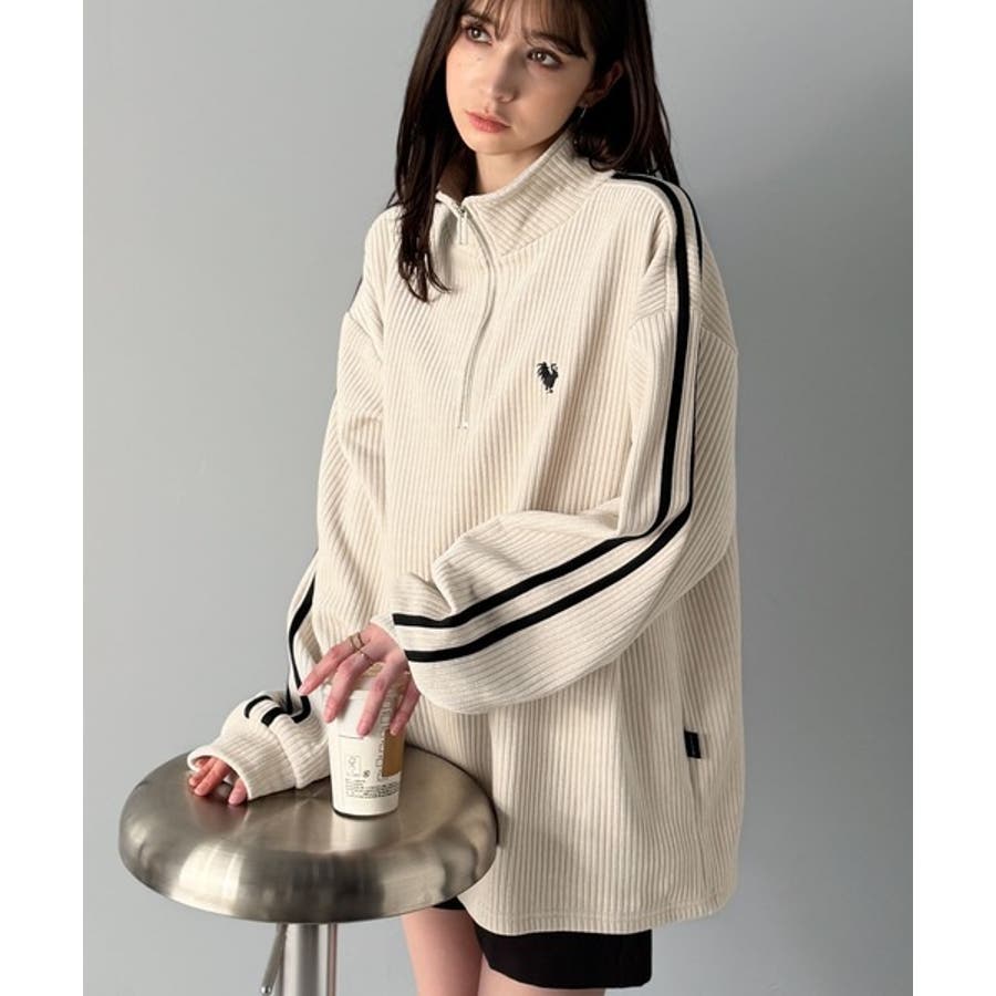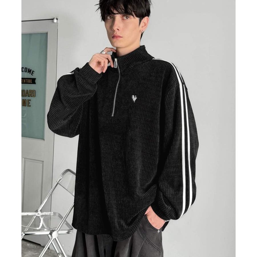 コーデュロイ素材Wラインハーフジップトレーナー」