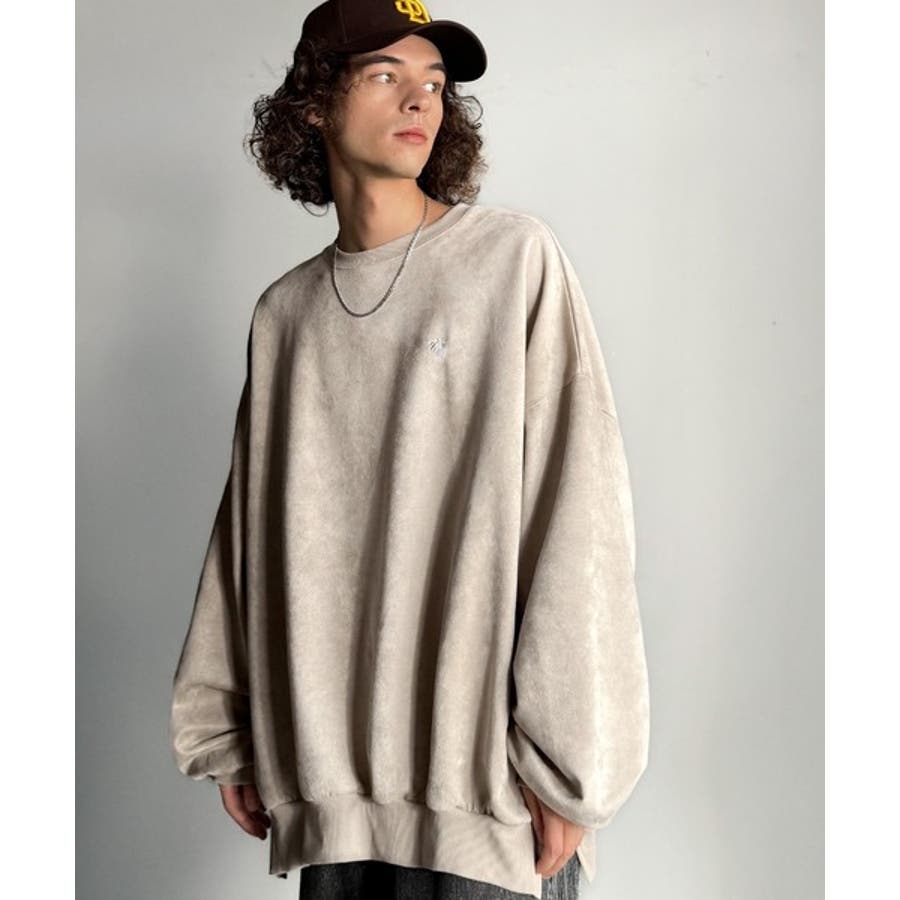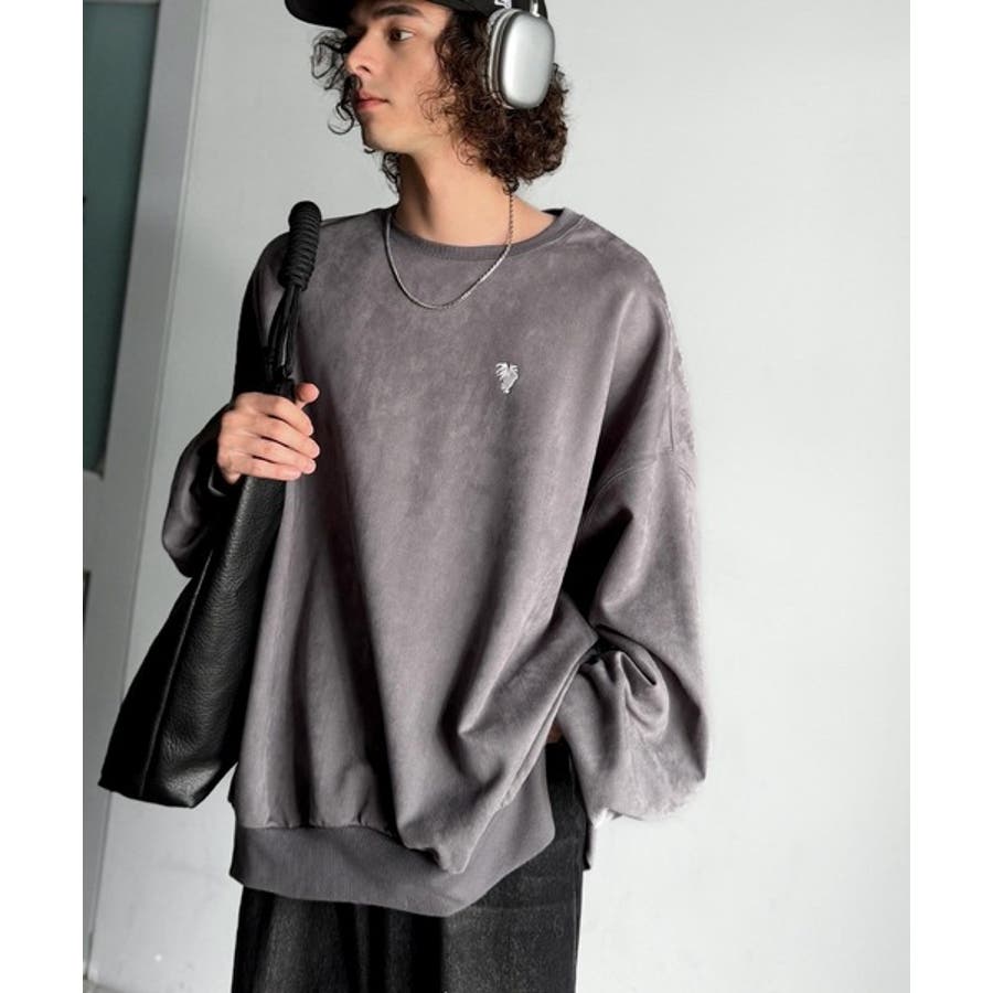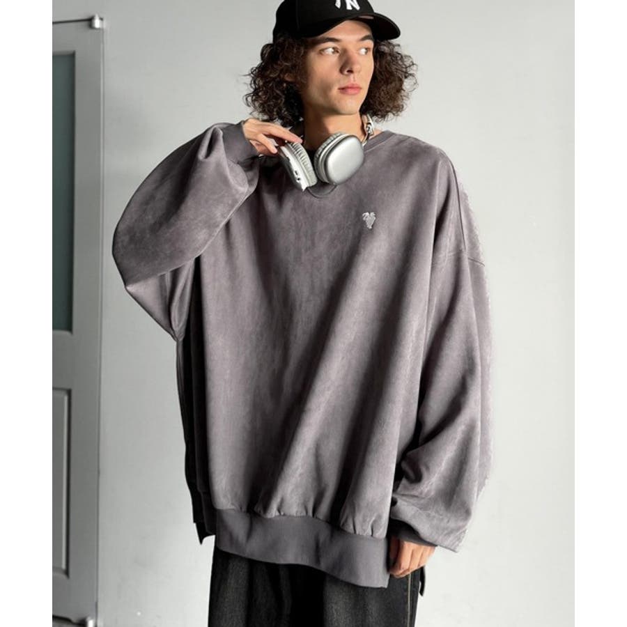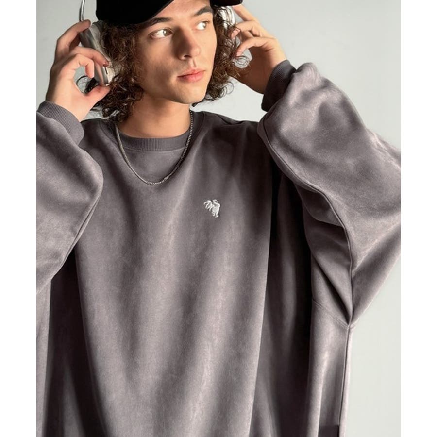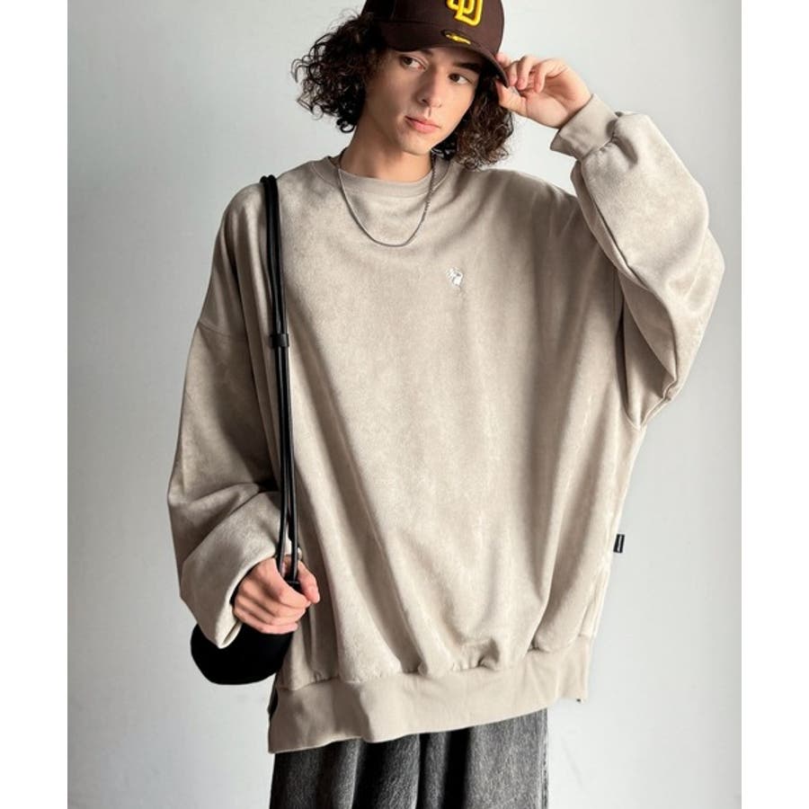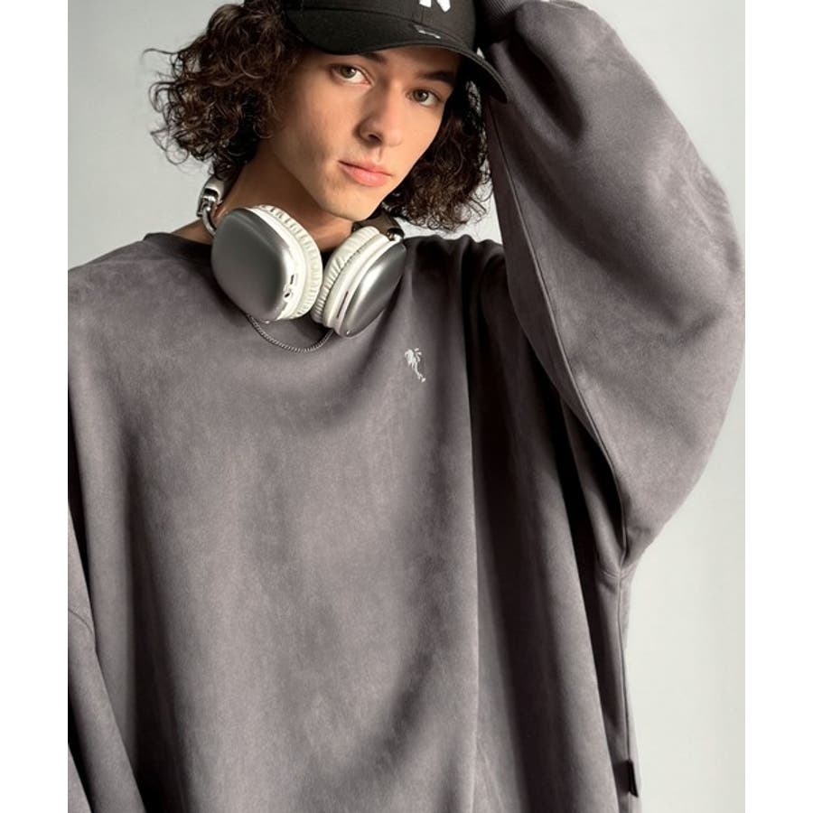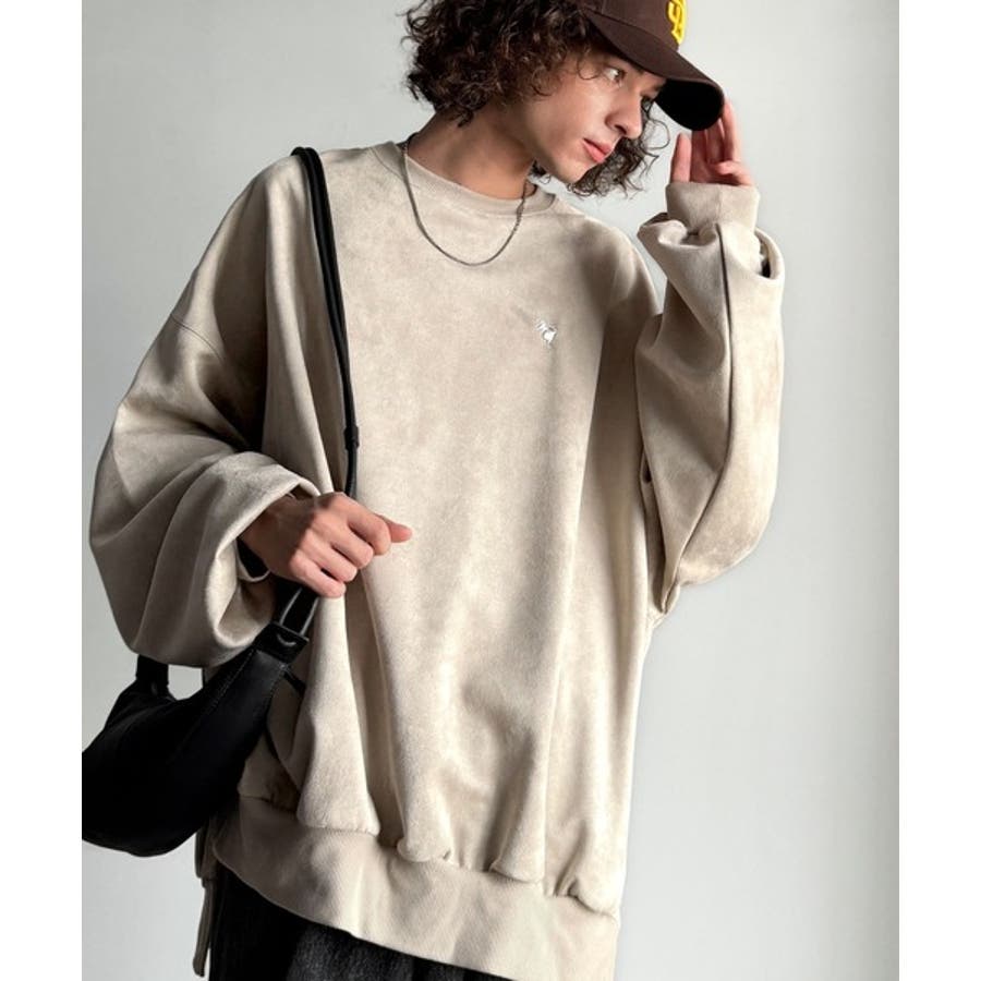 「スウェード素材ビックシルエットトレーナー(長袖)/Suede material big silhouette sweatshirt」