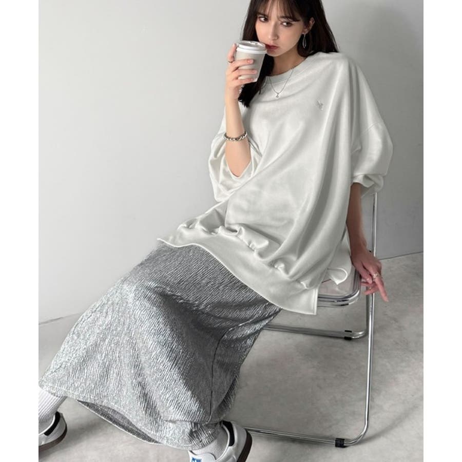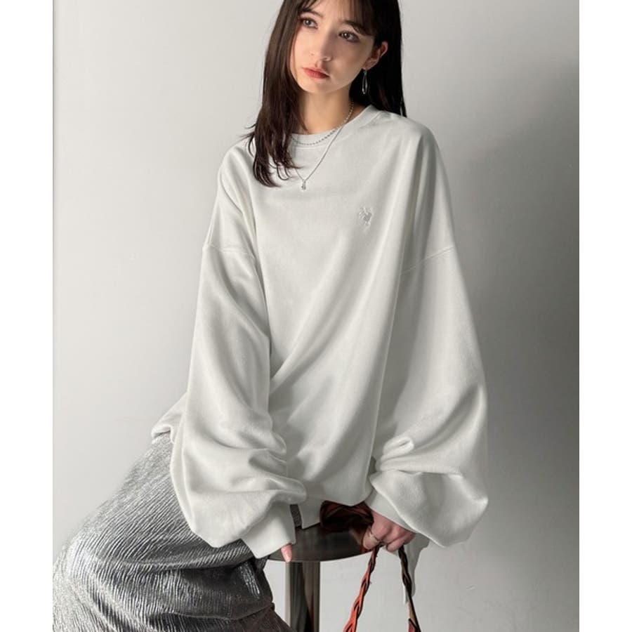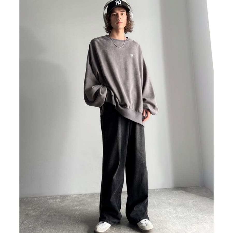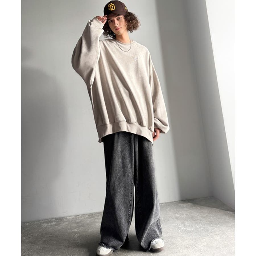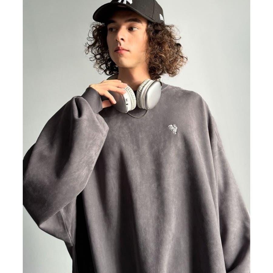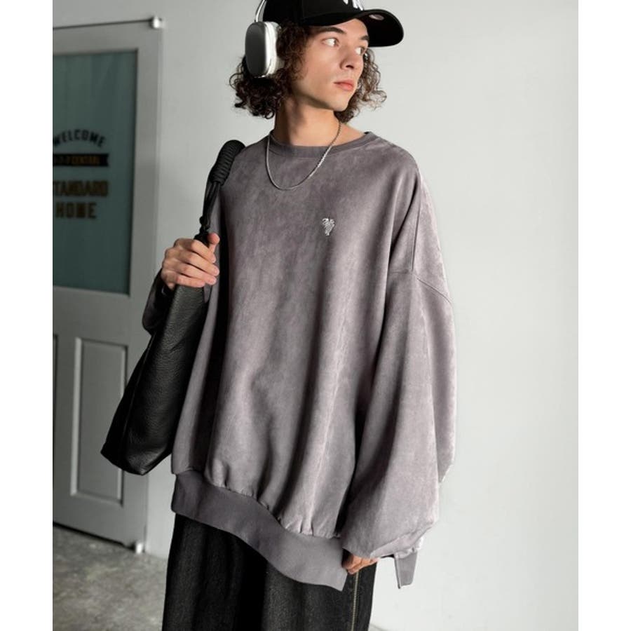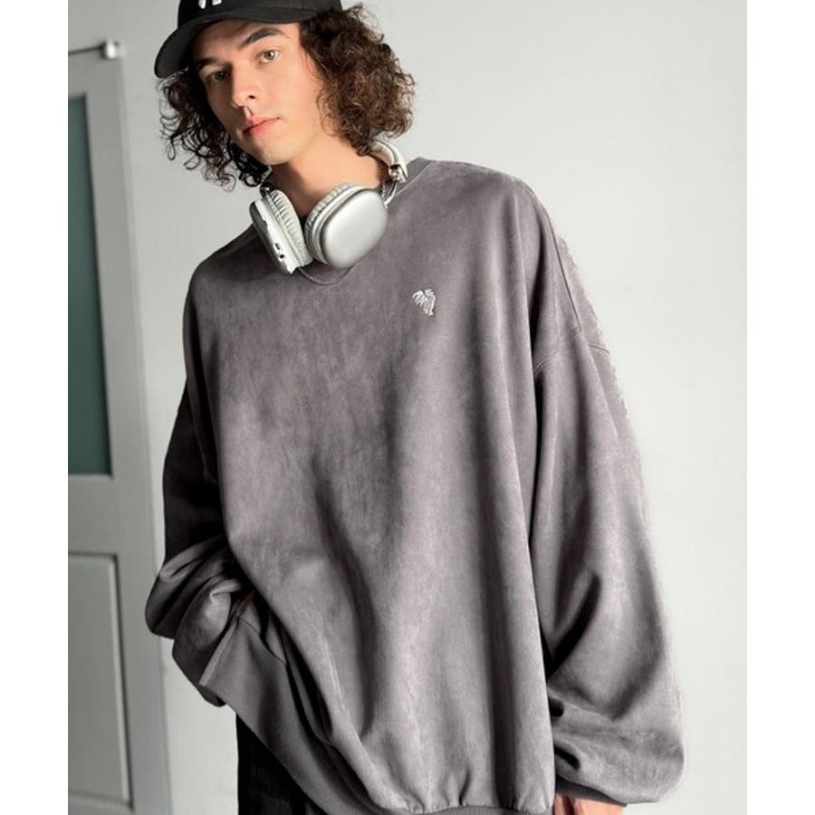 「スウェード素材ビックシルエットトレーナー(長袖)/Suede material big silhouette sweatshirt」