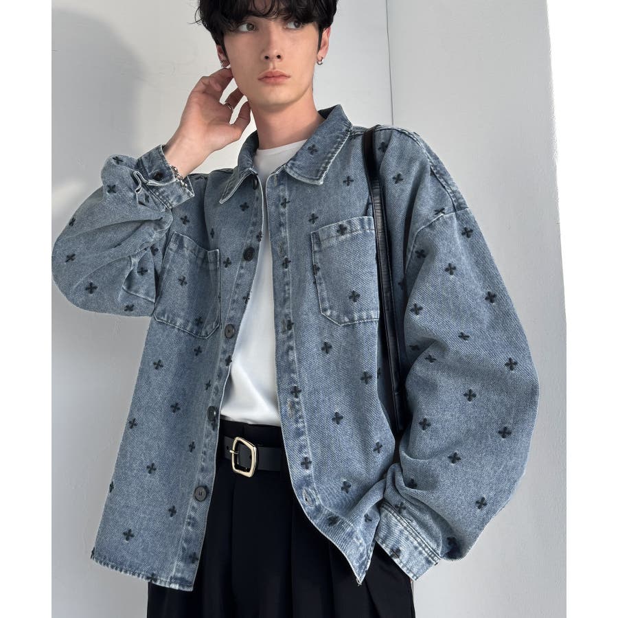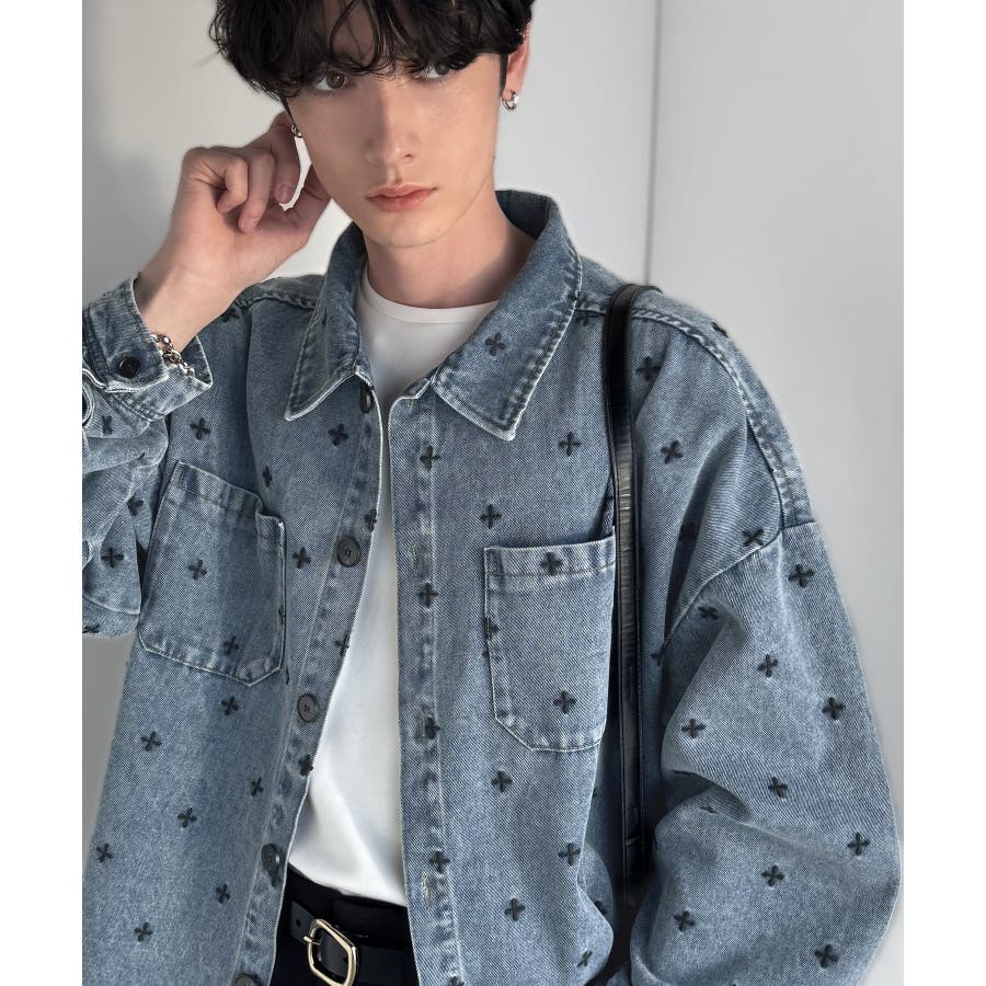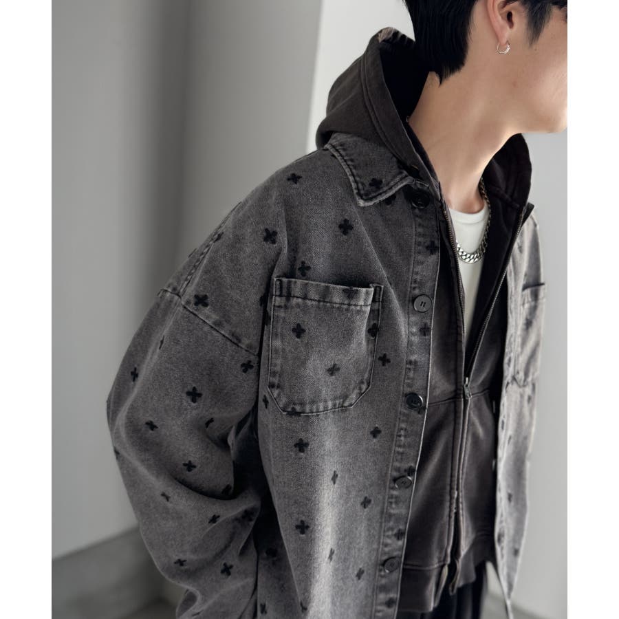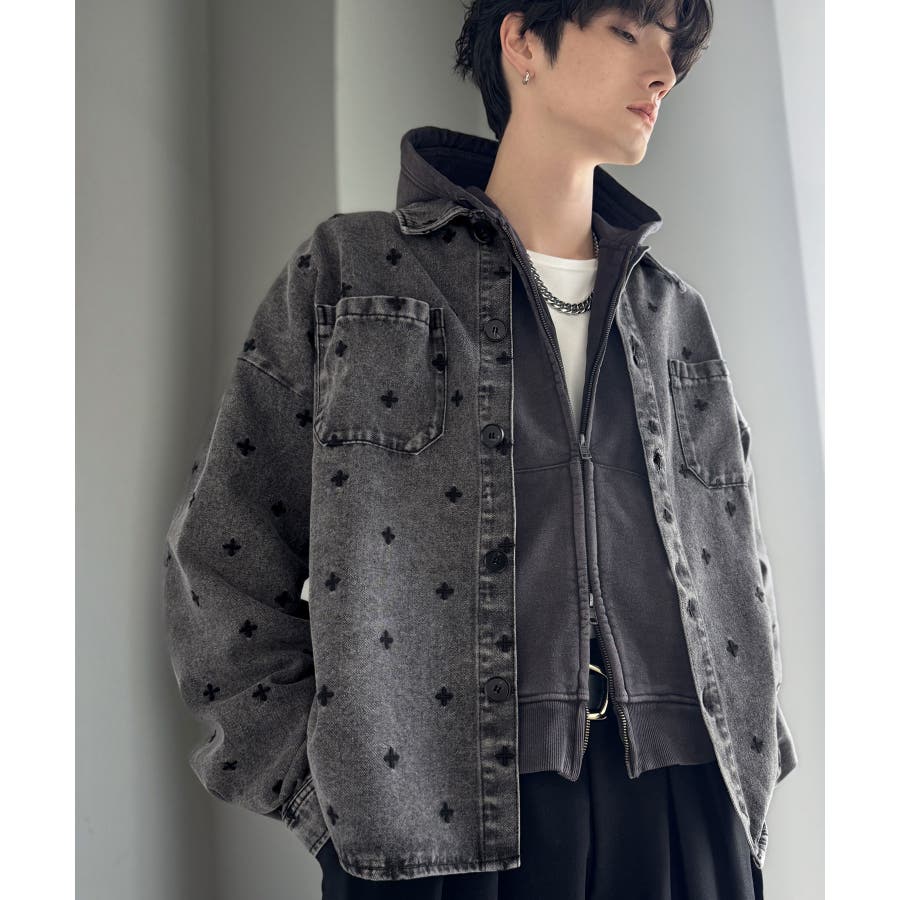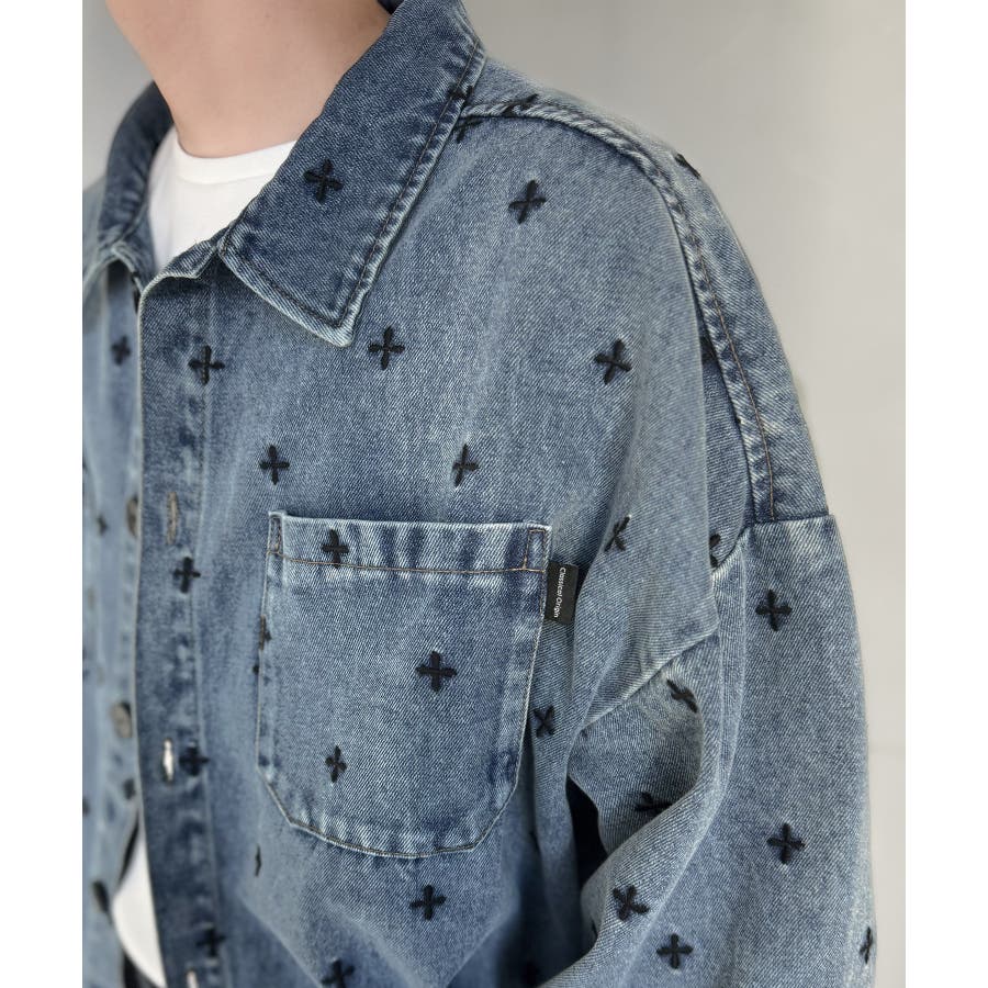総柄刺繍デニムシャツジャケット」