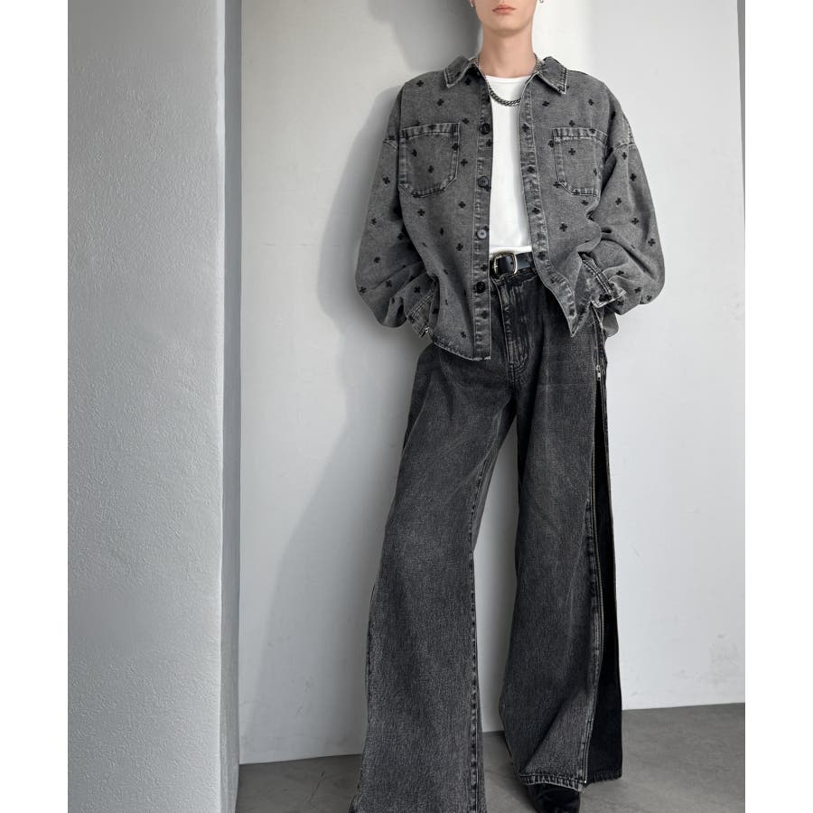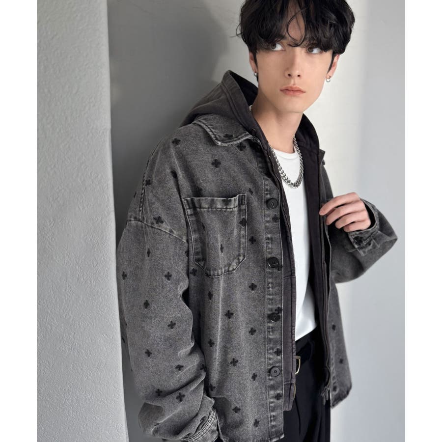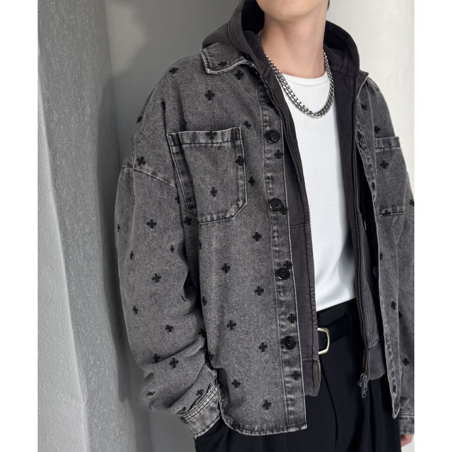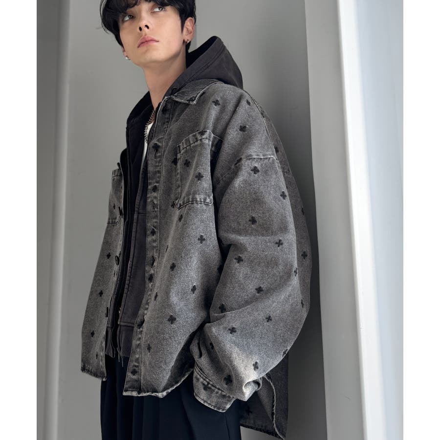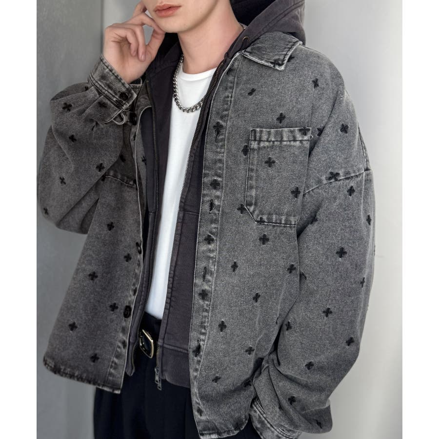 総柄刺繍デニムシャツジャケット」