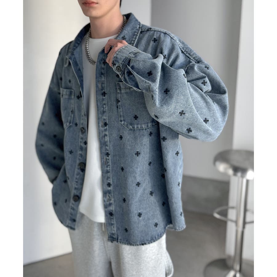 「シンプル以上、主張しすぎない存在感。」総柄刺繍デニムシャツジャケット All …