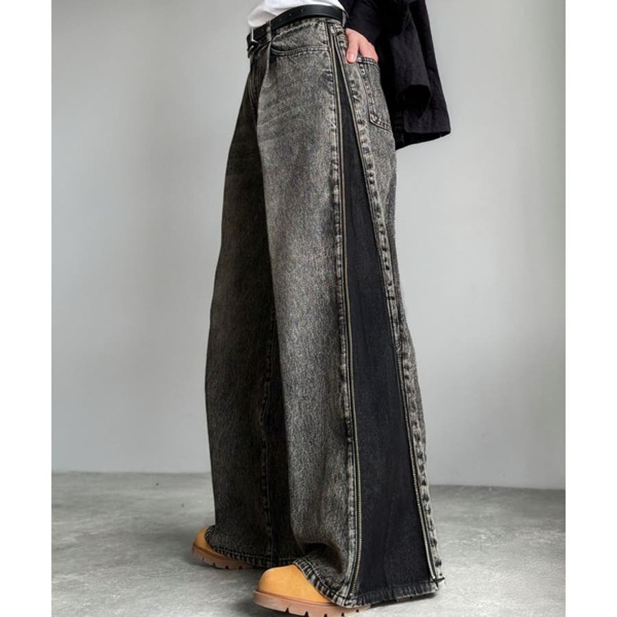 「Vintage Washed Side-Zip Denim/サイドジップ綿100%ヴィンテージウォッシュプデニム」