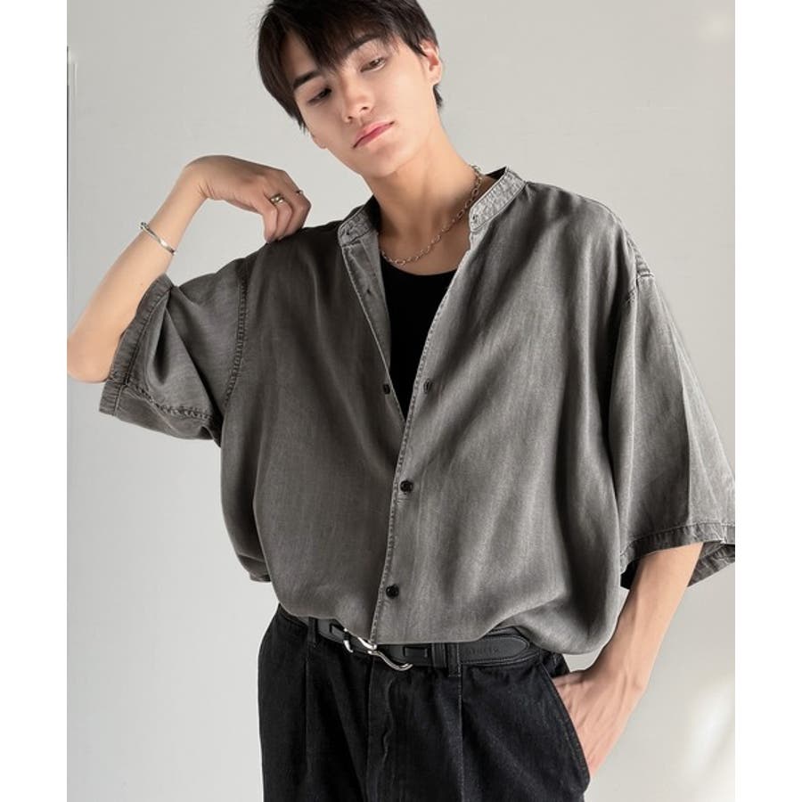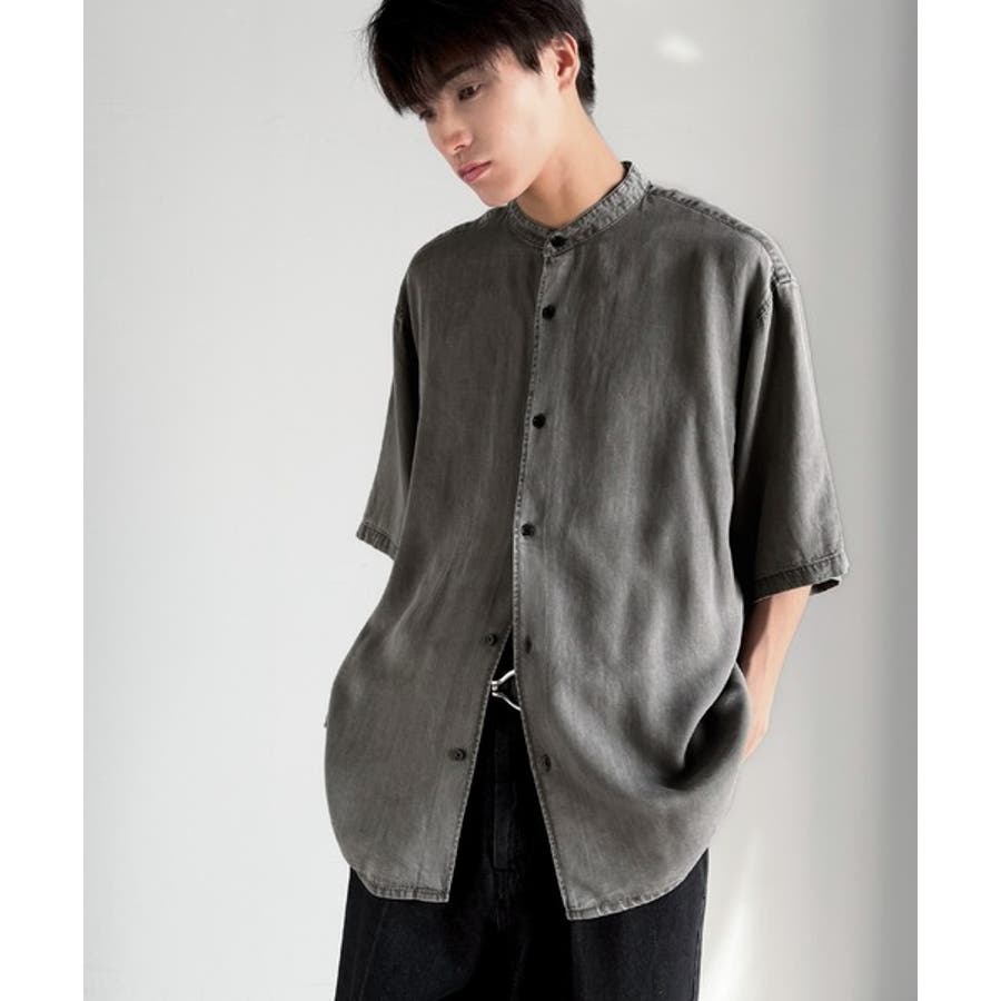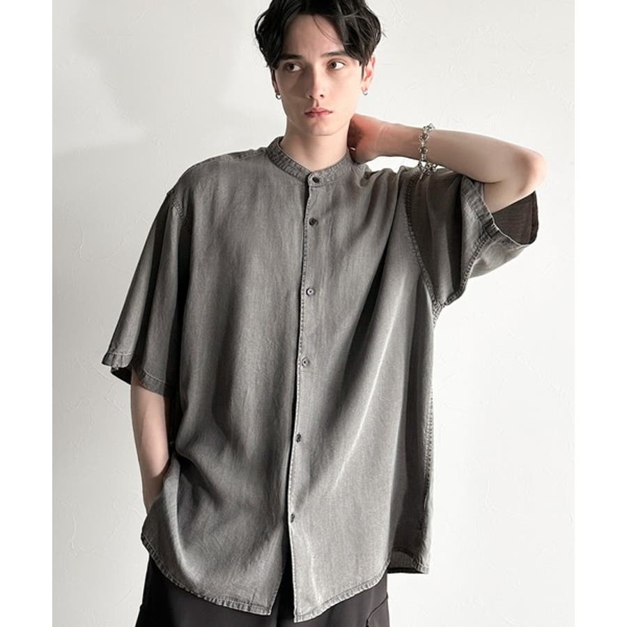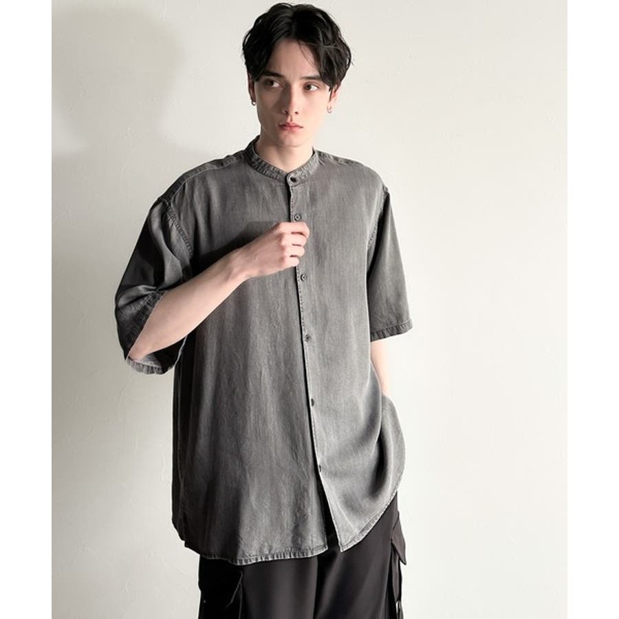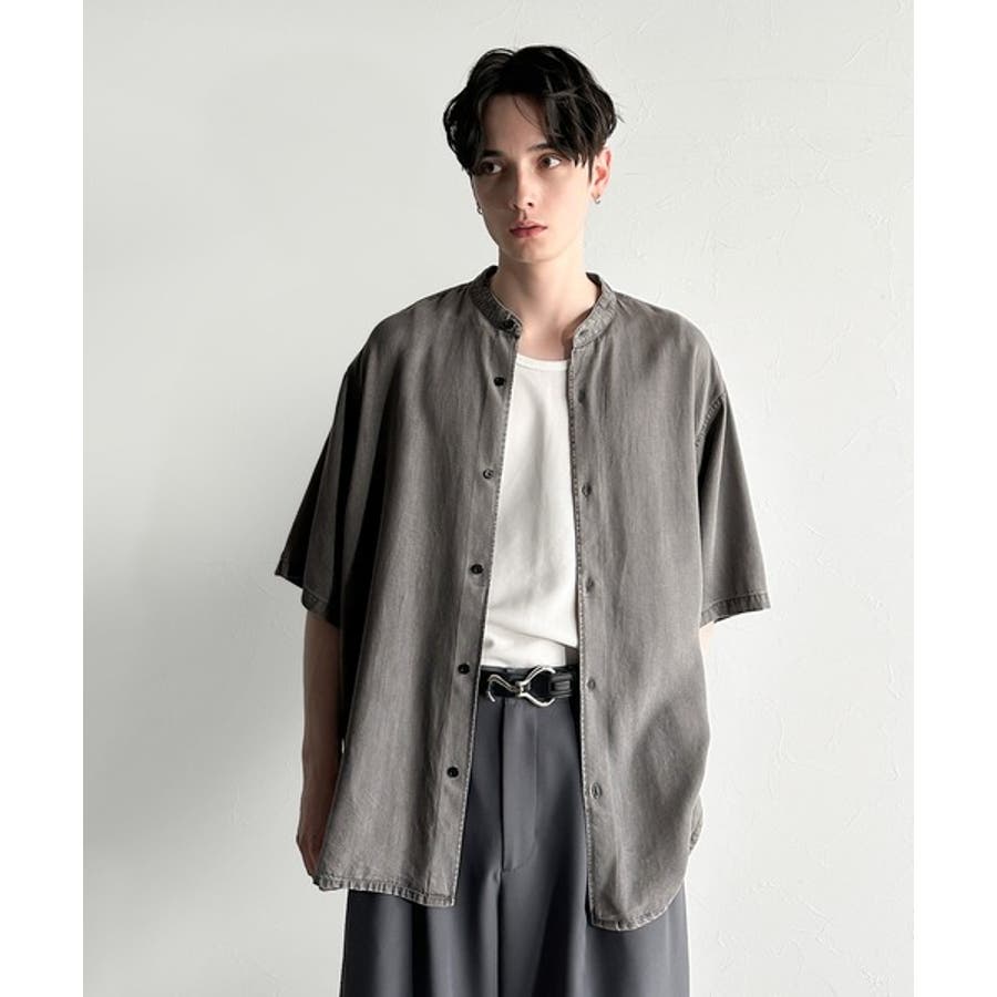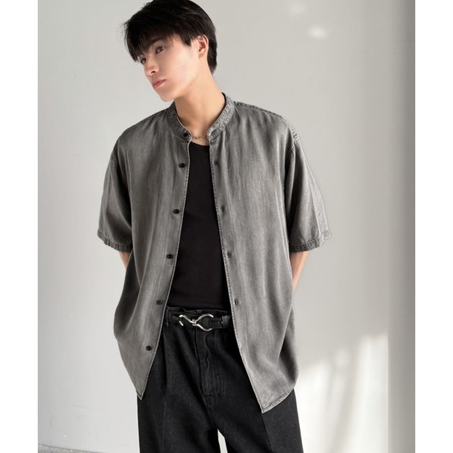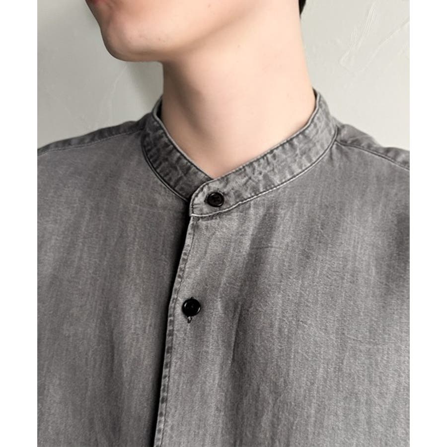 「Rayon Denim Band Collar Relaxed Shirt/ヴィンテージ加工ルーズフィットデニムシャツ」