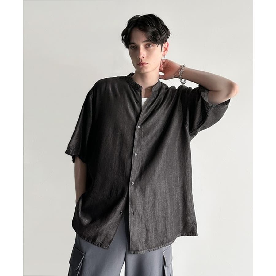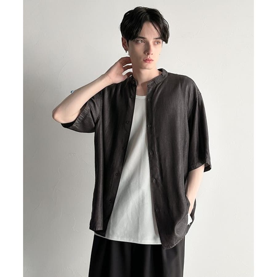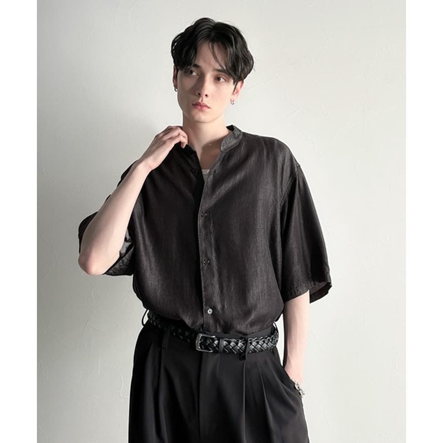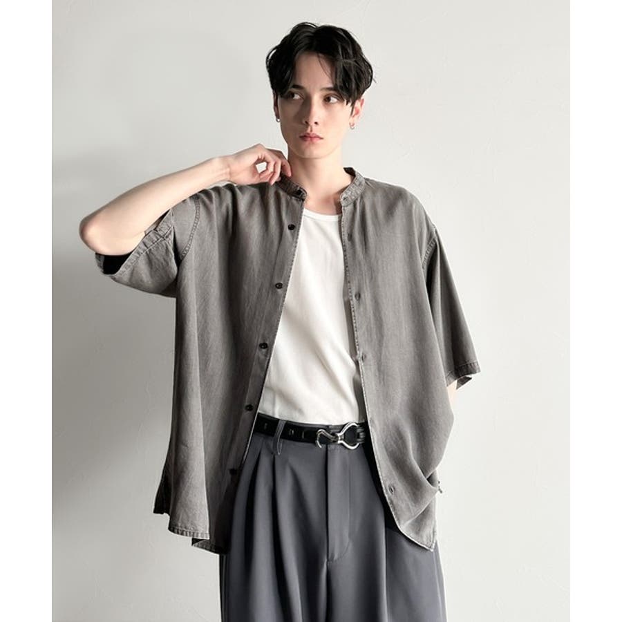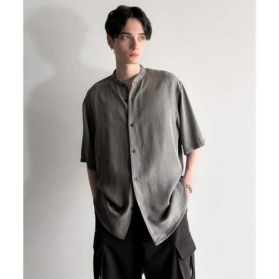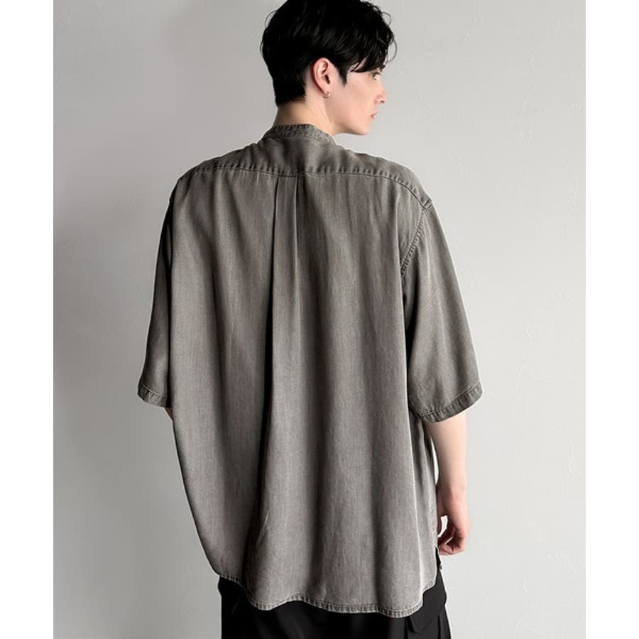 「Rayon Denim Band Collar Relaxed Shirt/ヴィンテージ加工ルーズフィットデニムシャツ」