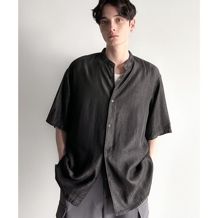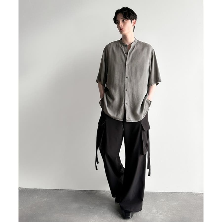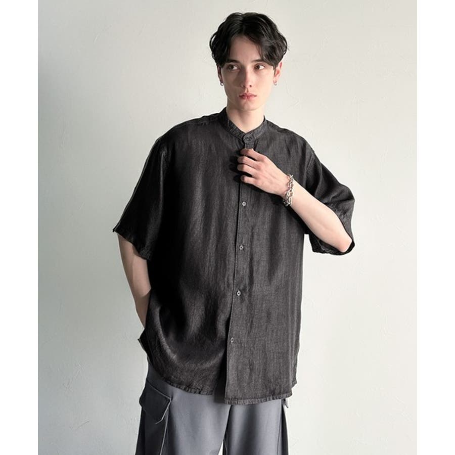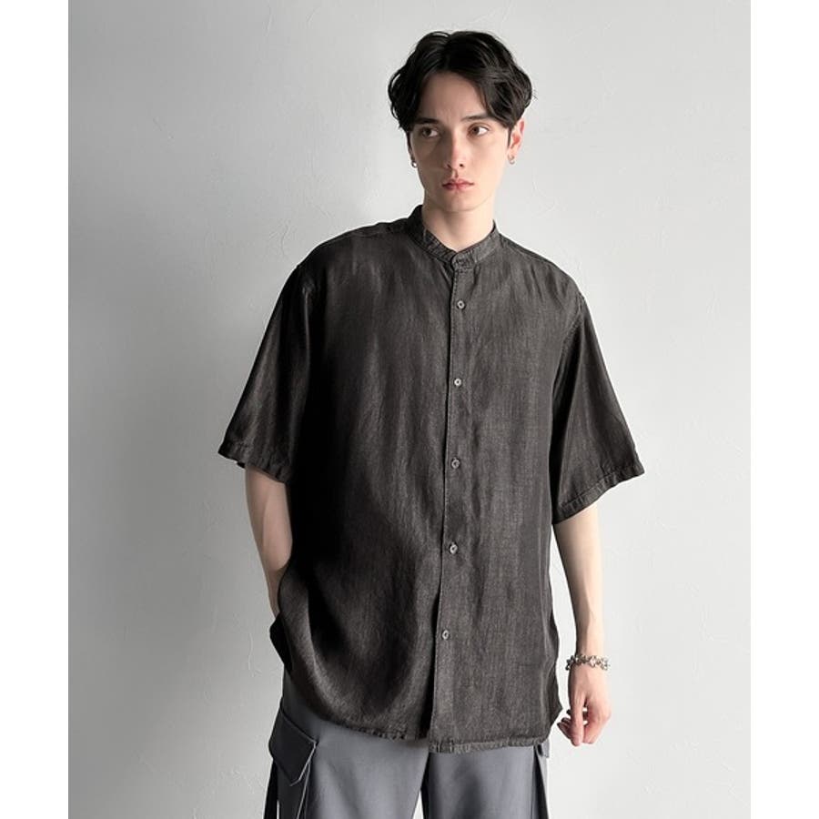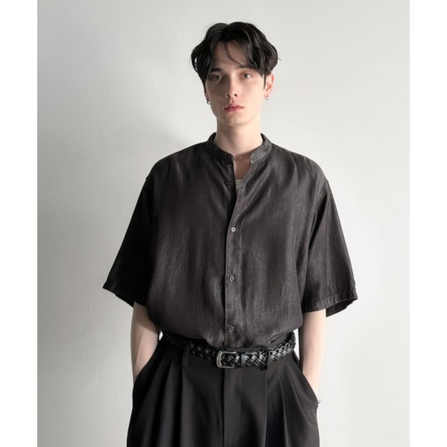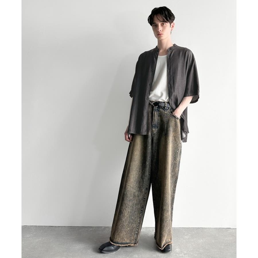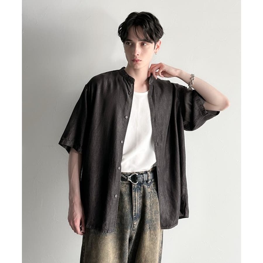 「Rayon Denim Band Collar Relaxed Shirt/ヴィンテージ加工ルーズフィットデニムシャツ」