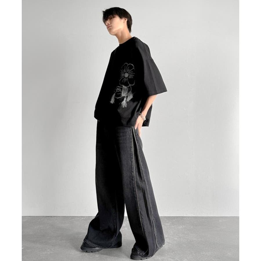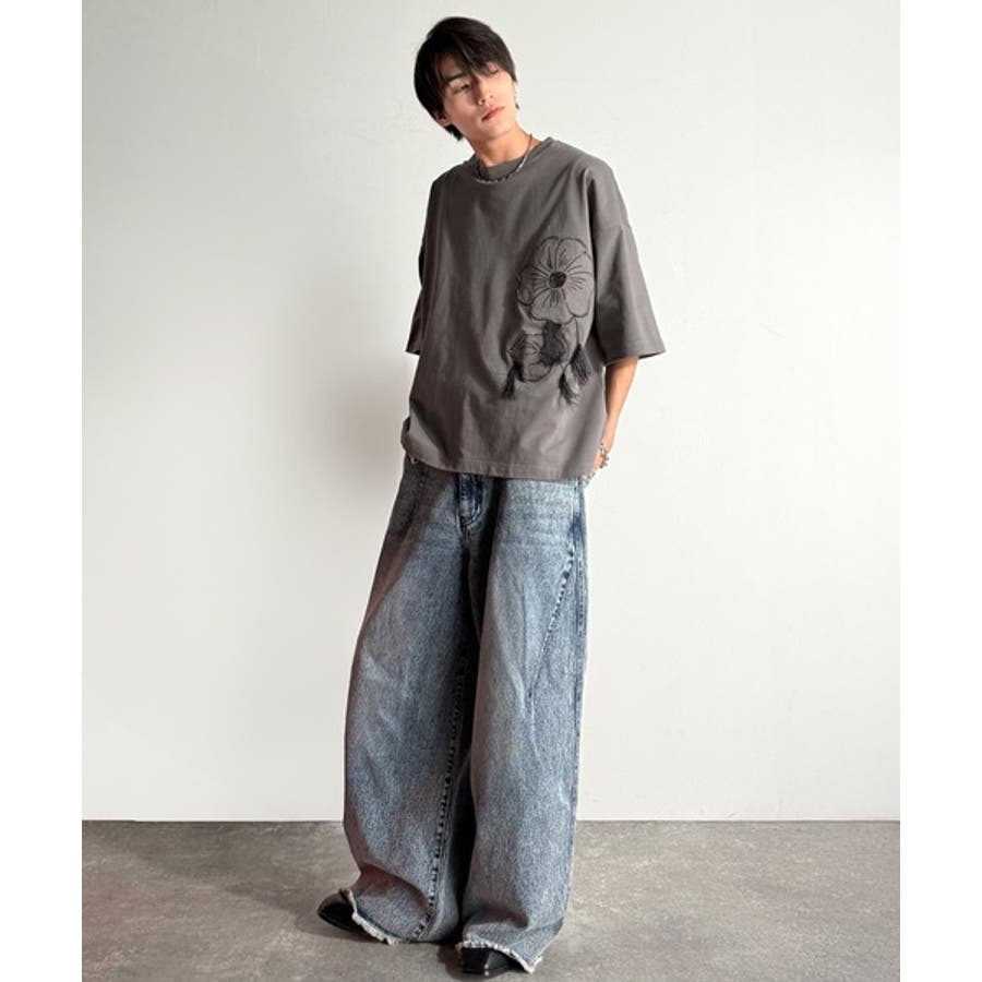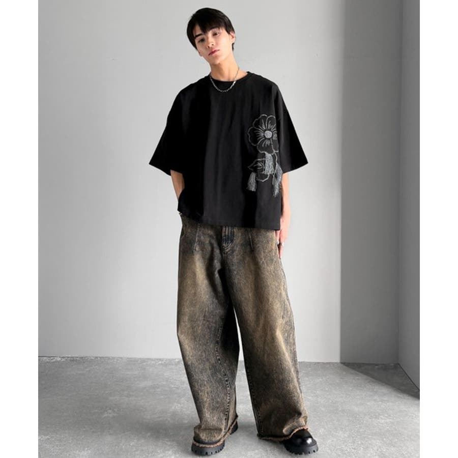 ほつれ刺繍はヴィンテージライクな雰囲気を醸し出し、