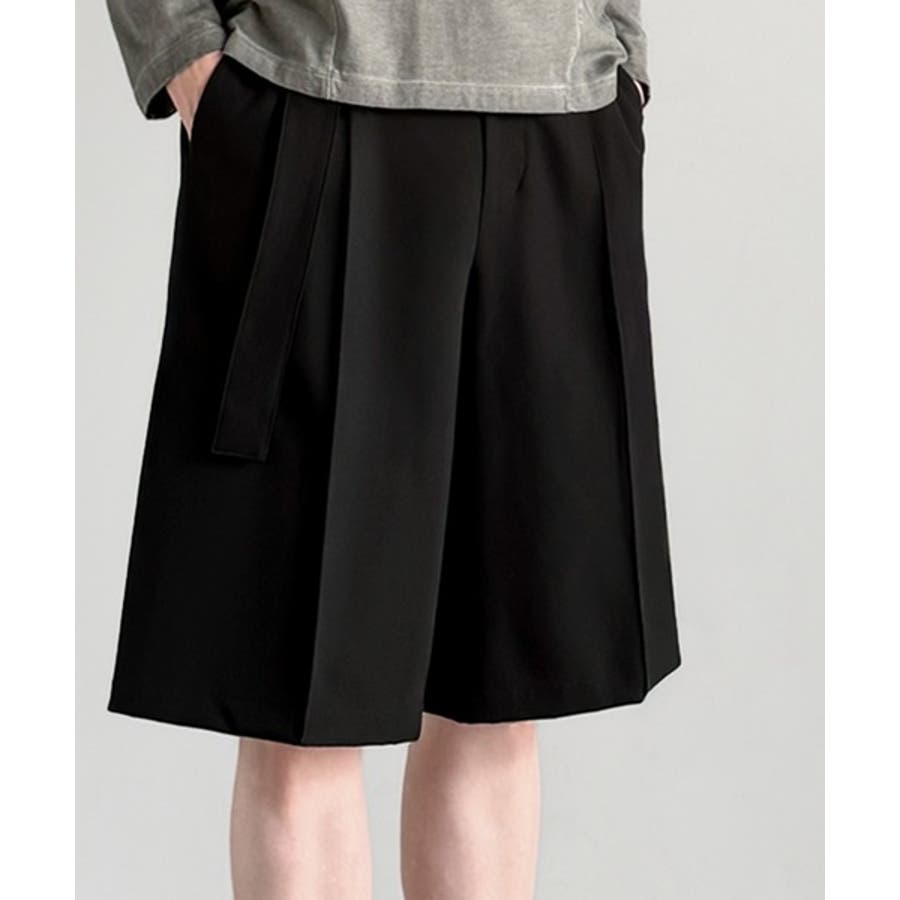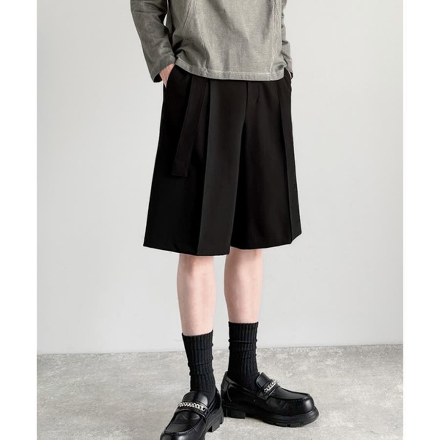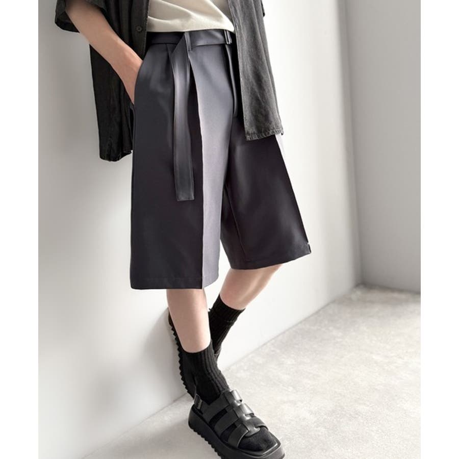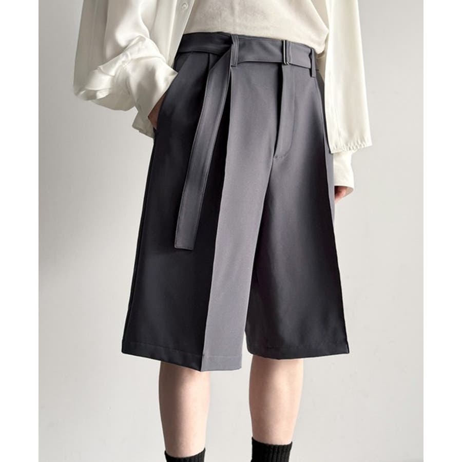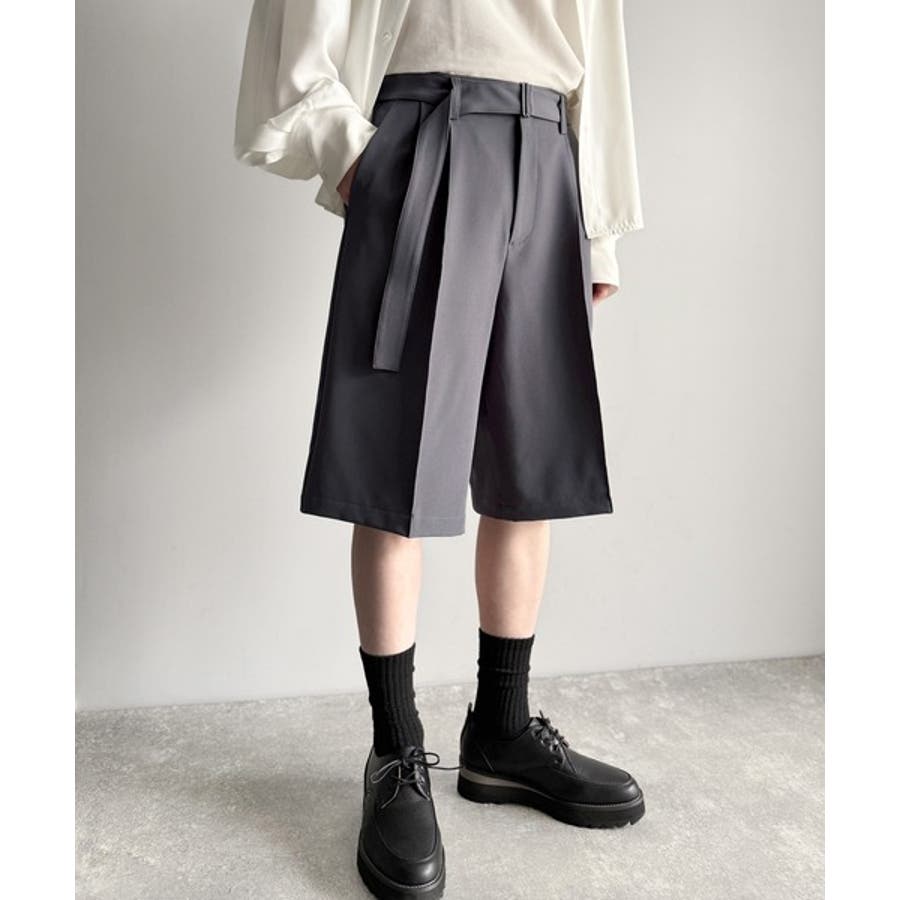「 Belted Design Loose Silhouette Short Slacks/ ベルト付きルーズシルエットショートスラックス」