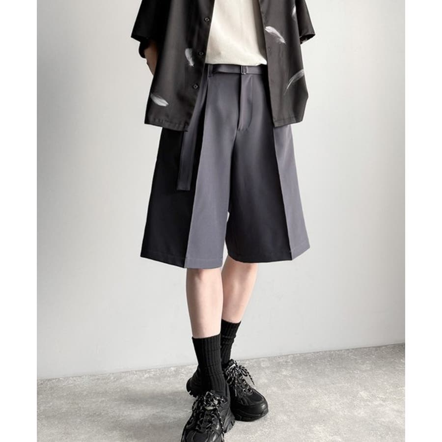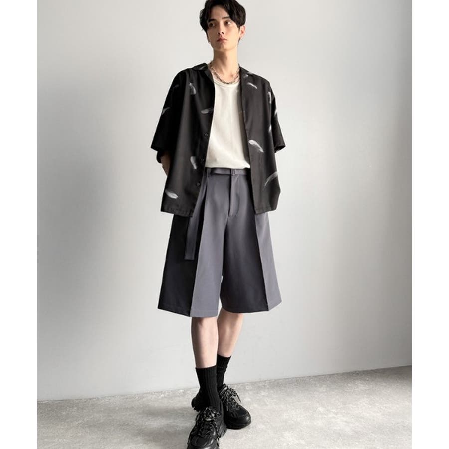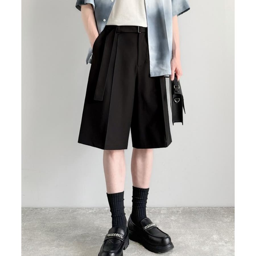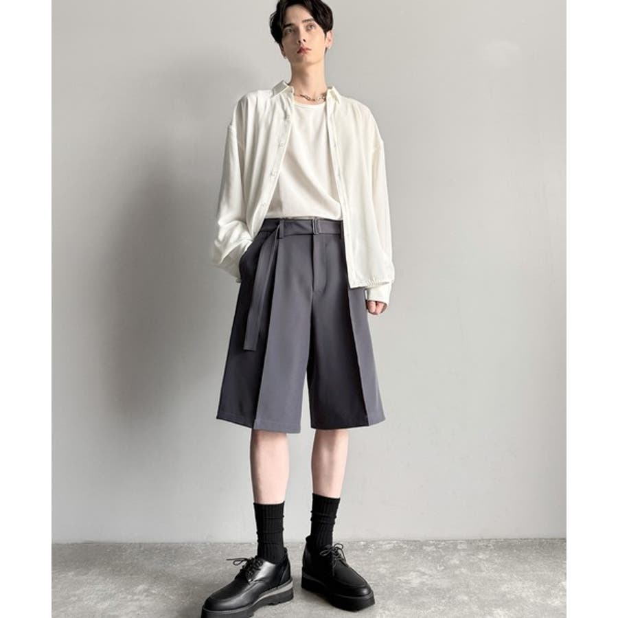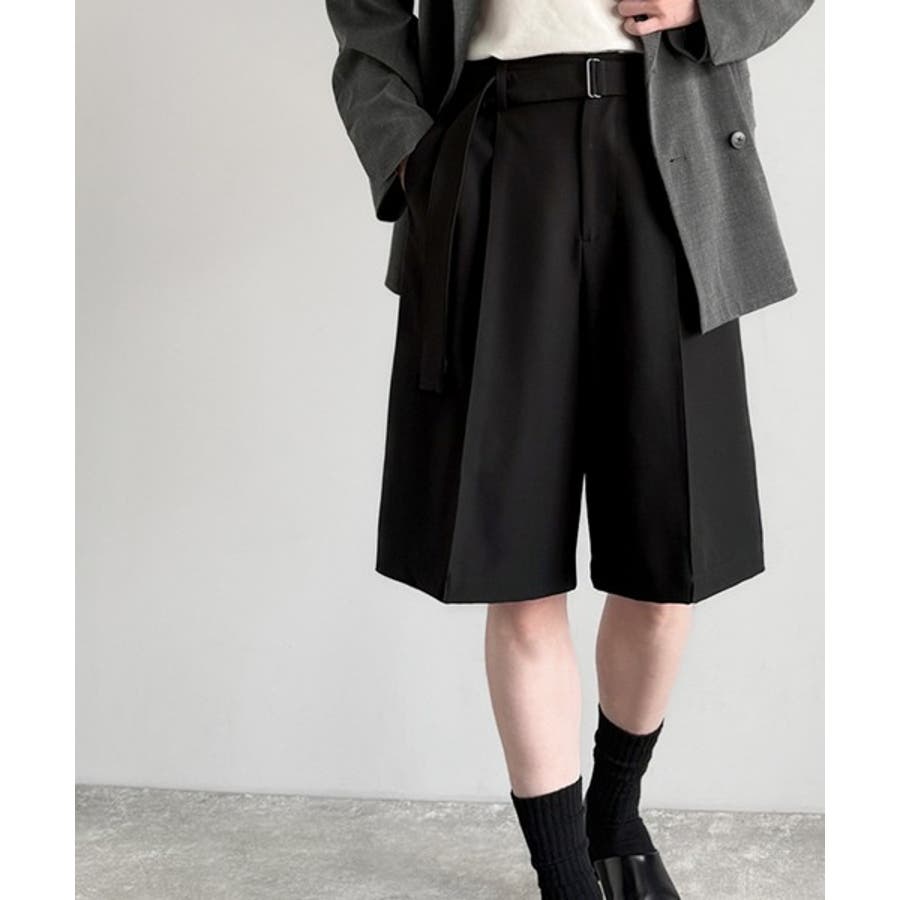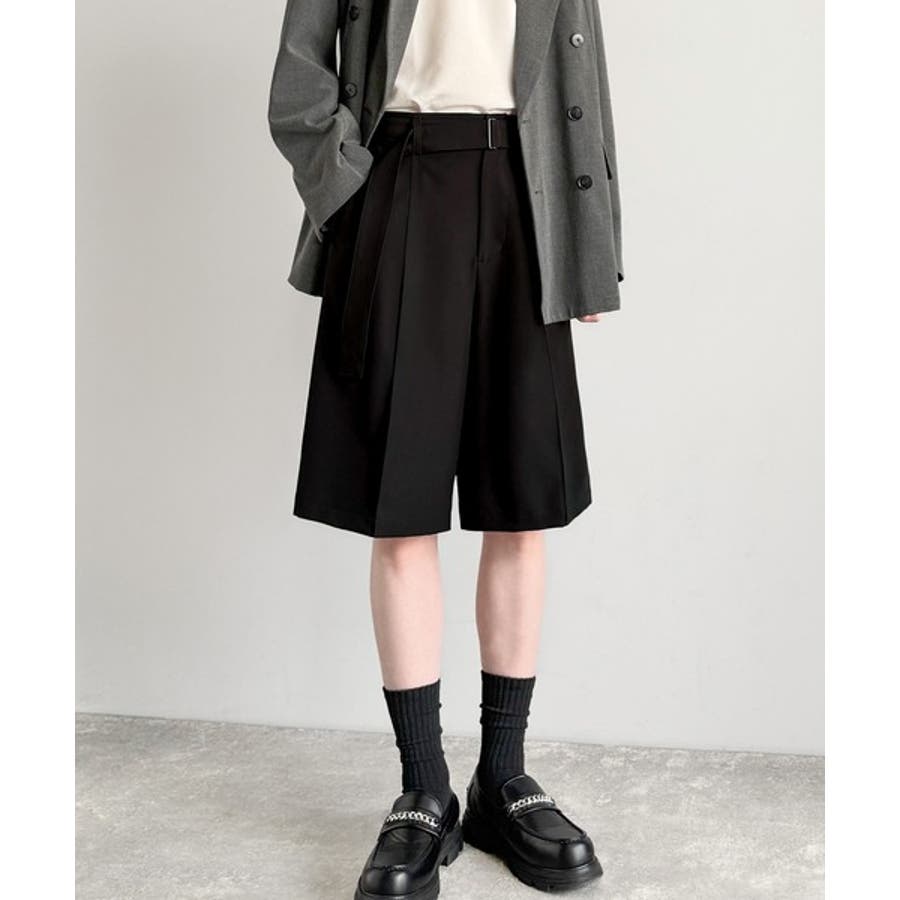 「 Belted Design Loose Silhouette Short Slacks/ ベルト付きルーズシルエットショートスラックス」