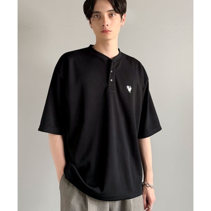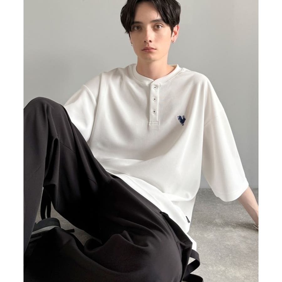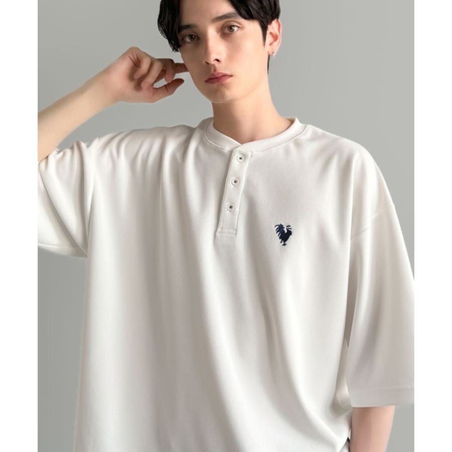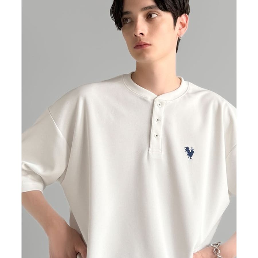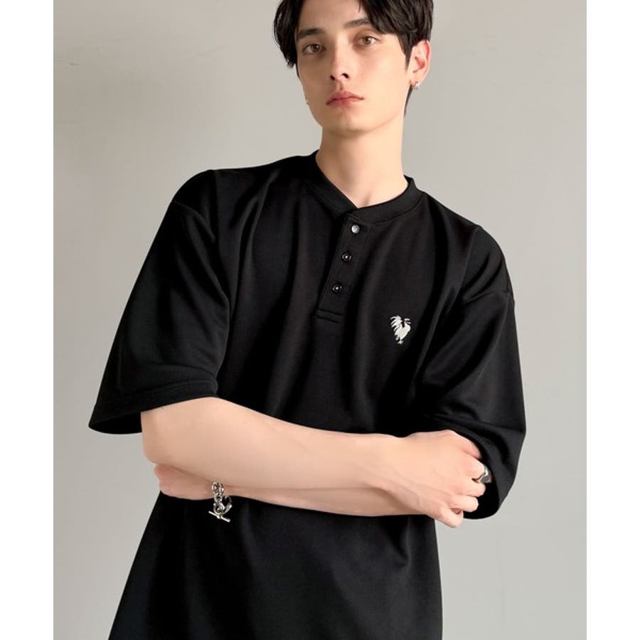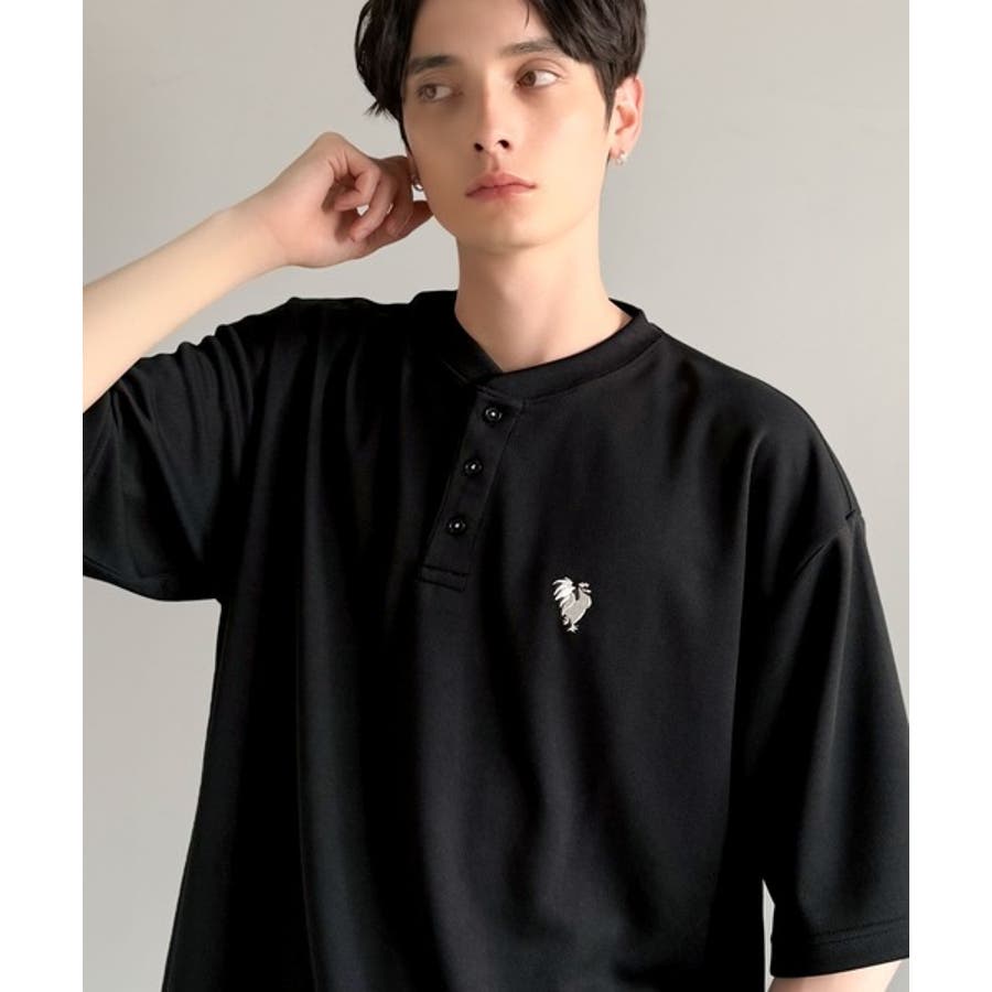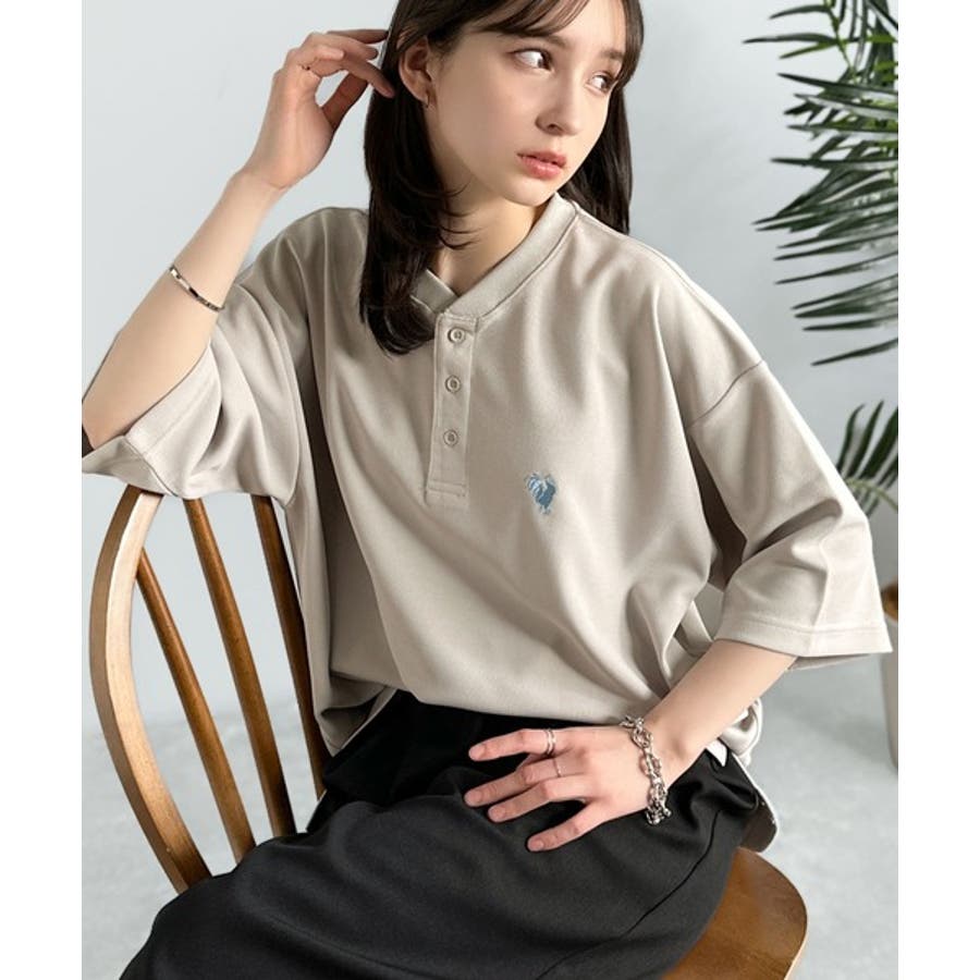 「大人びた遊び心。」刺繍入りハイクオリティダブルフェイス素材バンドカラーポロシャ…