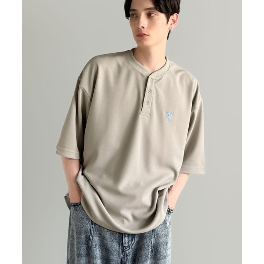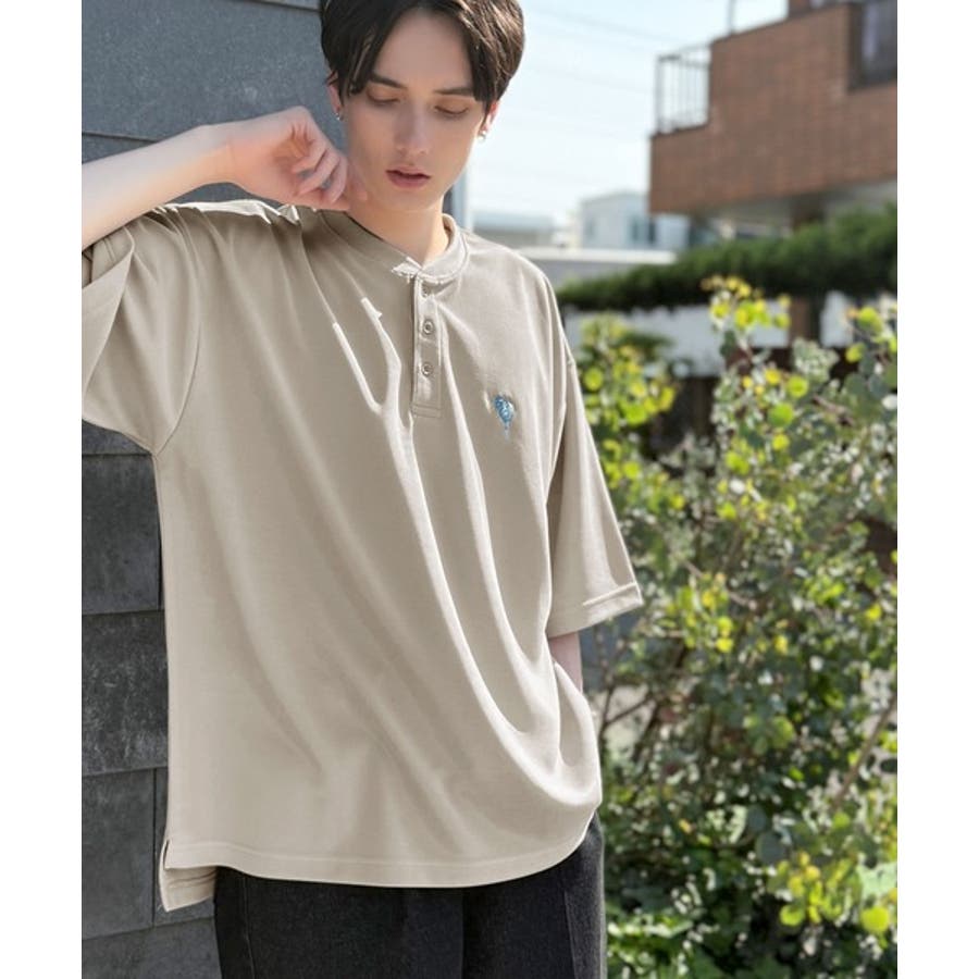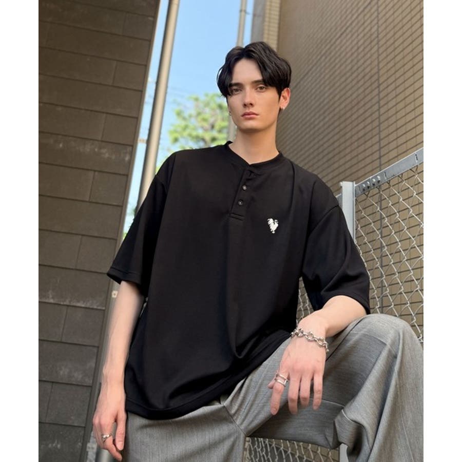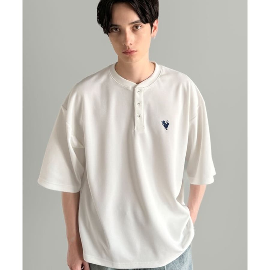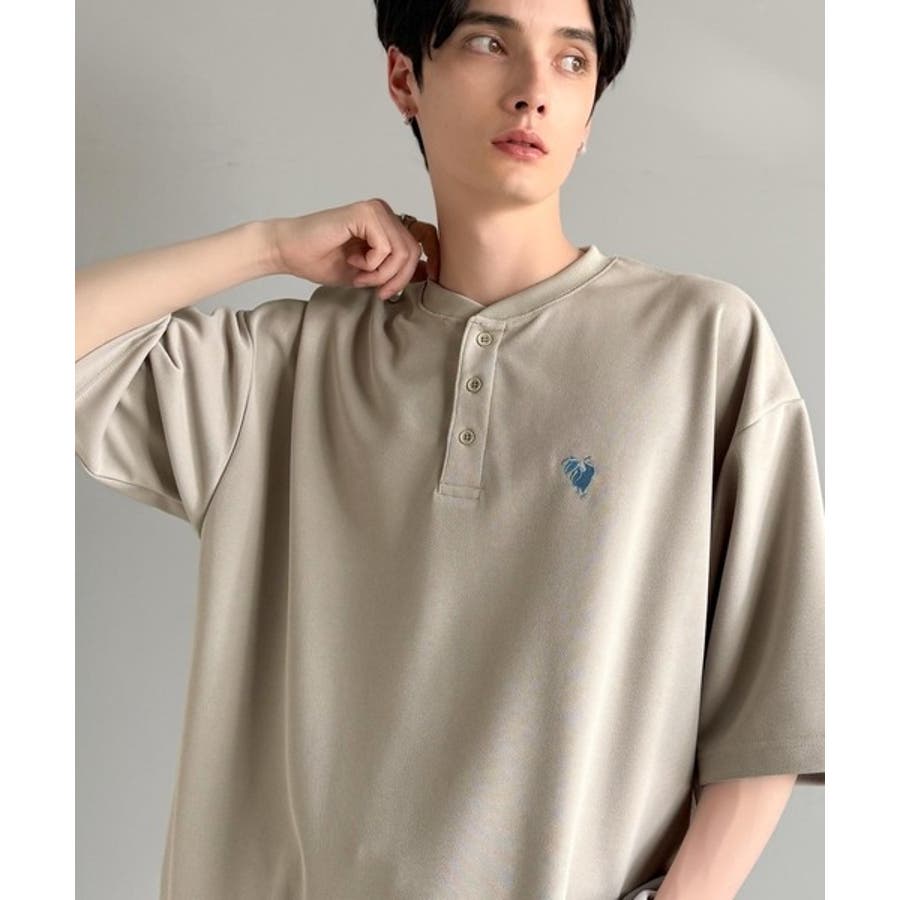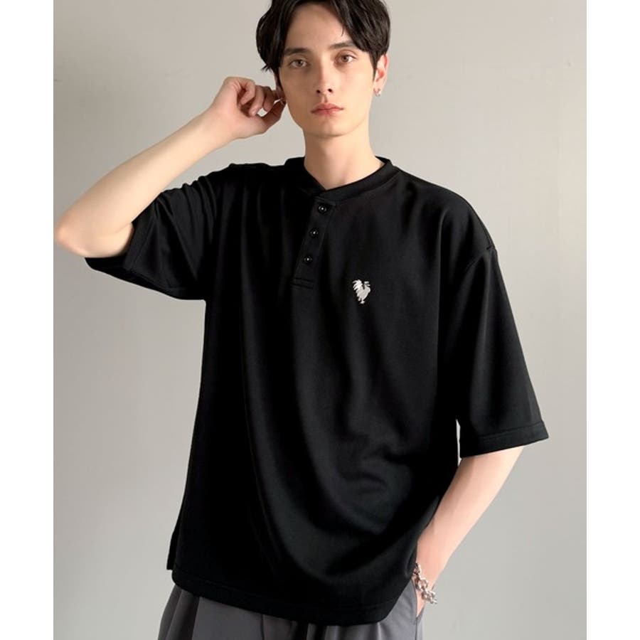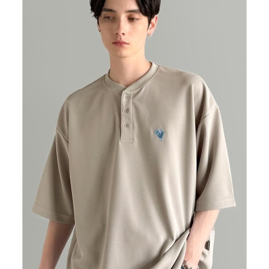 「大人びた遊び心。」刺繍入りハイクオリティダブルフェイス素材バンドカラーポロシャ…
