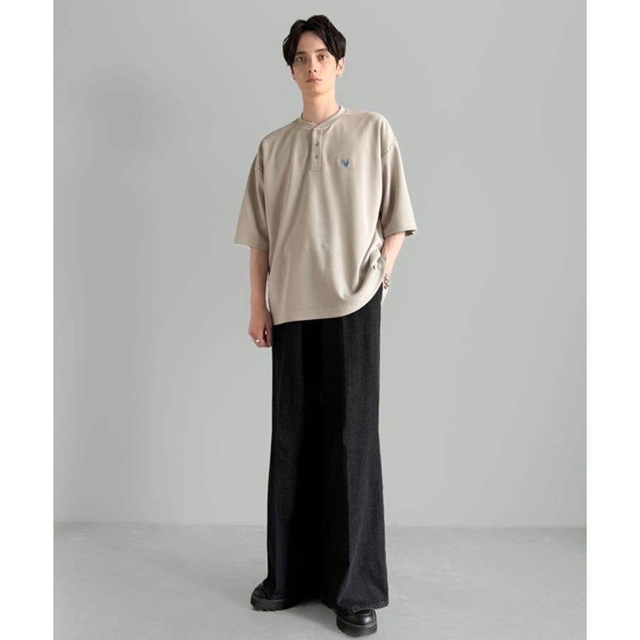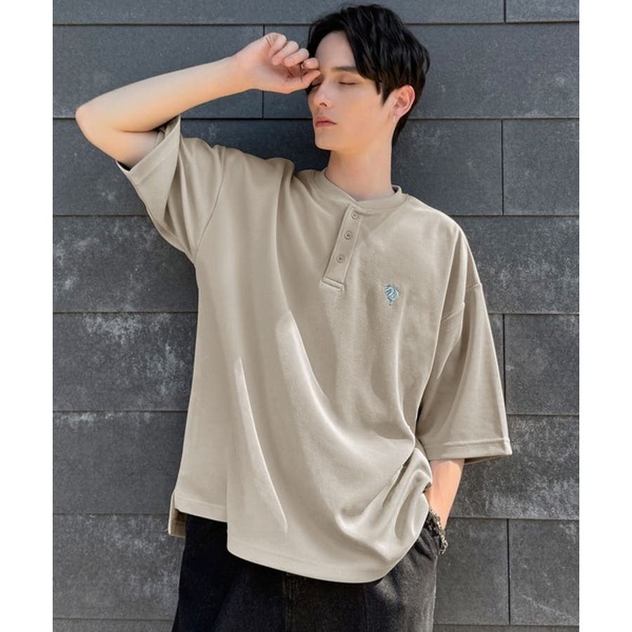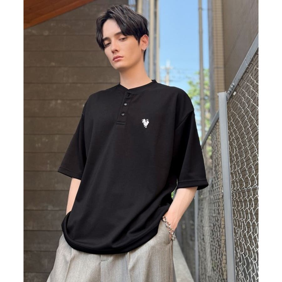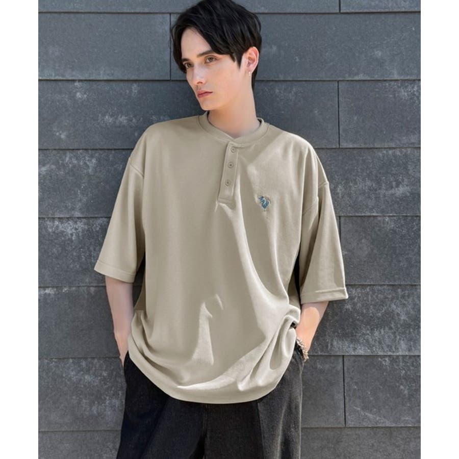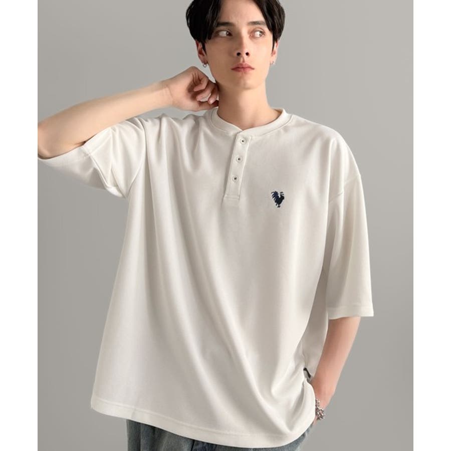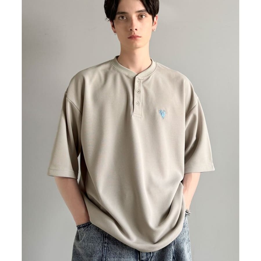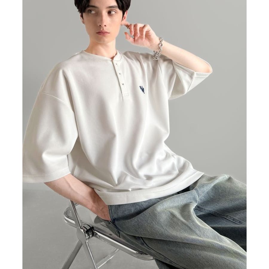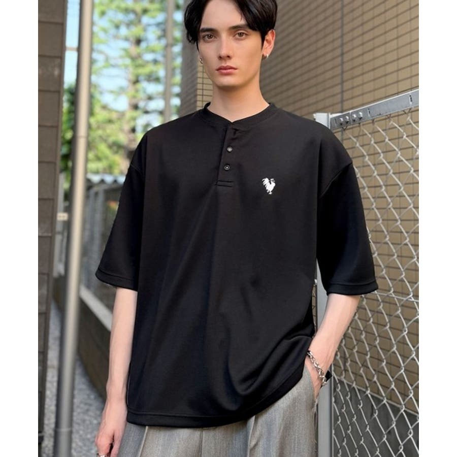 「大人びた遊び心。」刺繍入りハイクオリティダブルフェイス素材バンドカラーポロシャ…