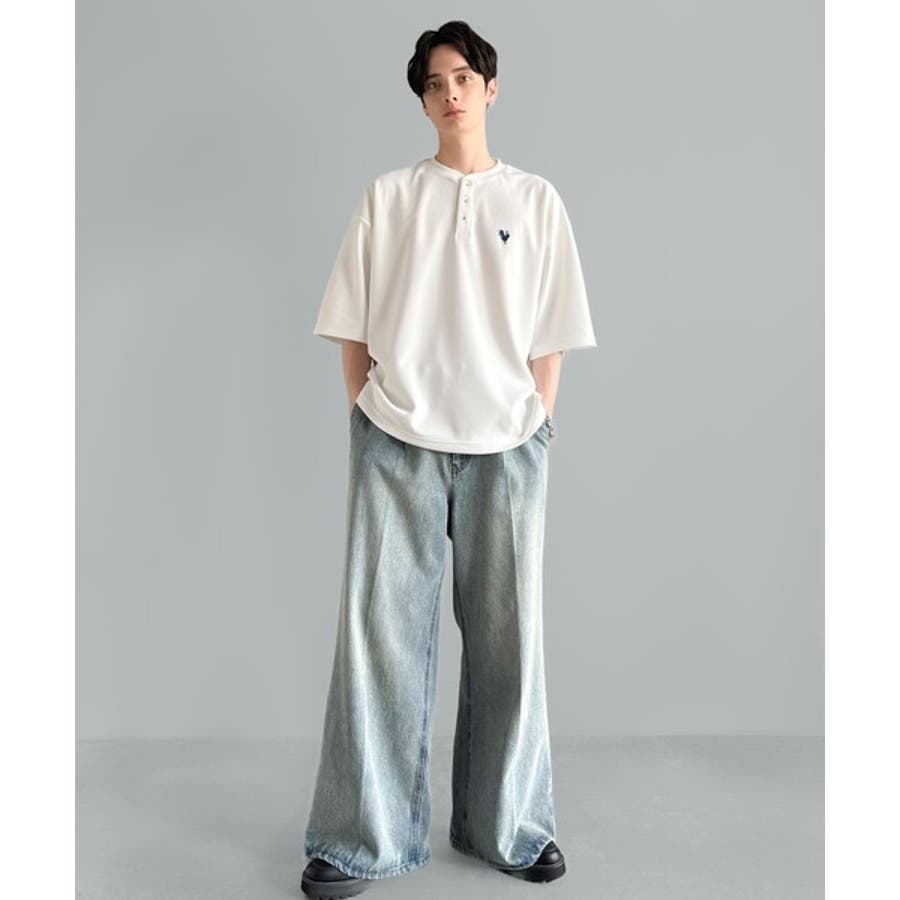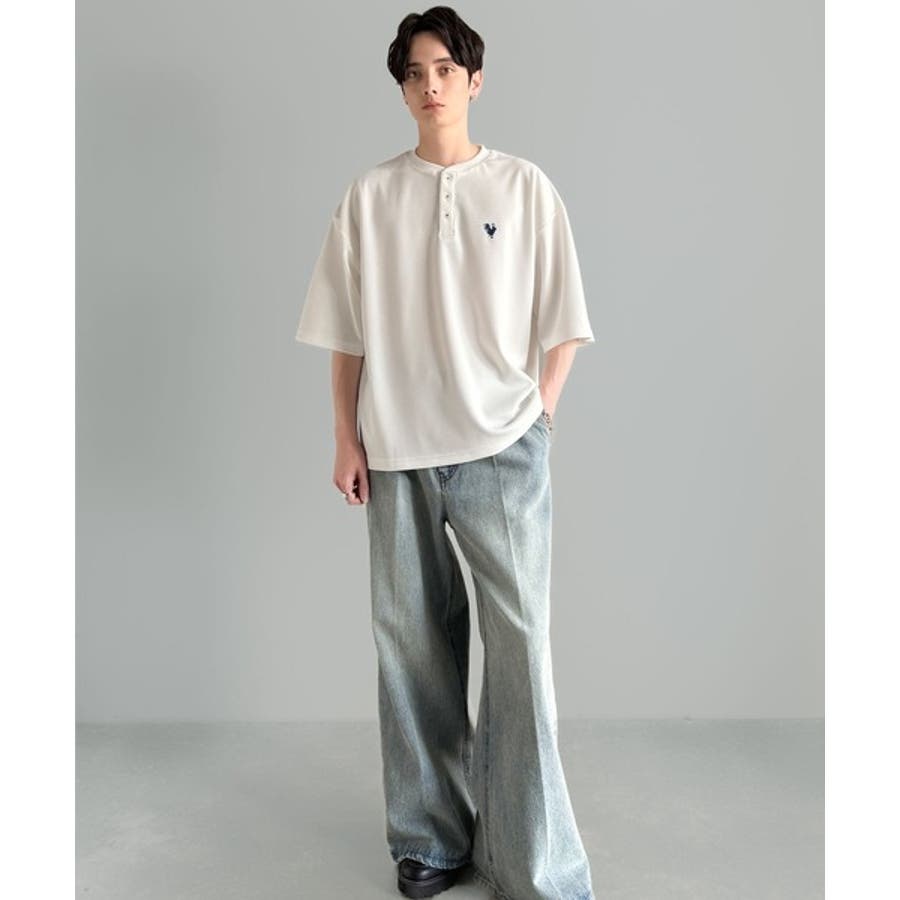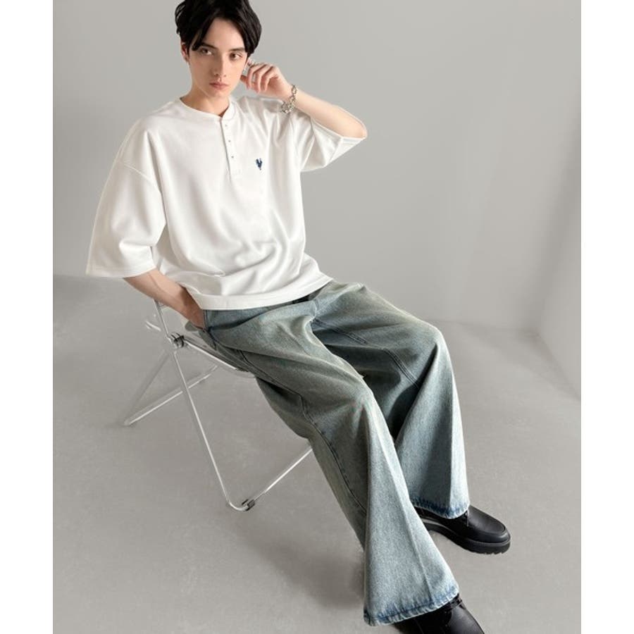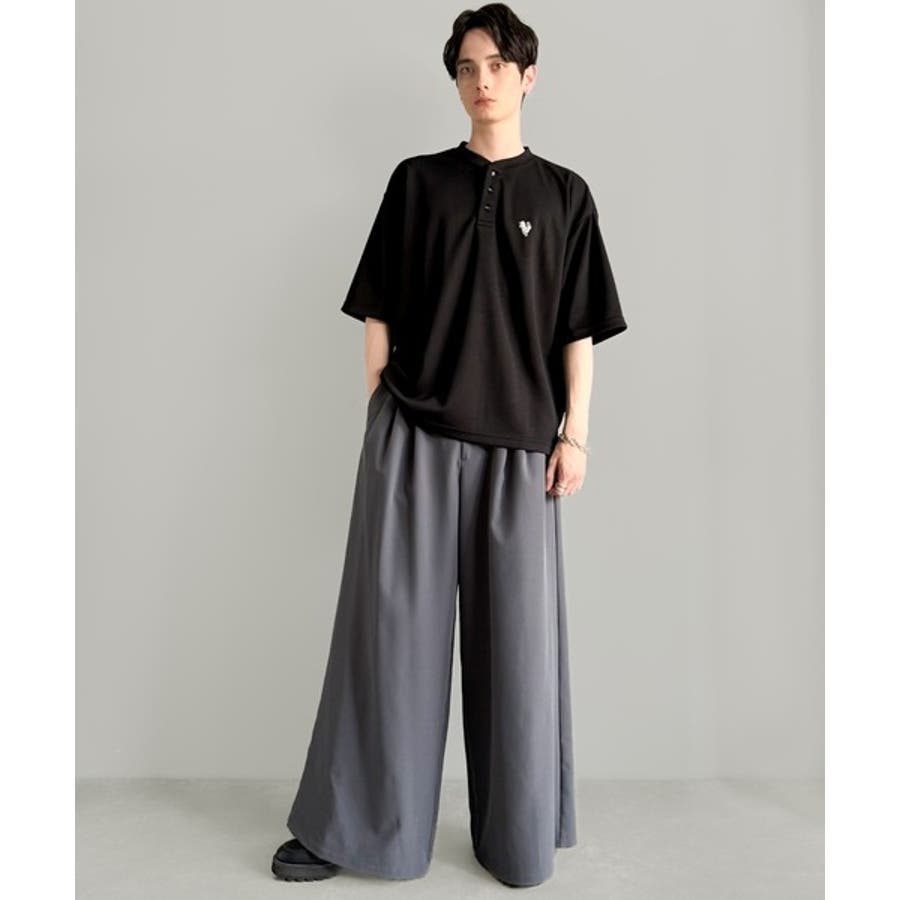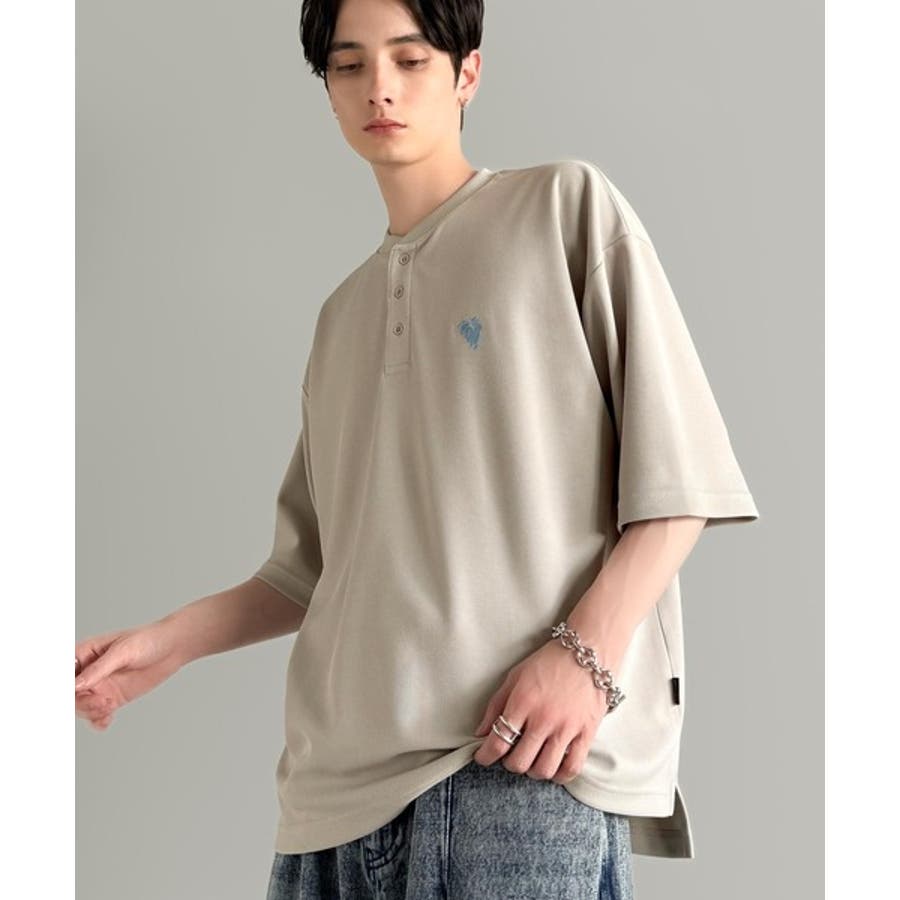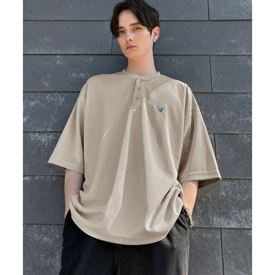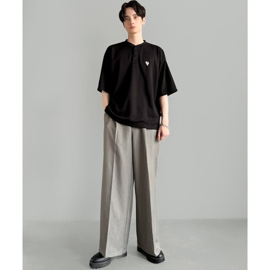 「大人びた遊び心。」刺繍入りハイクオリティダブルフェイス素材バンドカラーポロシャ…
