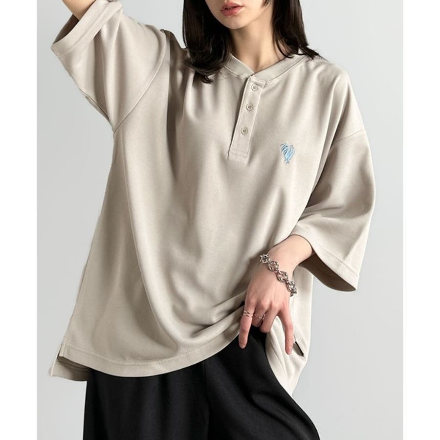 高級感漂う左胸のワンポイント刺繍とトレンド感のあるバンドカラーが、シンプルながらも上品な印象を演出。