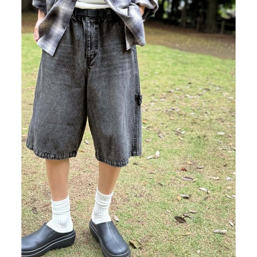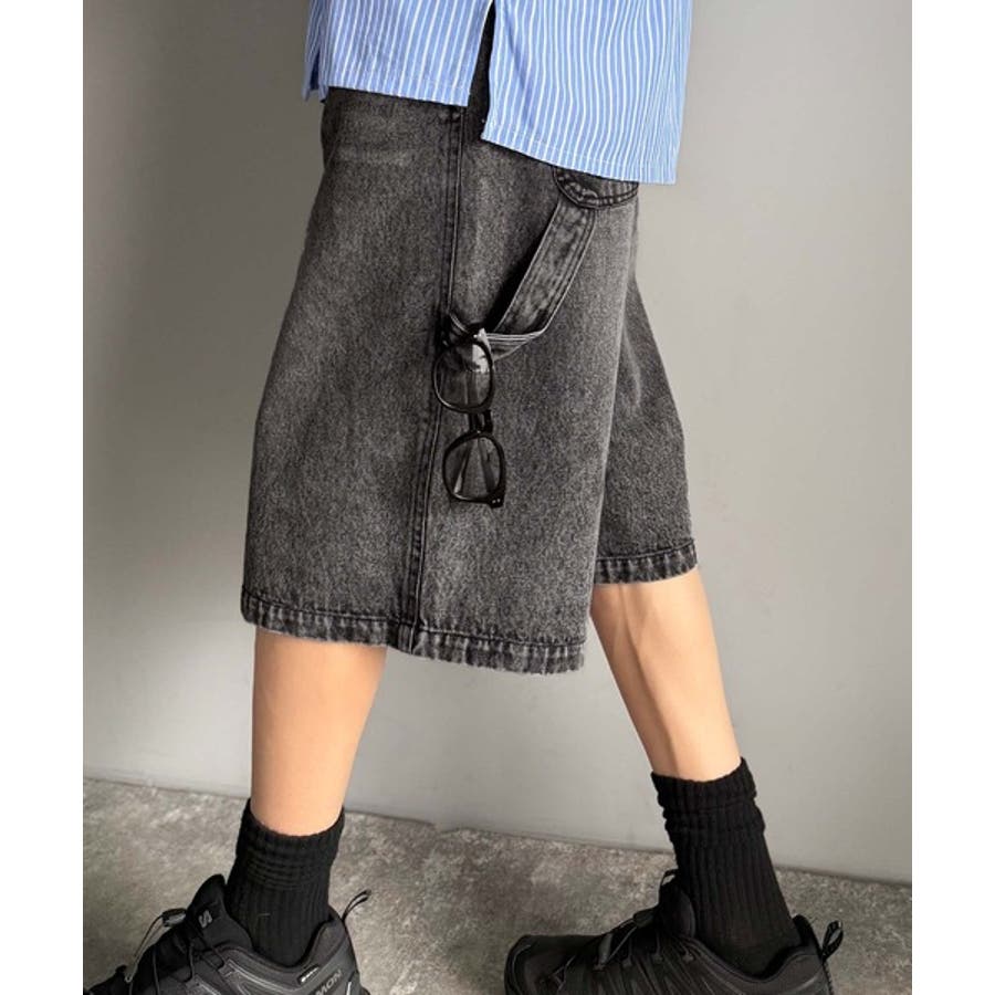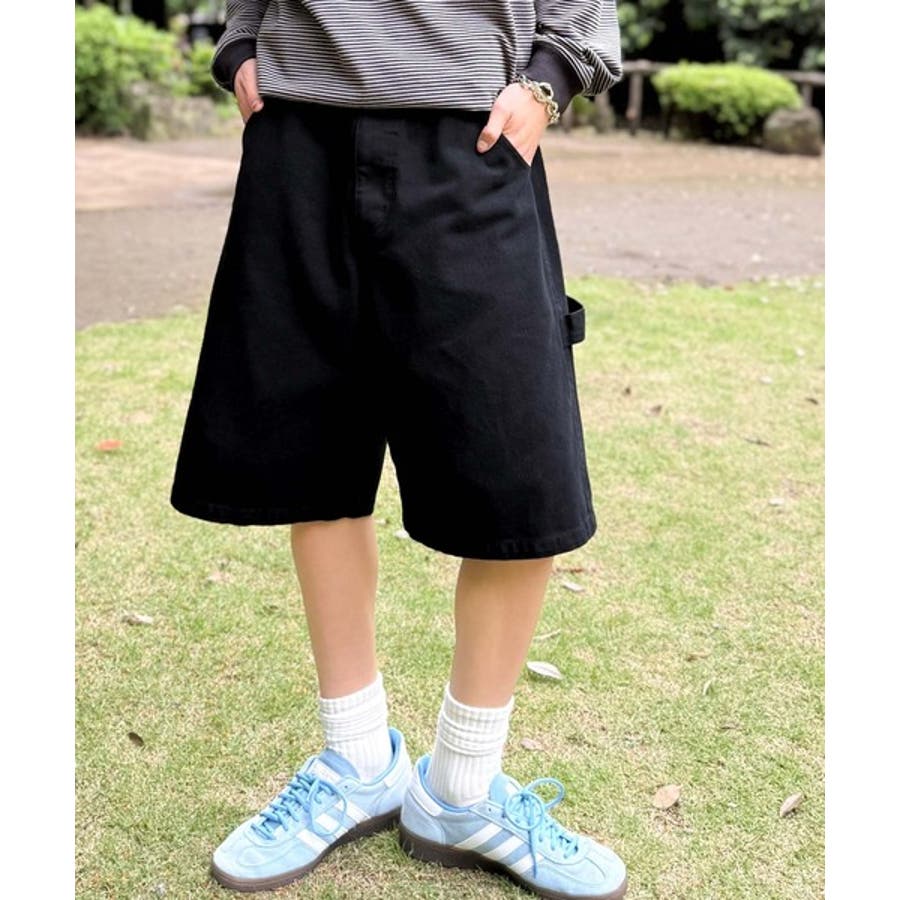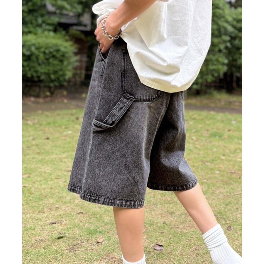 ベルトデザイン ペインター ハーフデニムパンツ」