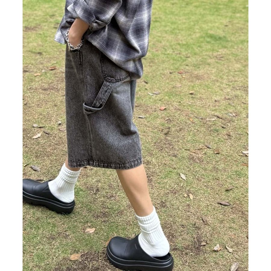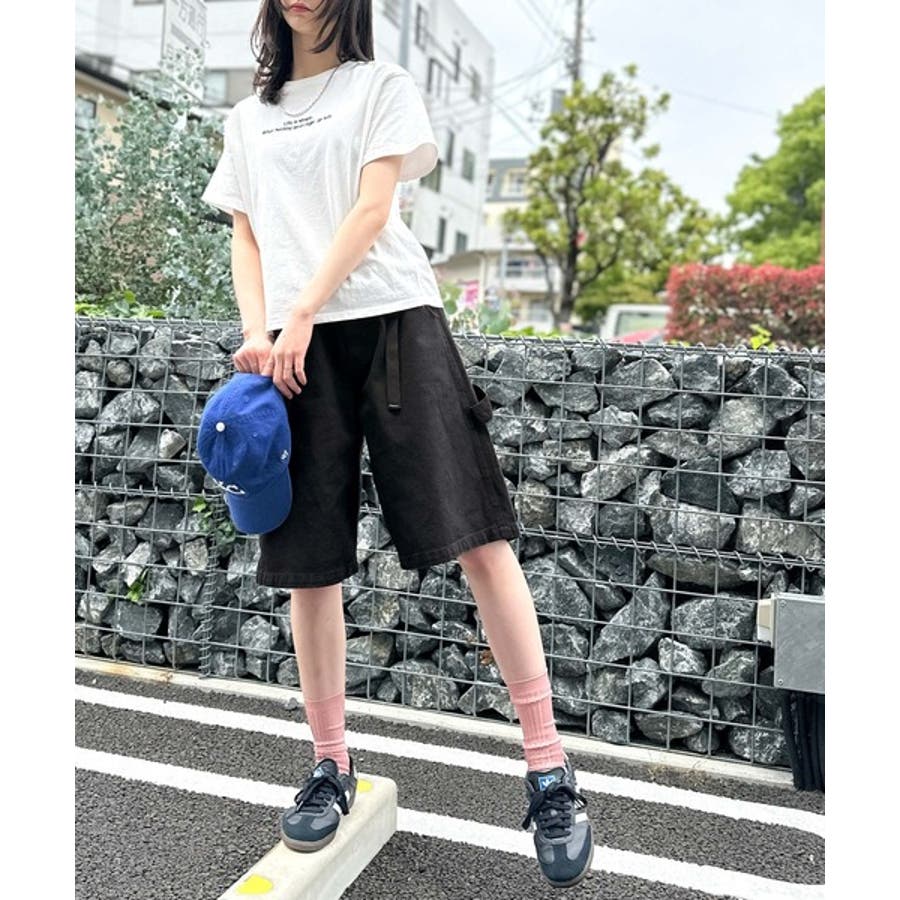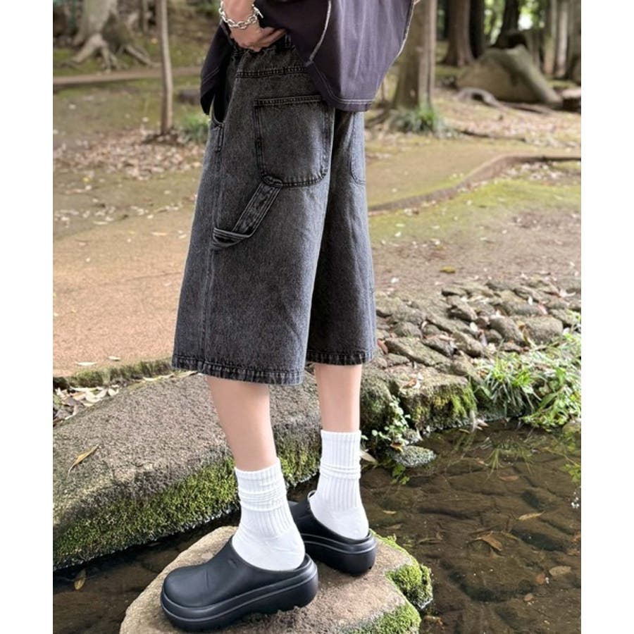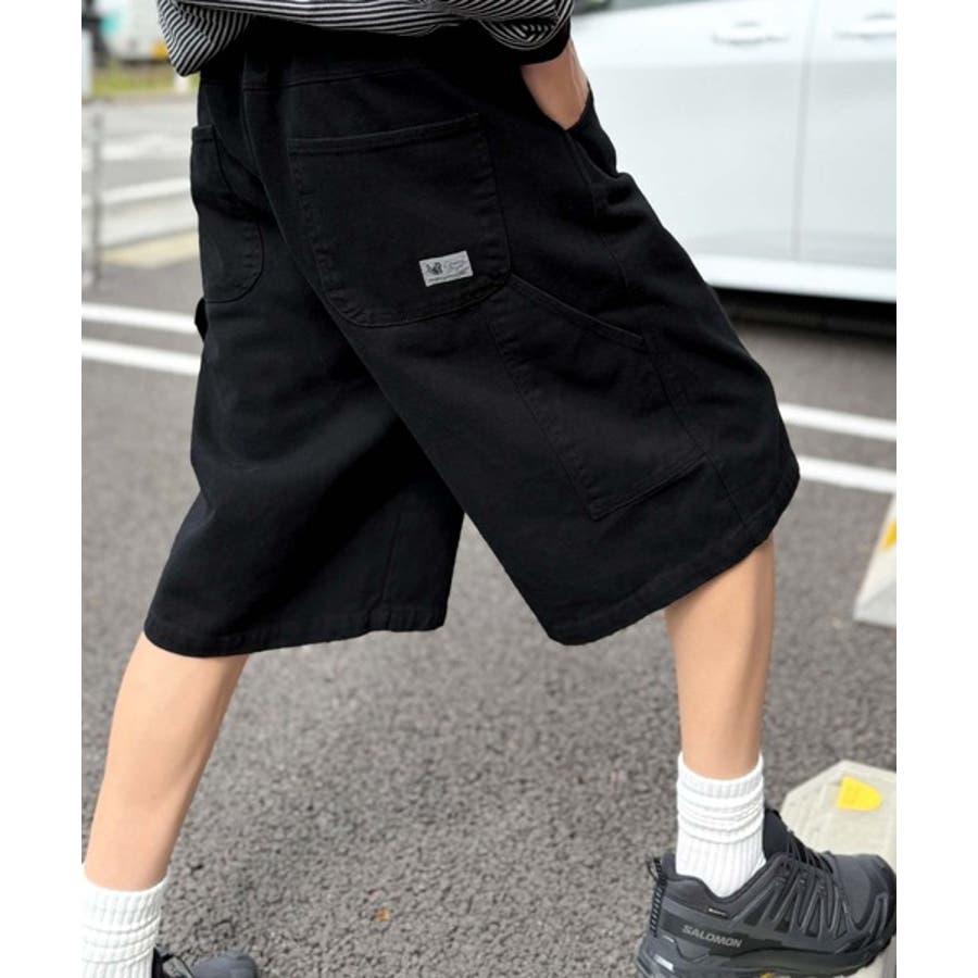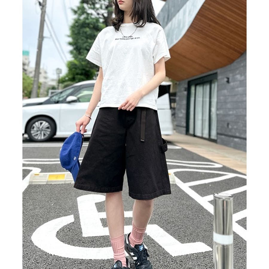 ベルトデザイン ペインター ハーフデニムパンツ」