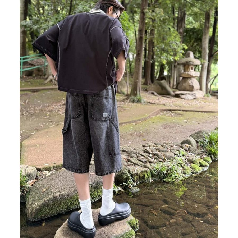 「Belted Design Painter Half Denim Pants/ベルトデザイン ペインター ハーフデニムパンツ」