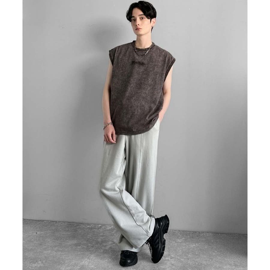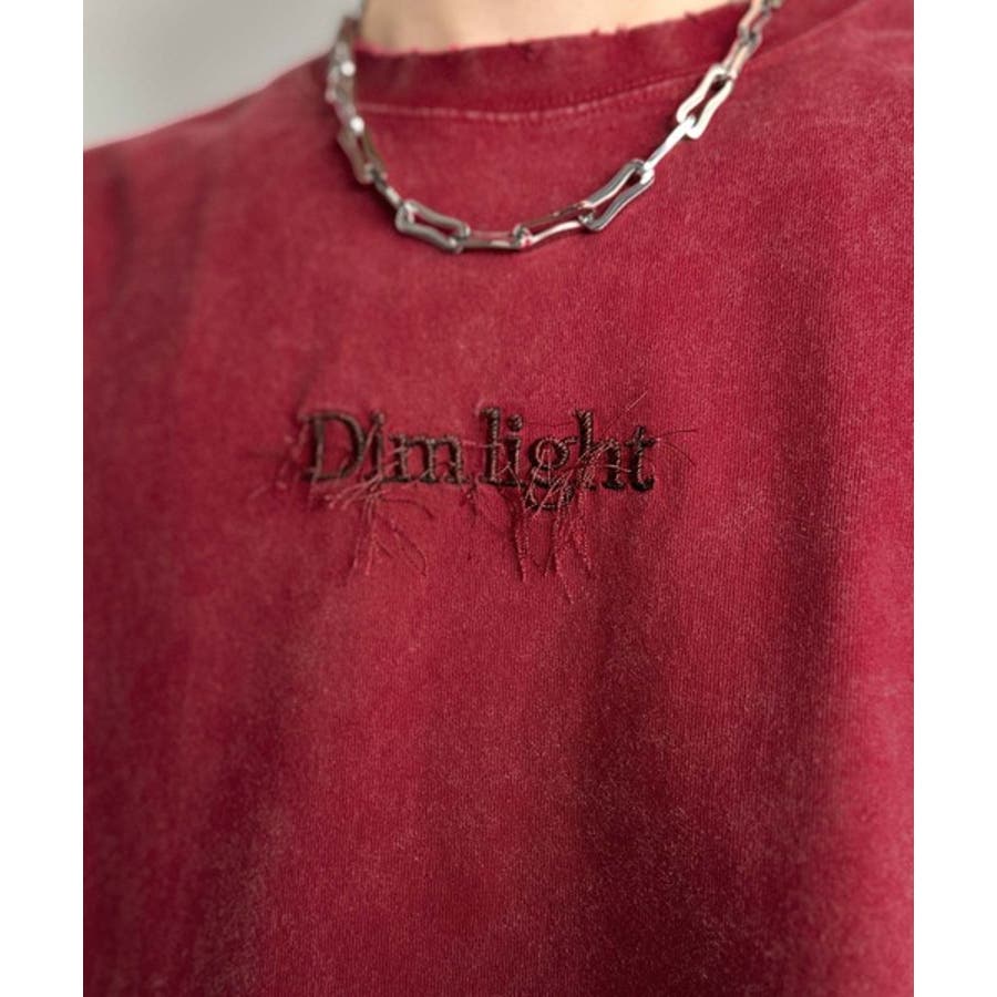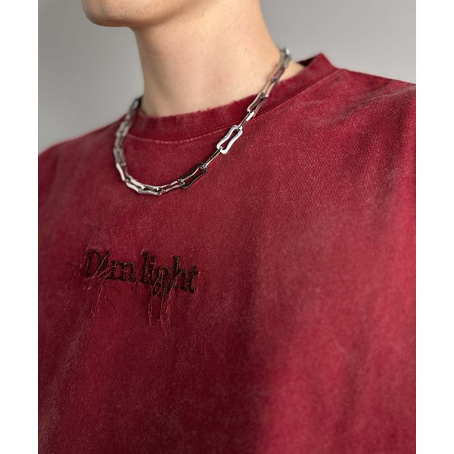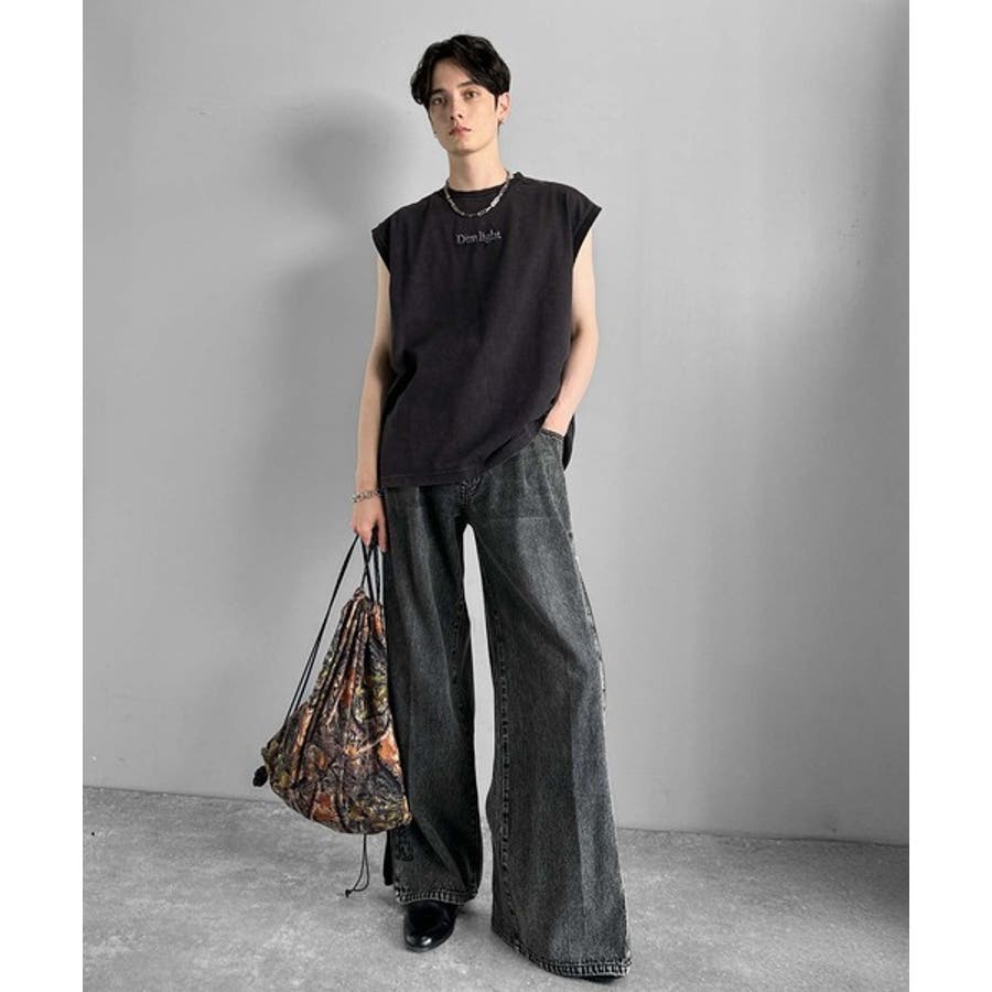紐刺繍スノーウォッシュ加工ノースリーブTシャツ String Embroider…