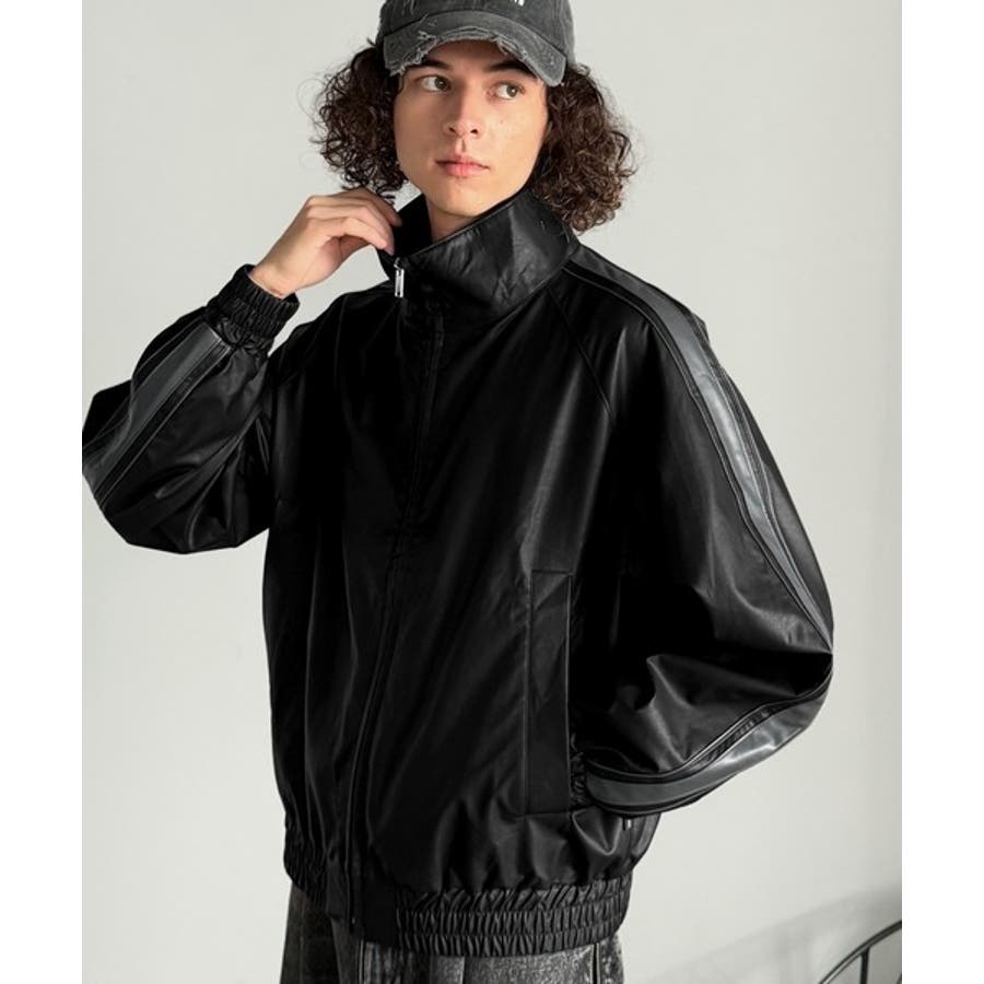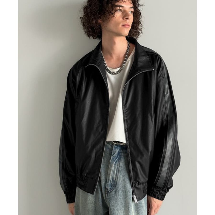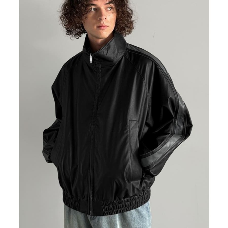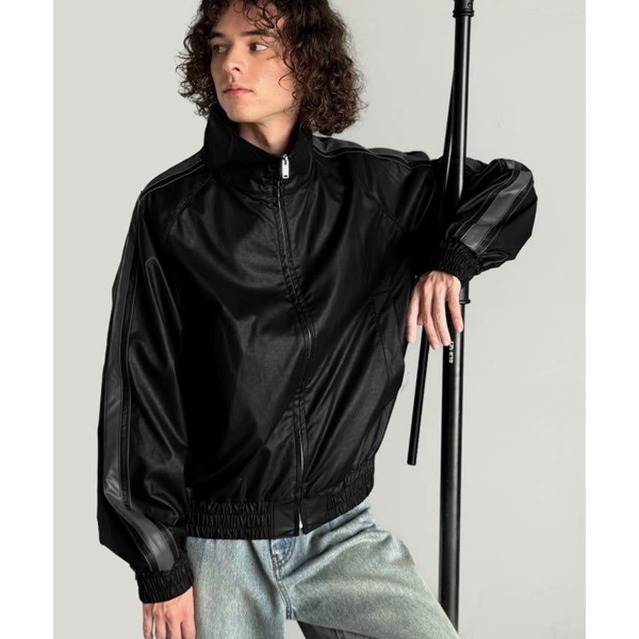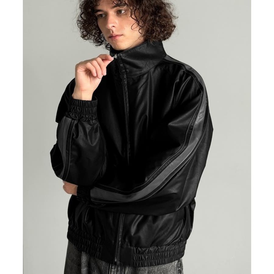 「High-Neck Leather Track Jacket/ハイネックレザートラックジャケット」