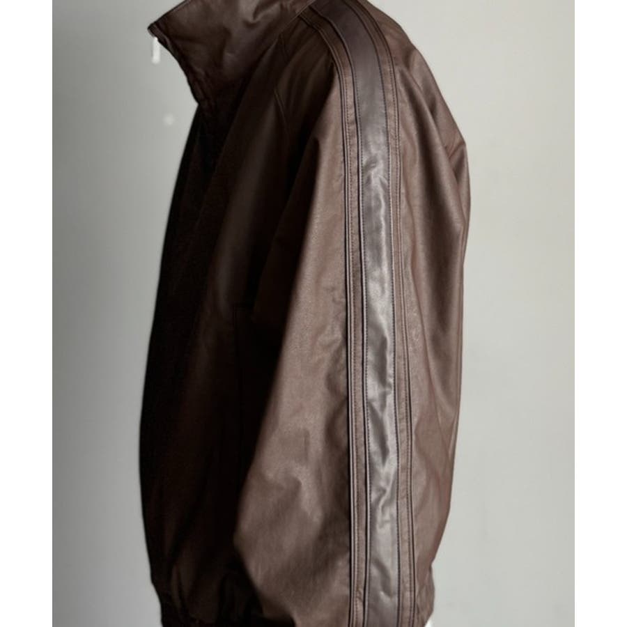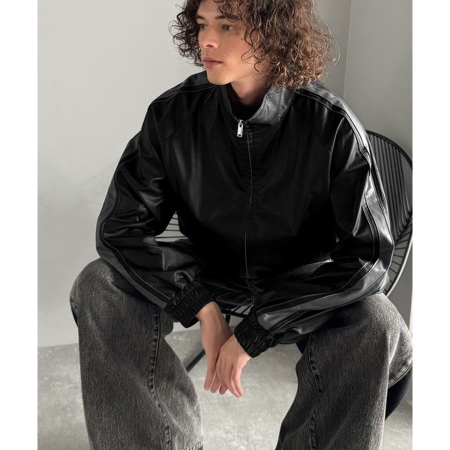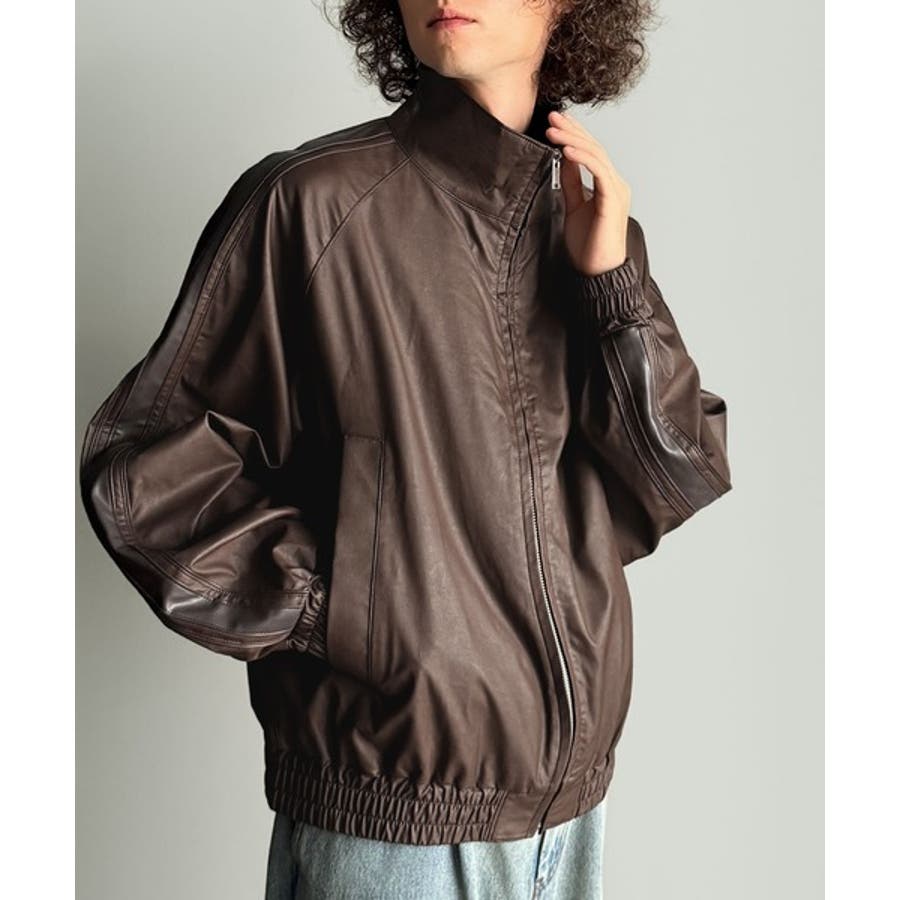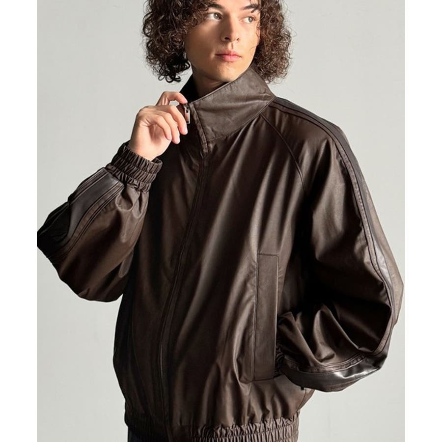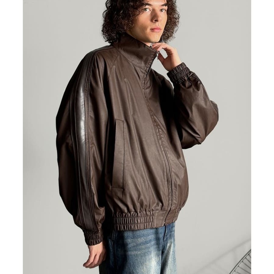 「High-Neck Leather Track Jacket/ハイネックレザートラックジャケット」
