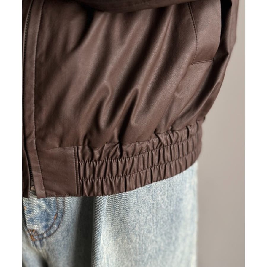 柔らかなフェイクレザーを採用し、軽快で着回しやすい一着。