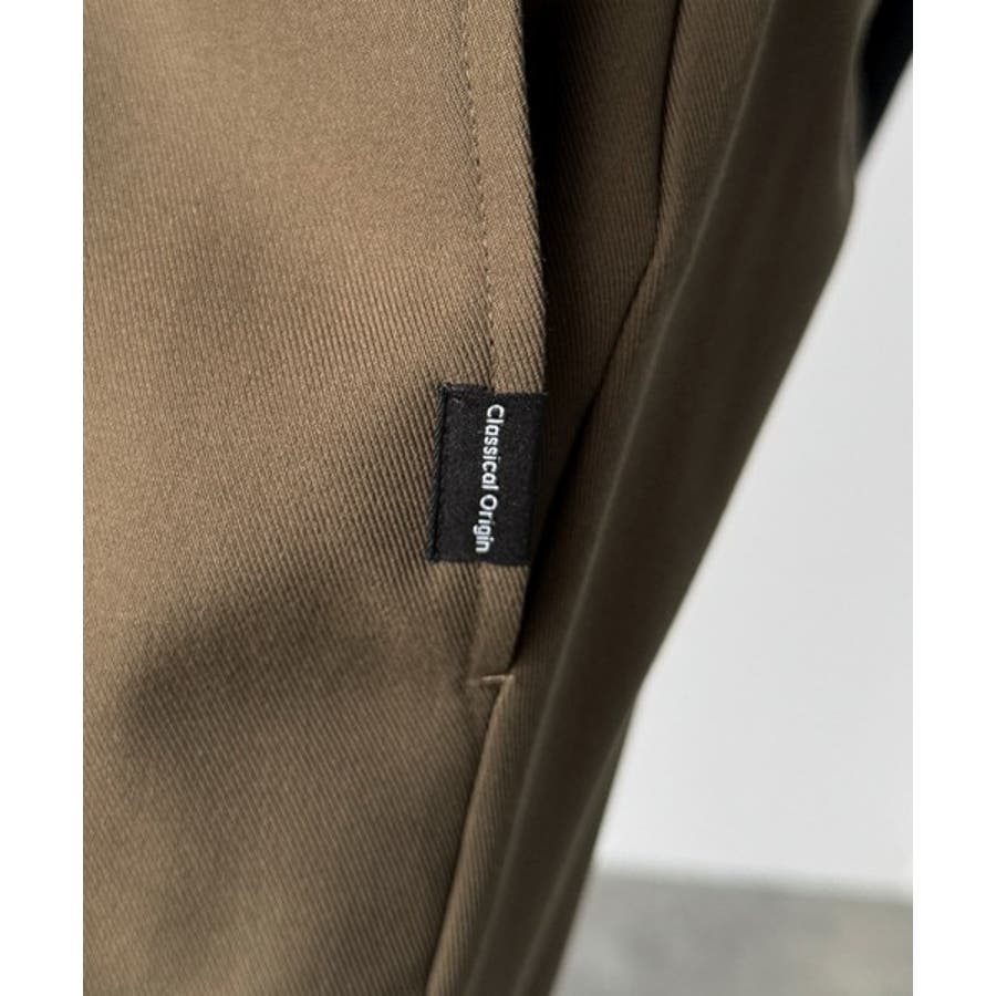 落ち感のあるツイル素材を使用し、ドレープ感とストレッチ性を備えた上品な仕上がりで、オンオフ問わず活躍。