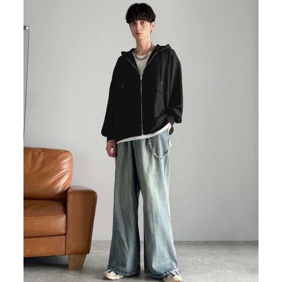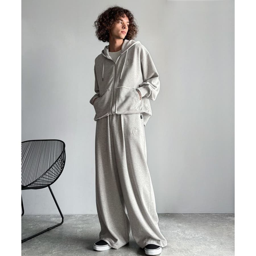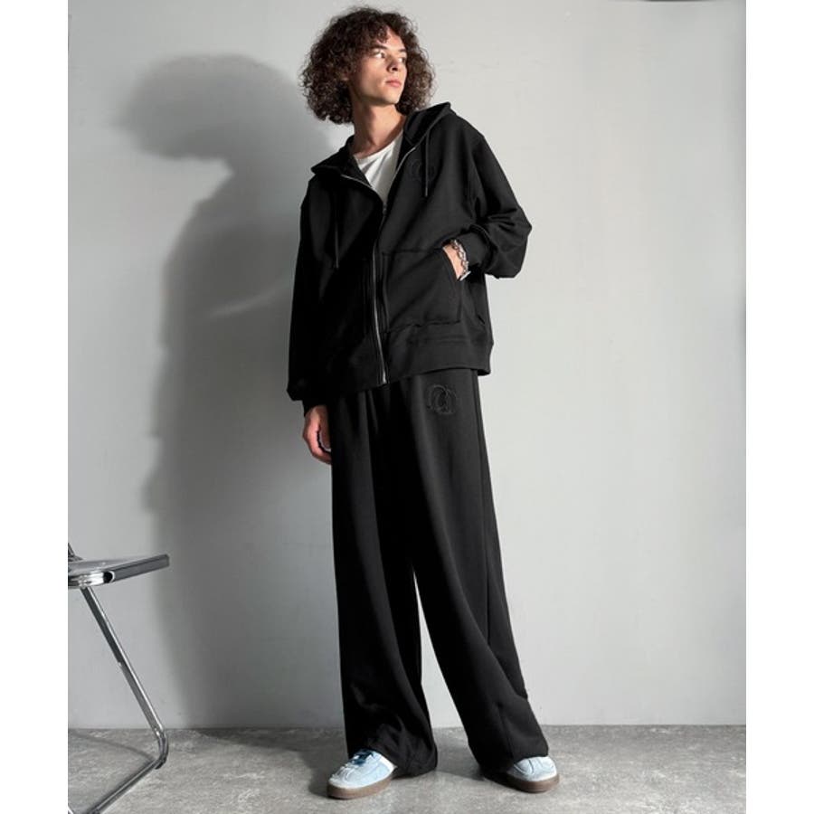 デニムやワイドパンツ、チノ、同素材のスウェットパンツなど多様なボトムスと自然体なコーディネートが可能。