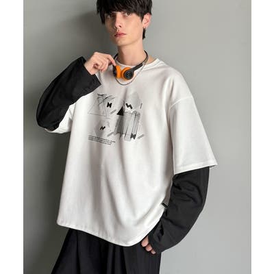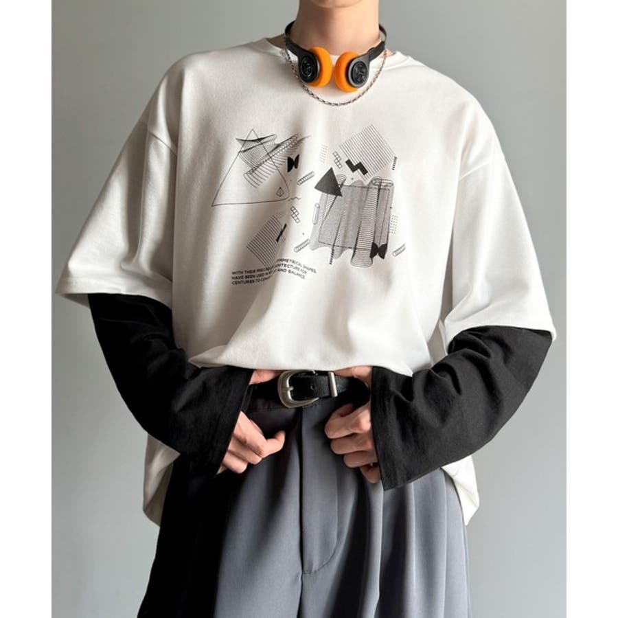 【Classical Origin】幾何学柄ポンチ素材レイヤードTシャツ(長袖)…