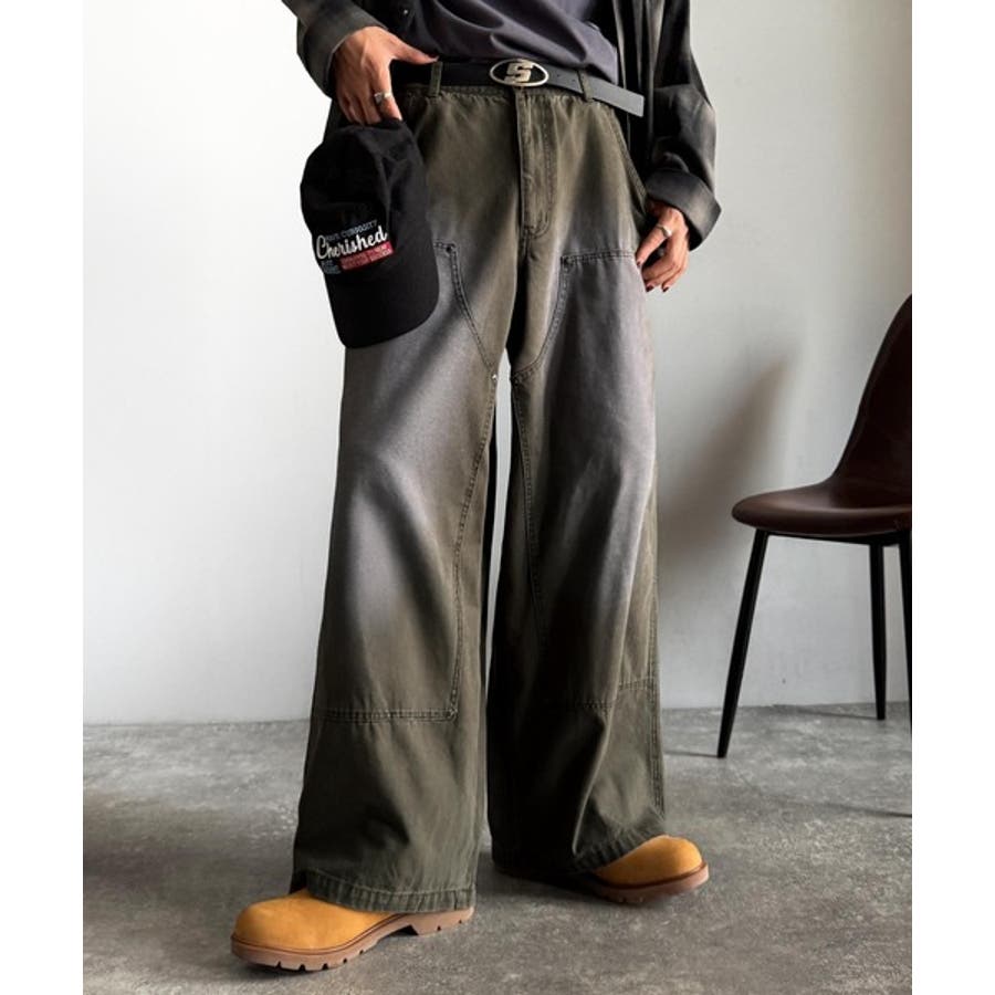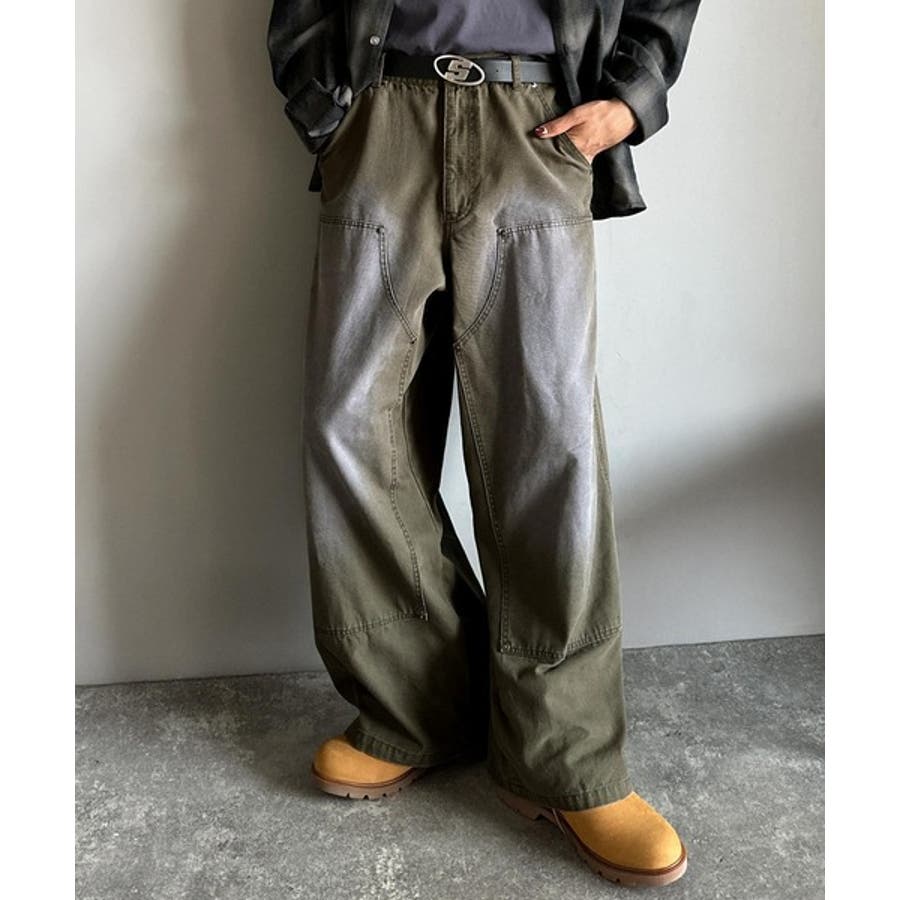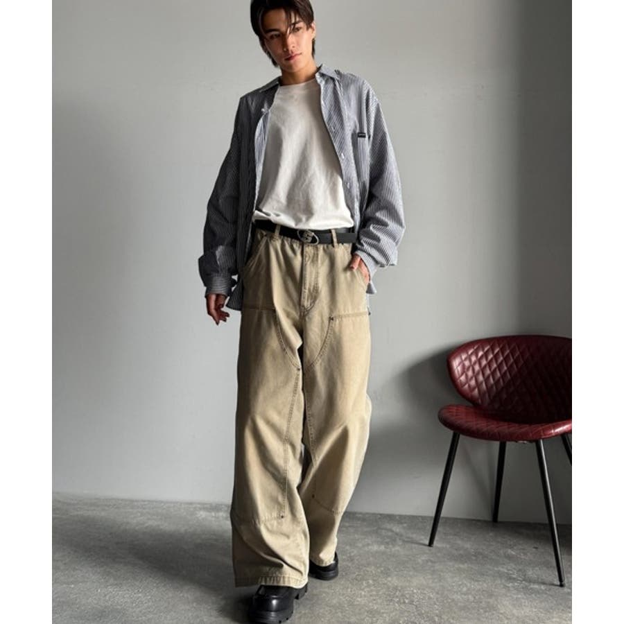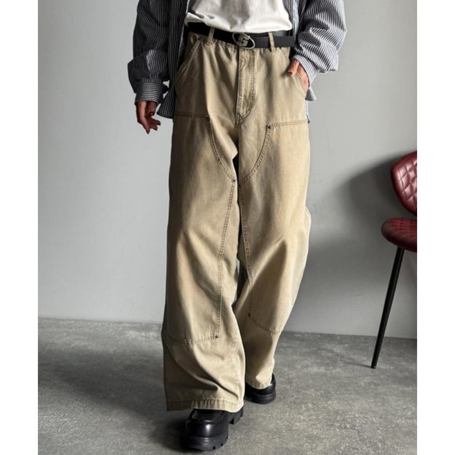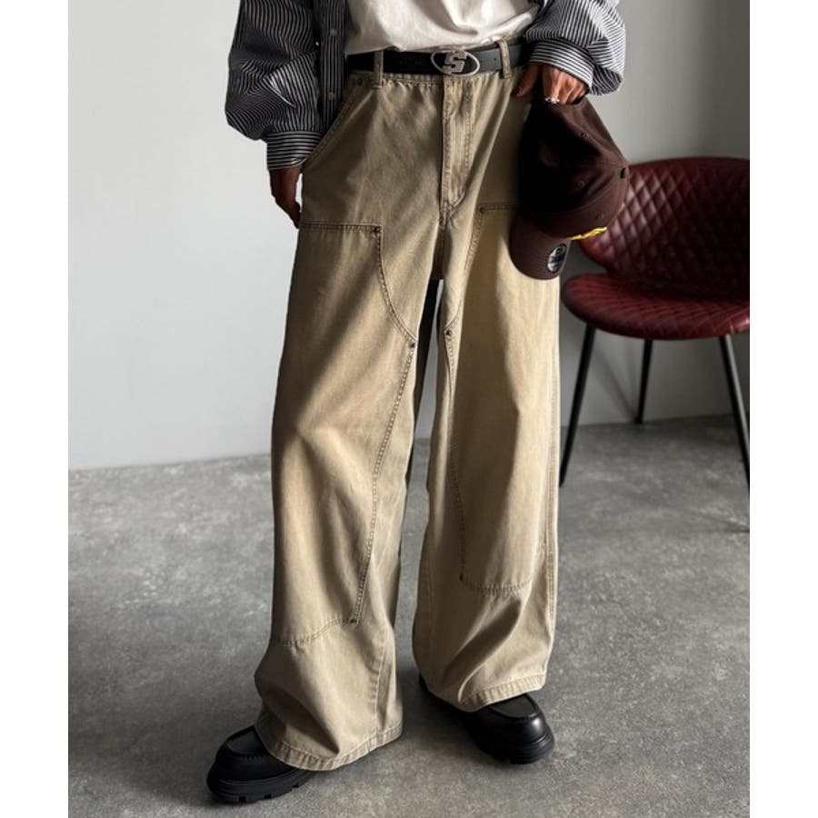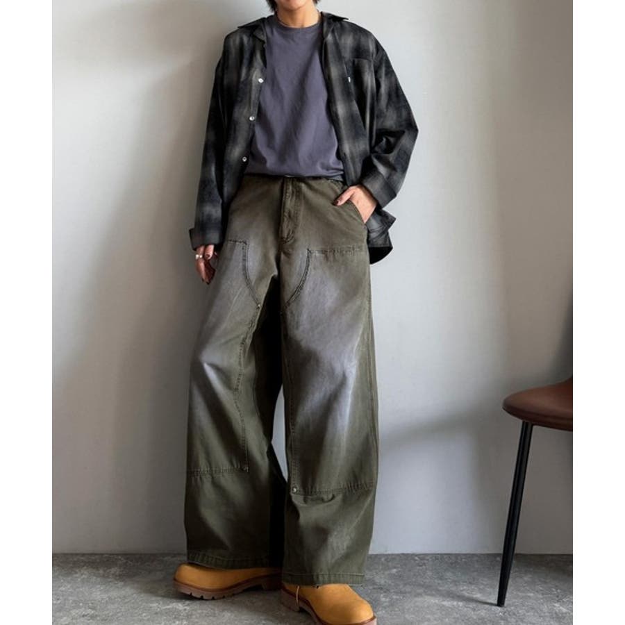 ワイドめのシルエットに加え、ダブルニー仕様がデザインと補強を兼ね備え、無骨さと存在感をプラス。