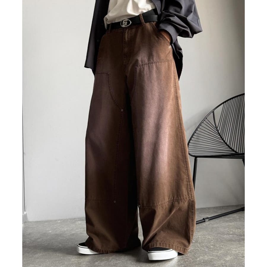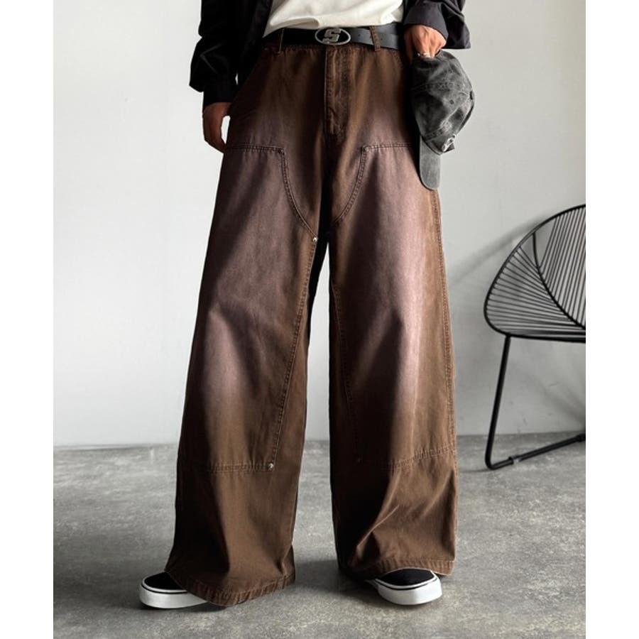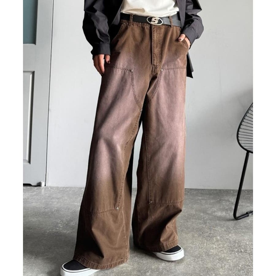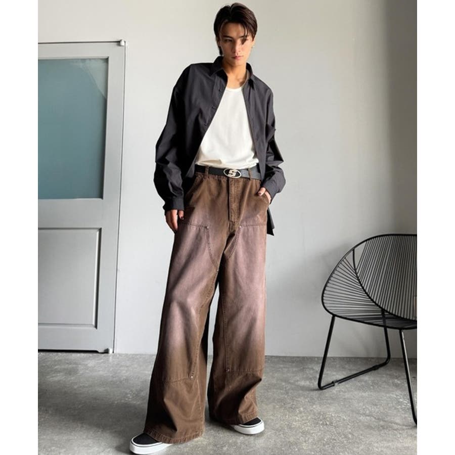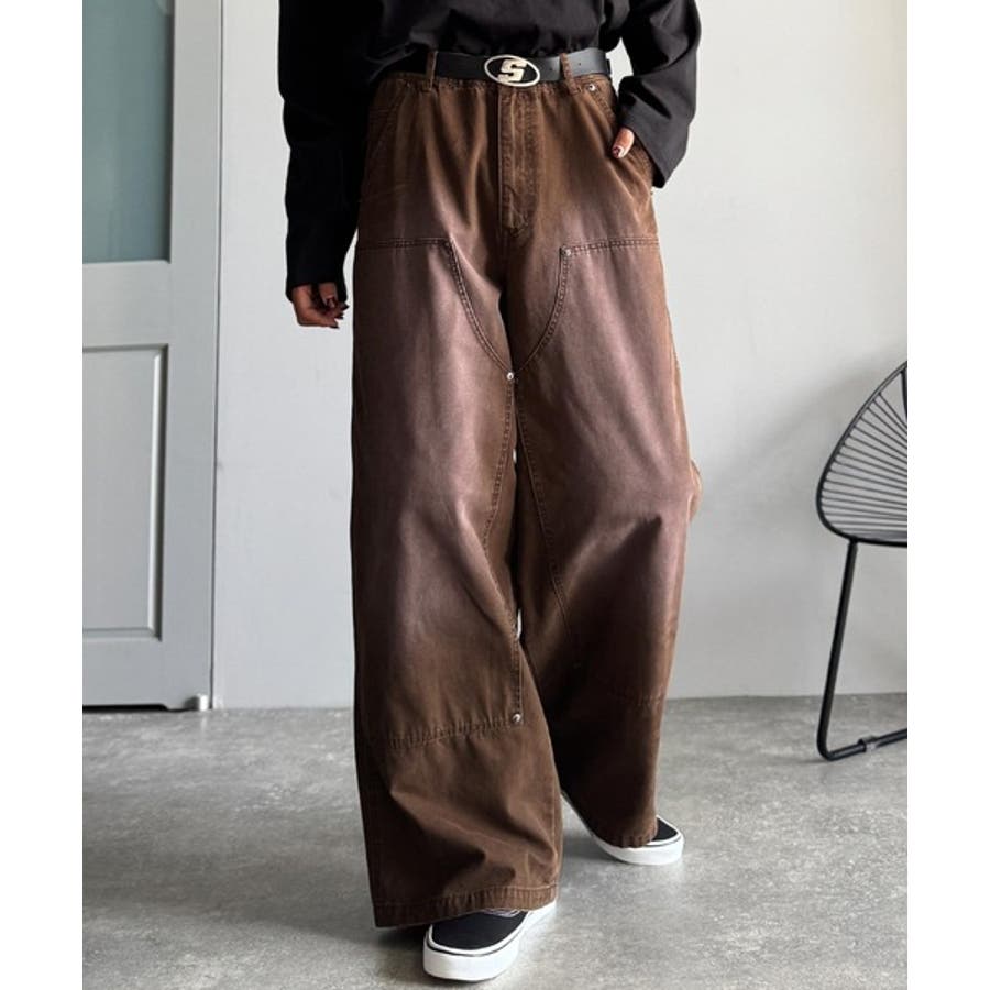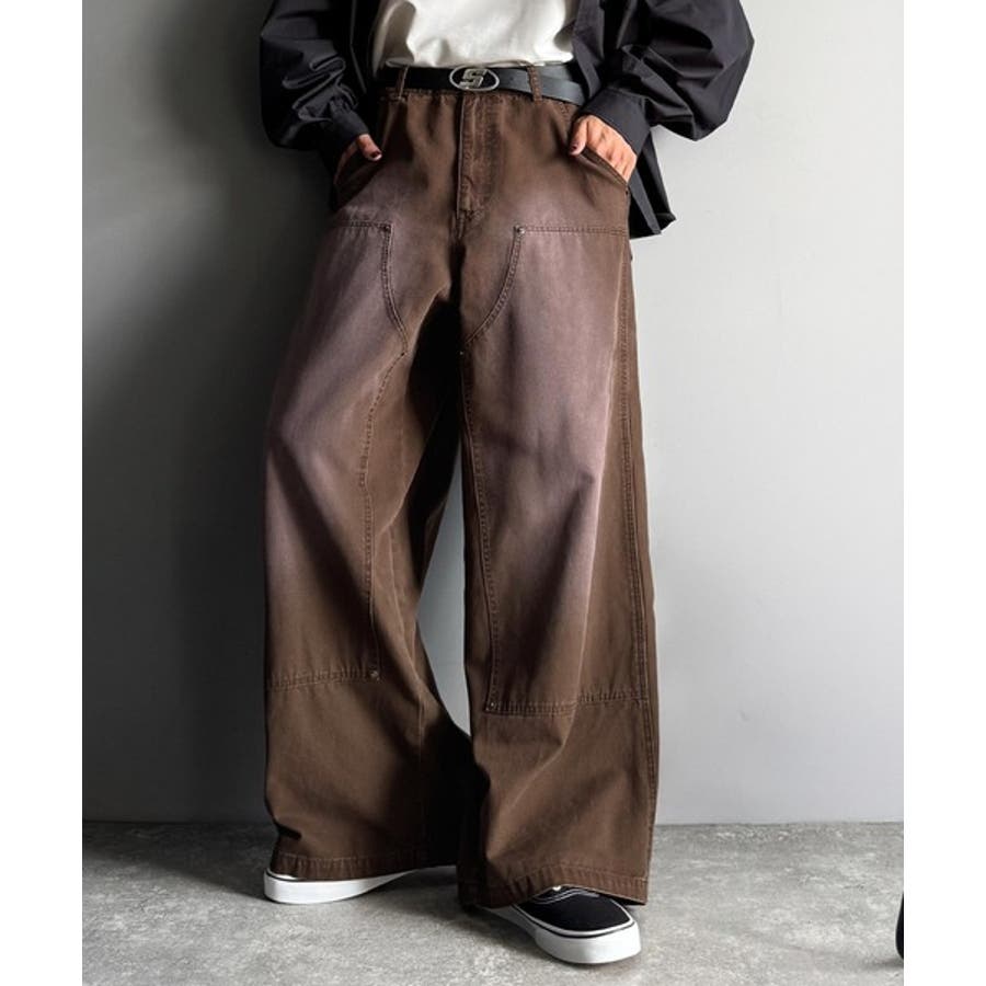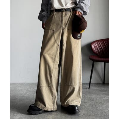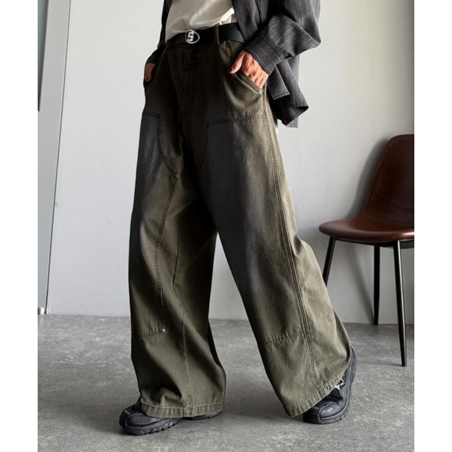 ワイドめのシルエットに加え、ダブルニー仕様がデザインと補強を兼ね備え、無骨さと存在感をプラス。