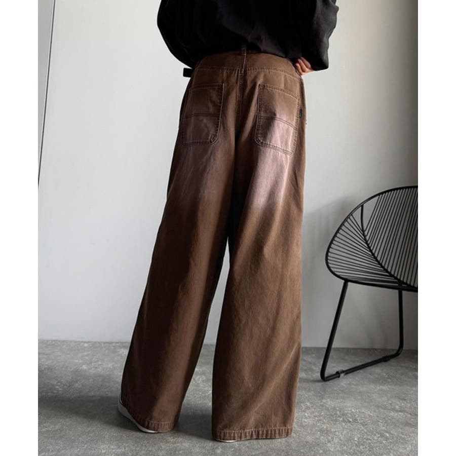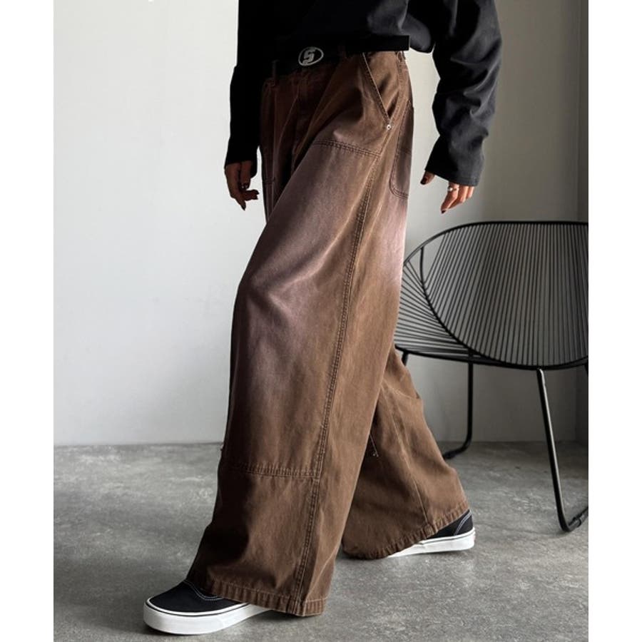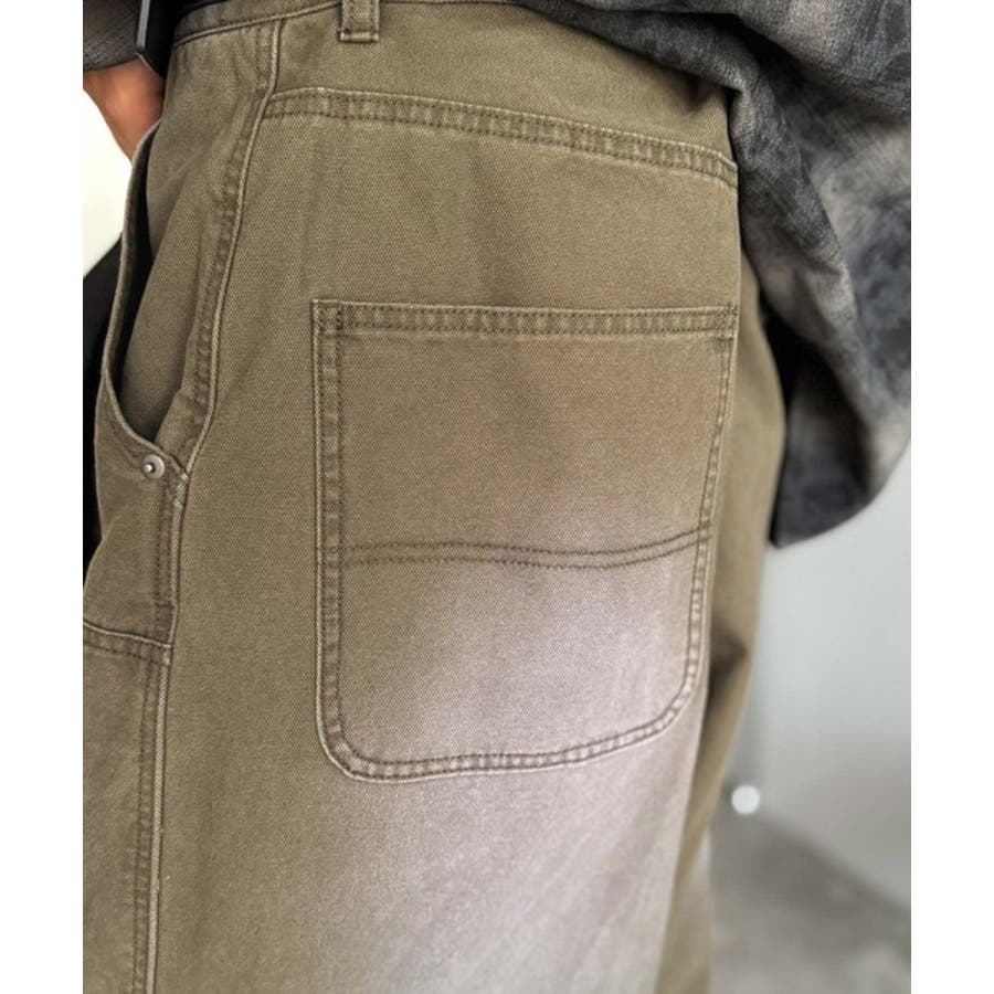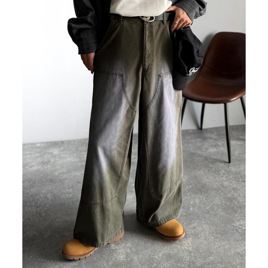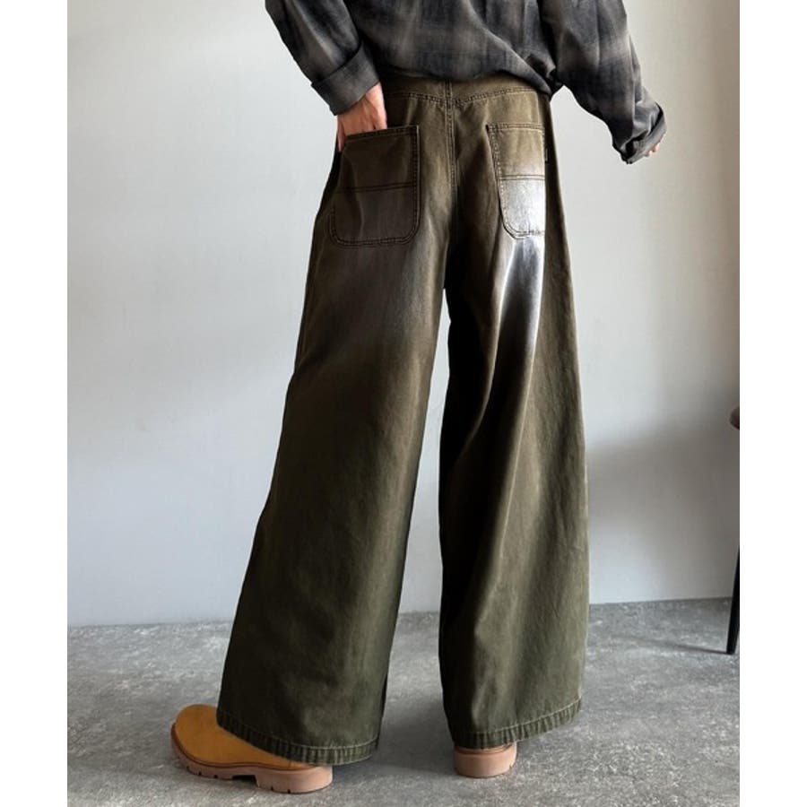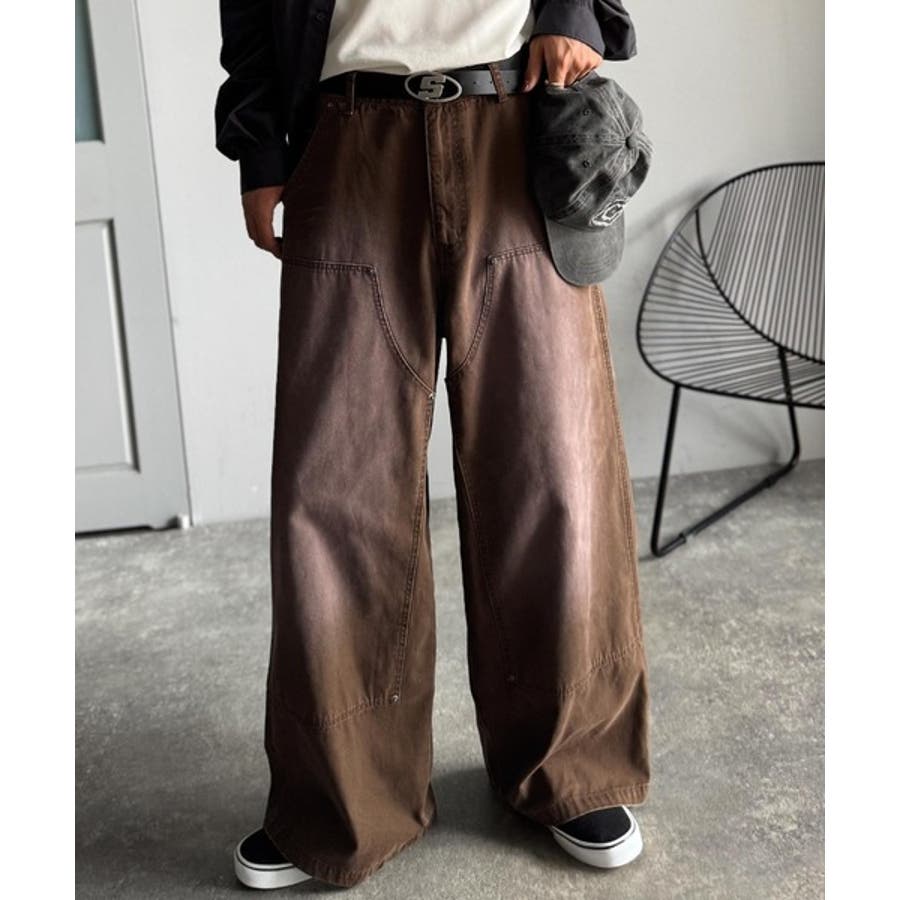 ワイドめのシルエットに加え、ダブルニー仕様がデザインと補強を兼ね備え、無骨さと存在感をプラス。