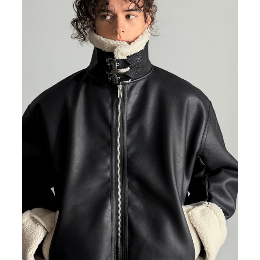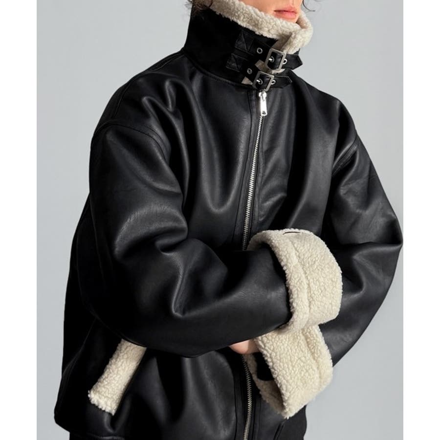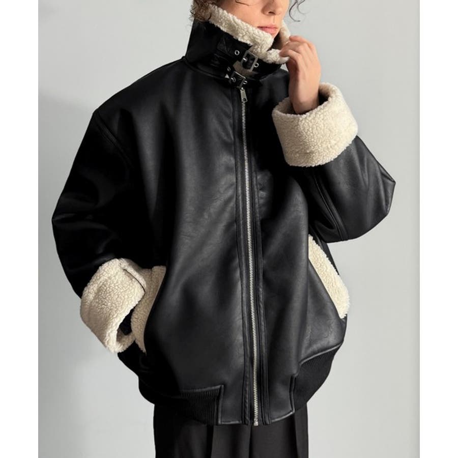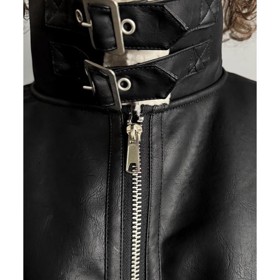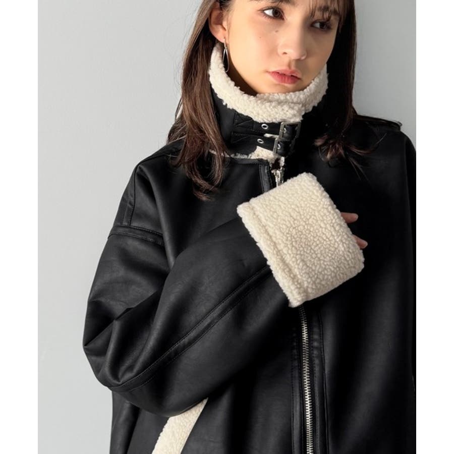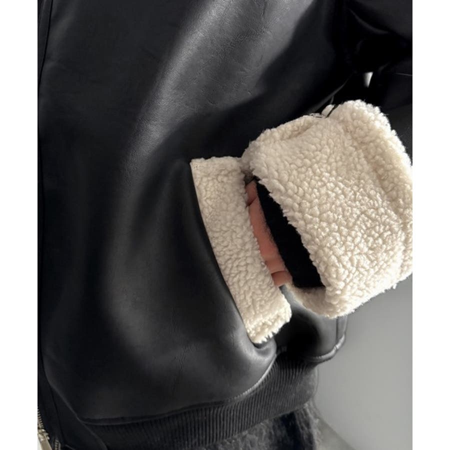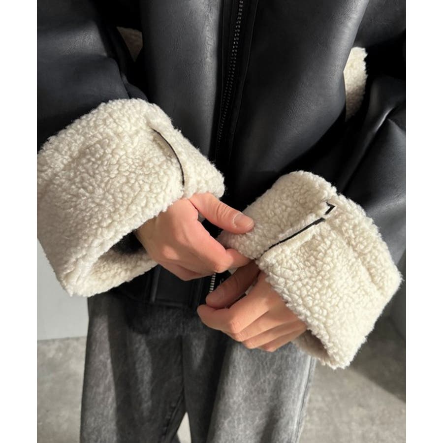 「 2way Boa Collar Faux Leather Jacket/2way襟ボア切り替えフェイクレザージャケット 」